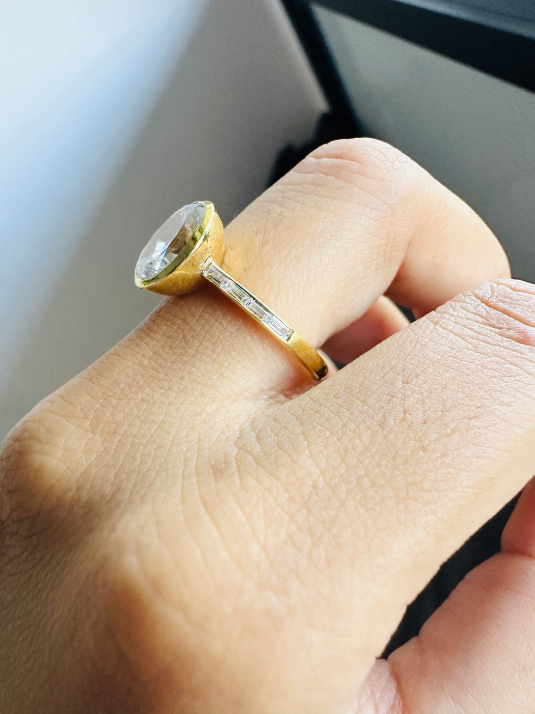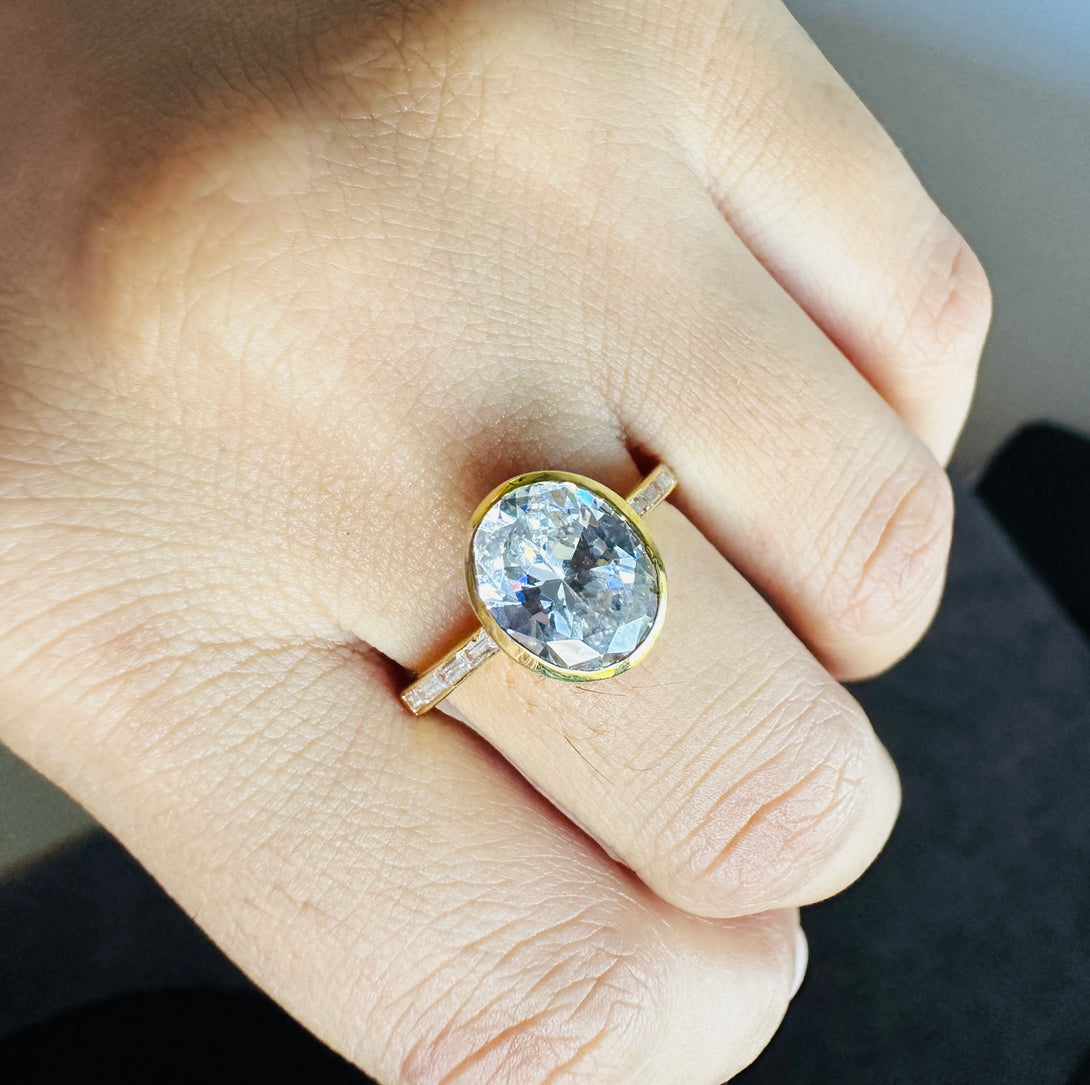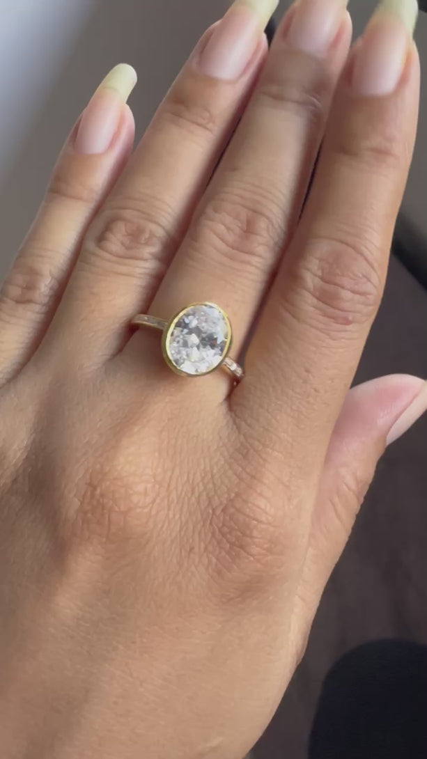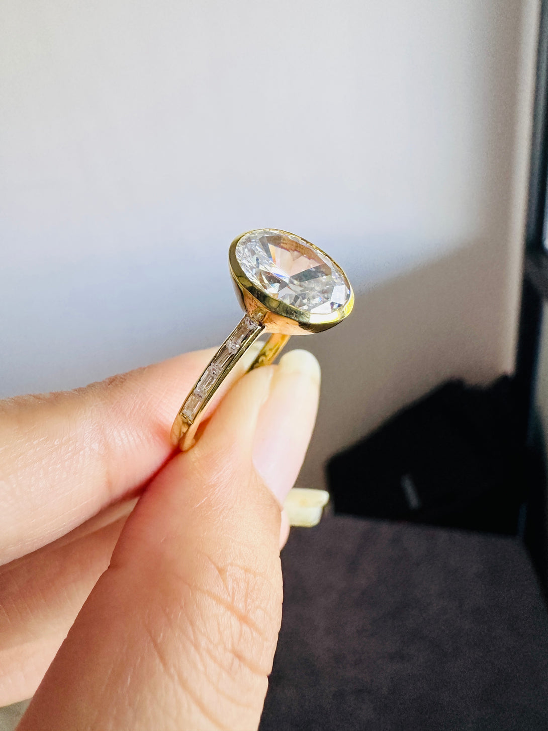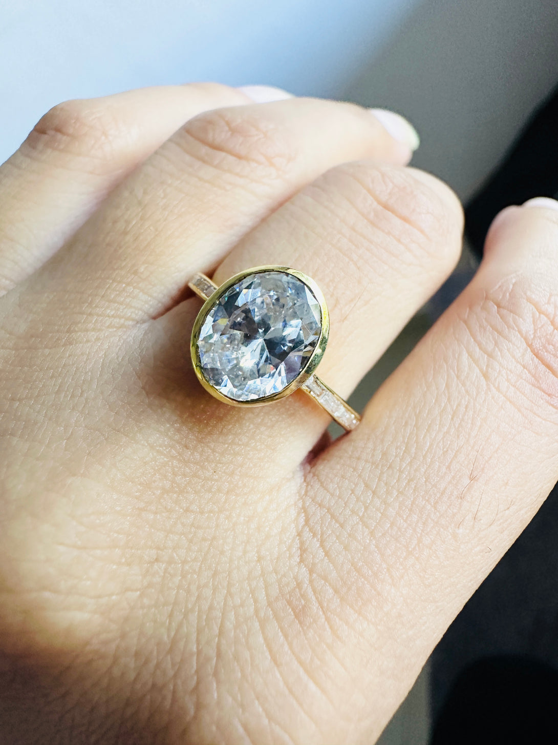 Bezel Set Oval Cut Moissanite Ring 18K Solid Gold Classic Wedding Proposal Ring