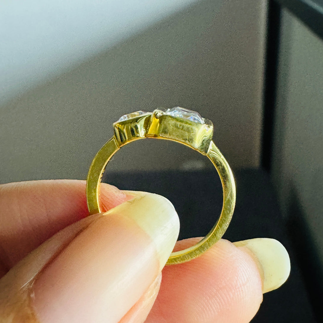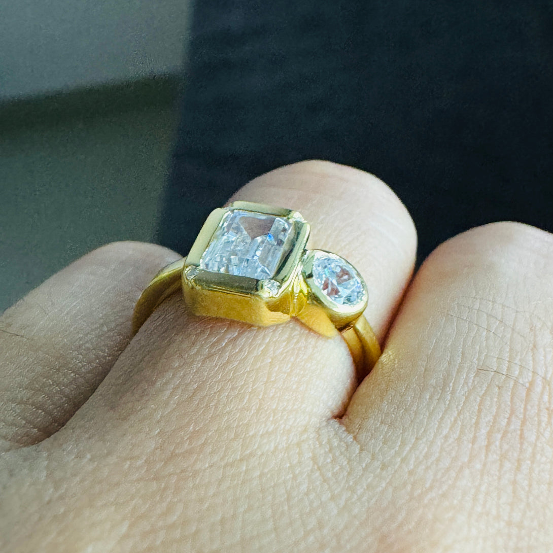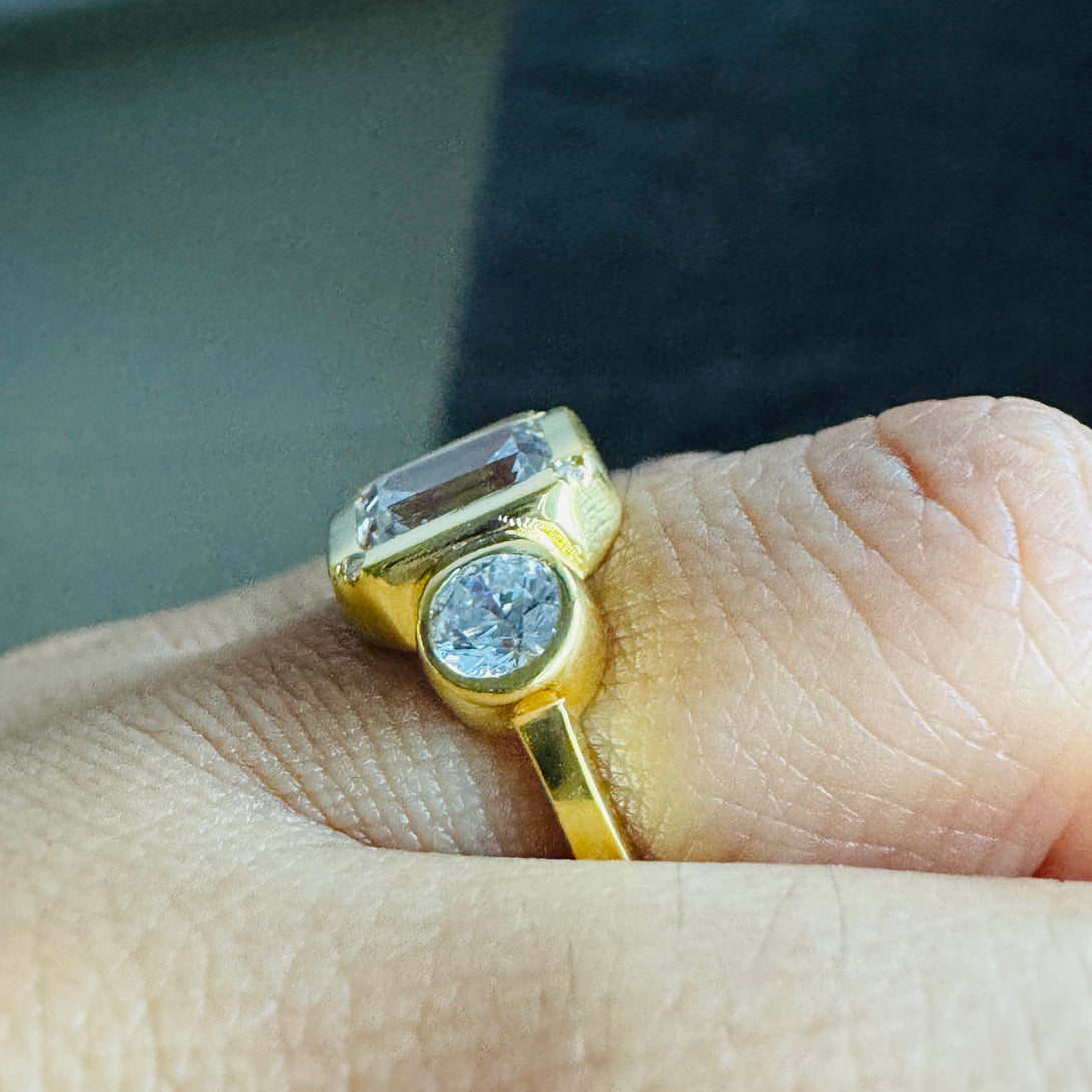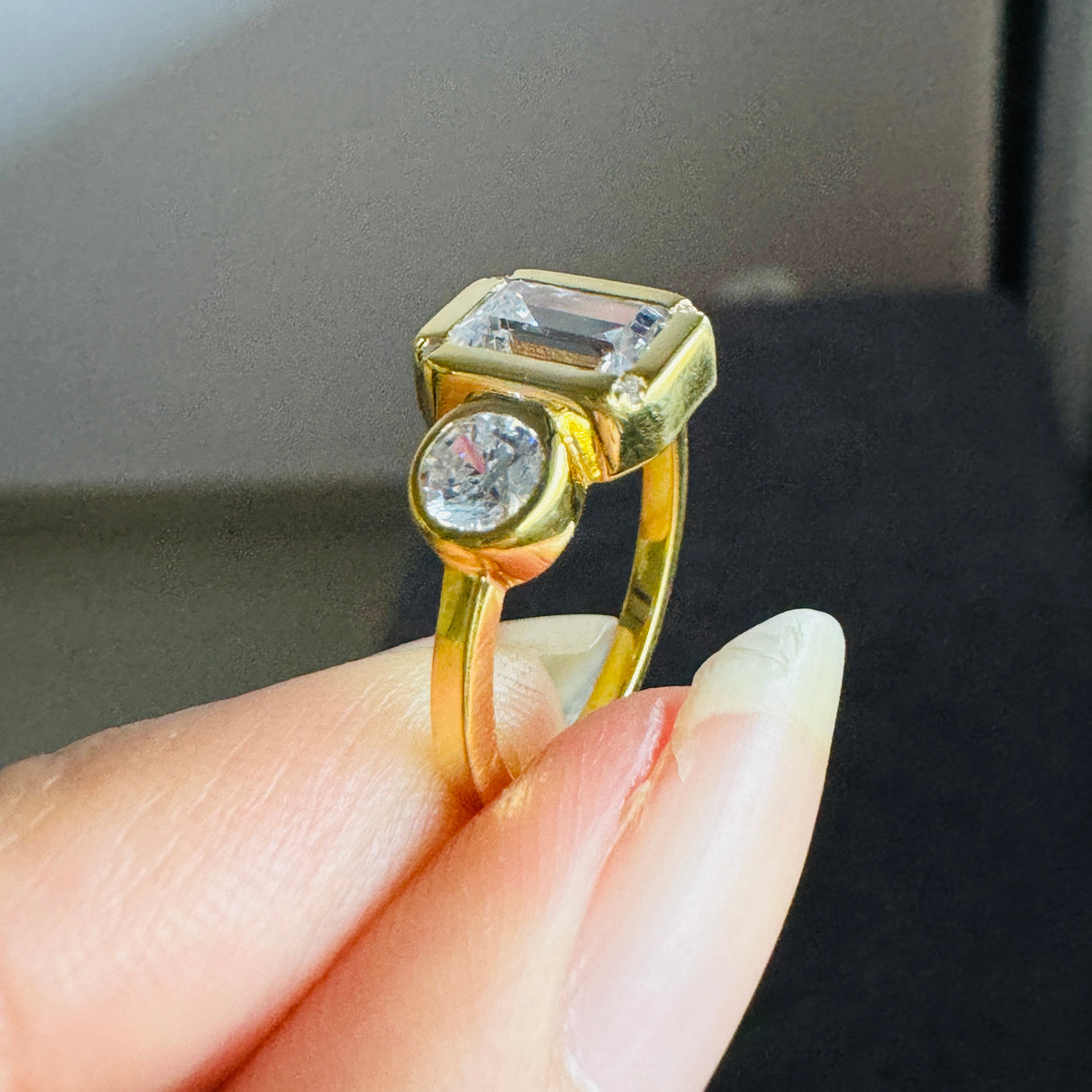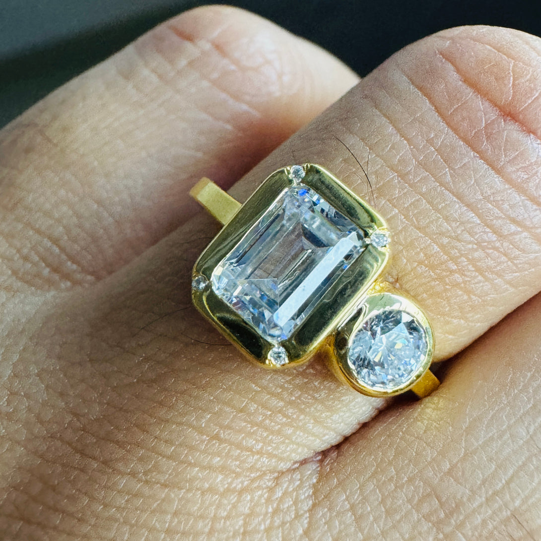 Emerald & Round Cut Moissanite Bezel Set Ring Toi Et Moi Engagement Ring