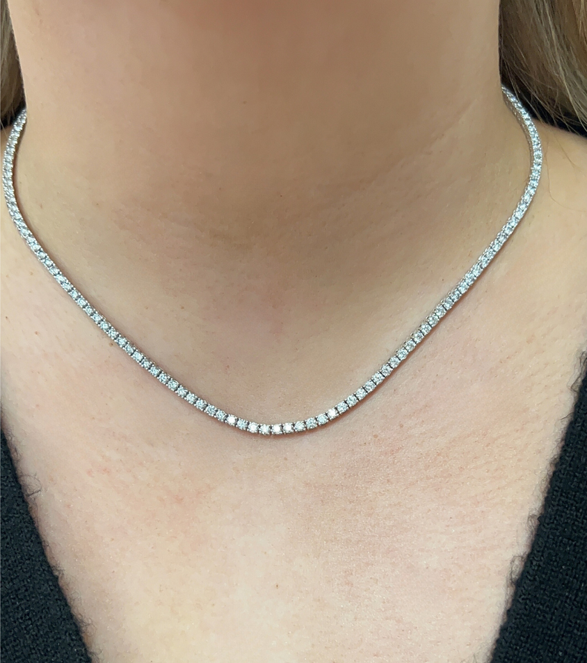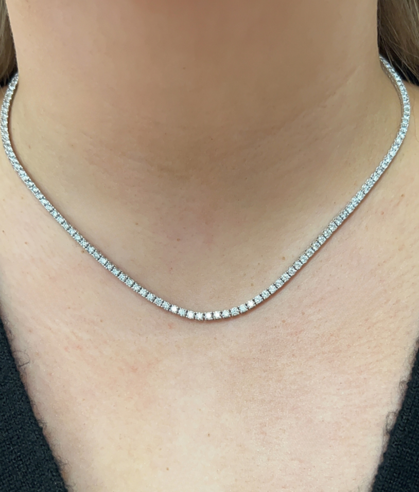 Micro Pave White Round Cut Real Moissanite Tennis Necklace in 925 Sterling Silver