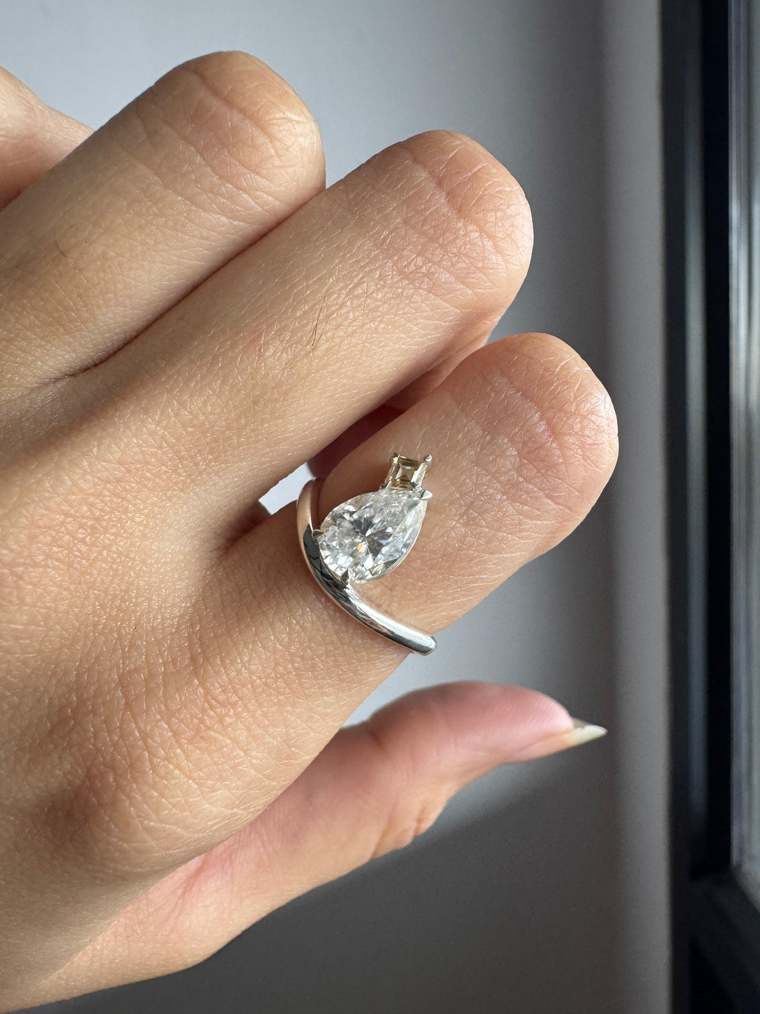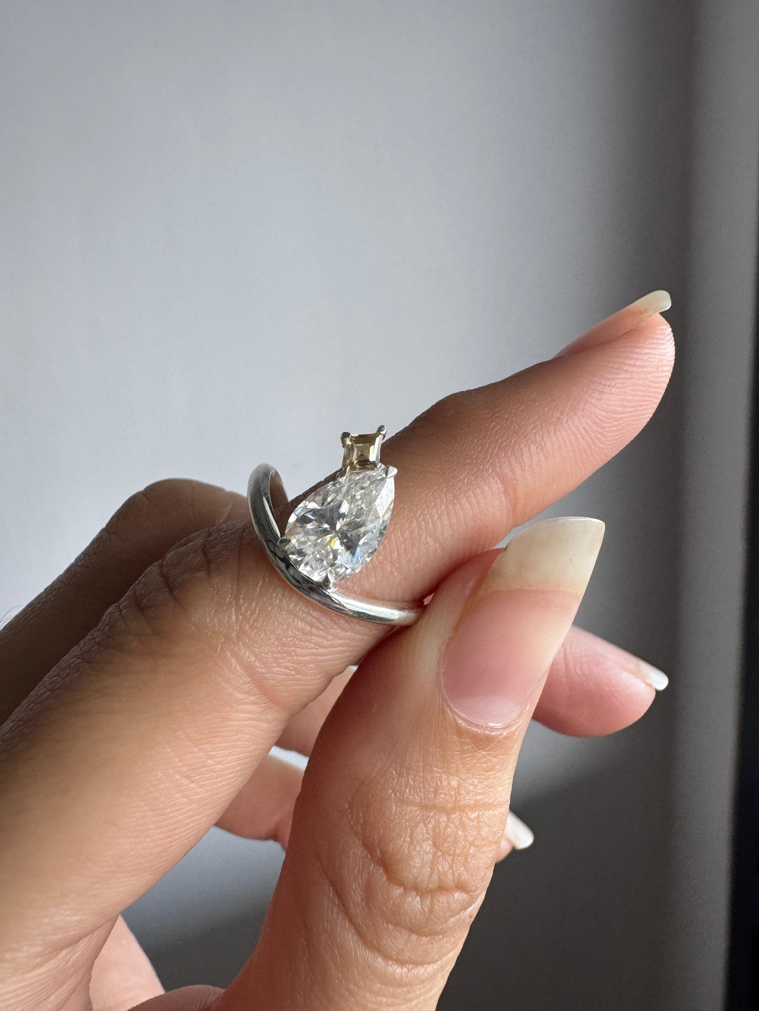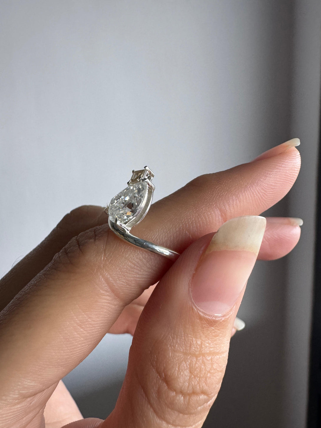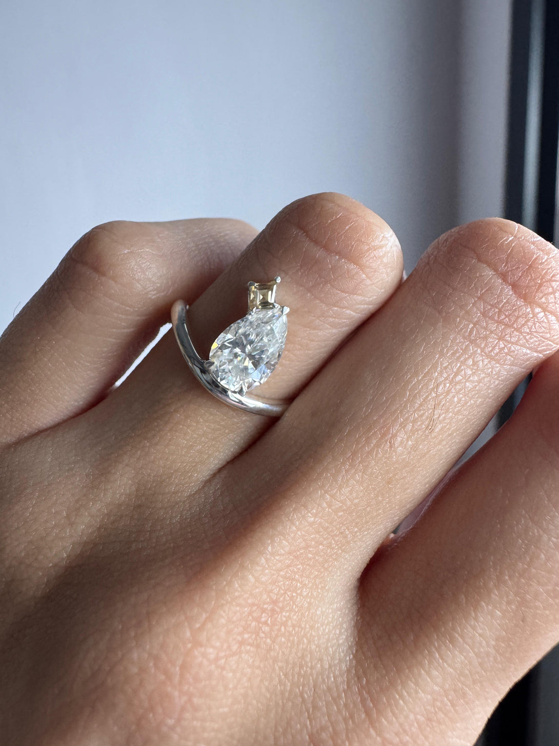 Toi Et Moi Moissanite Ring Pear & Kite Cut Diamond Engagement Ring in Solid Gold