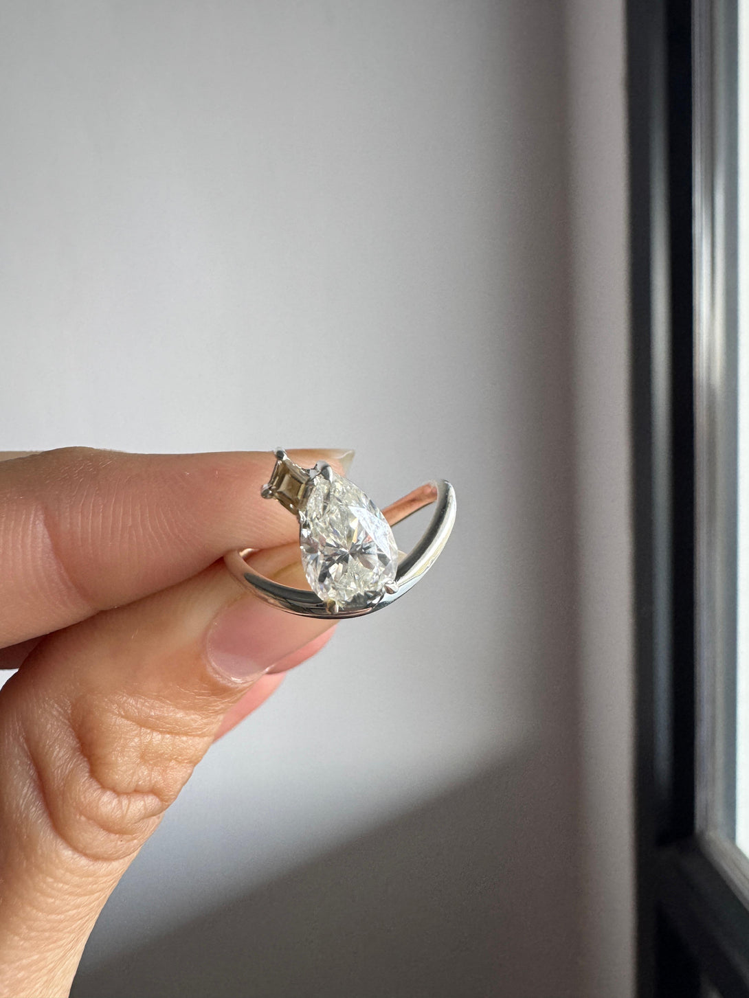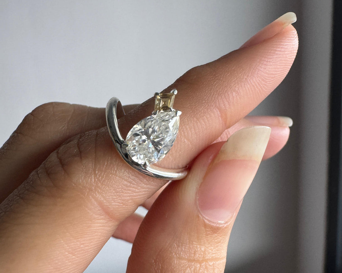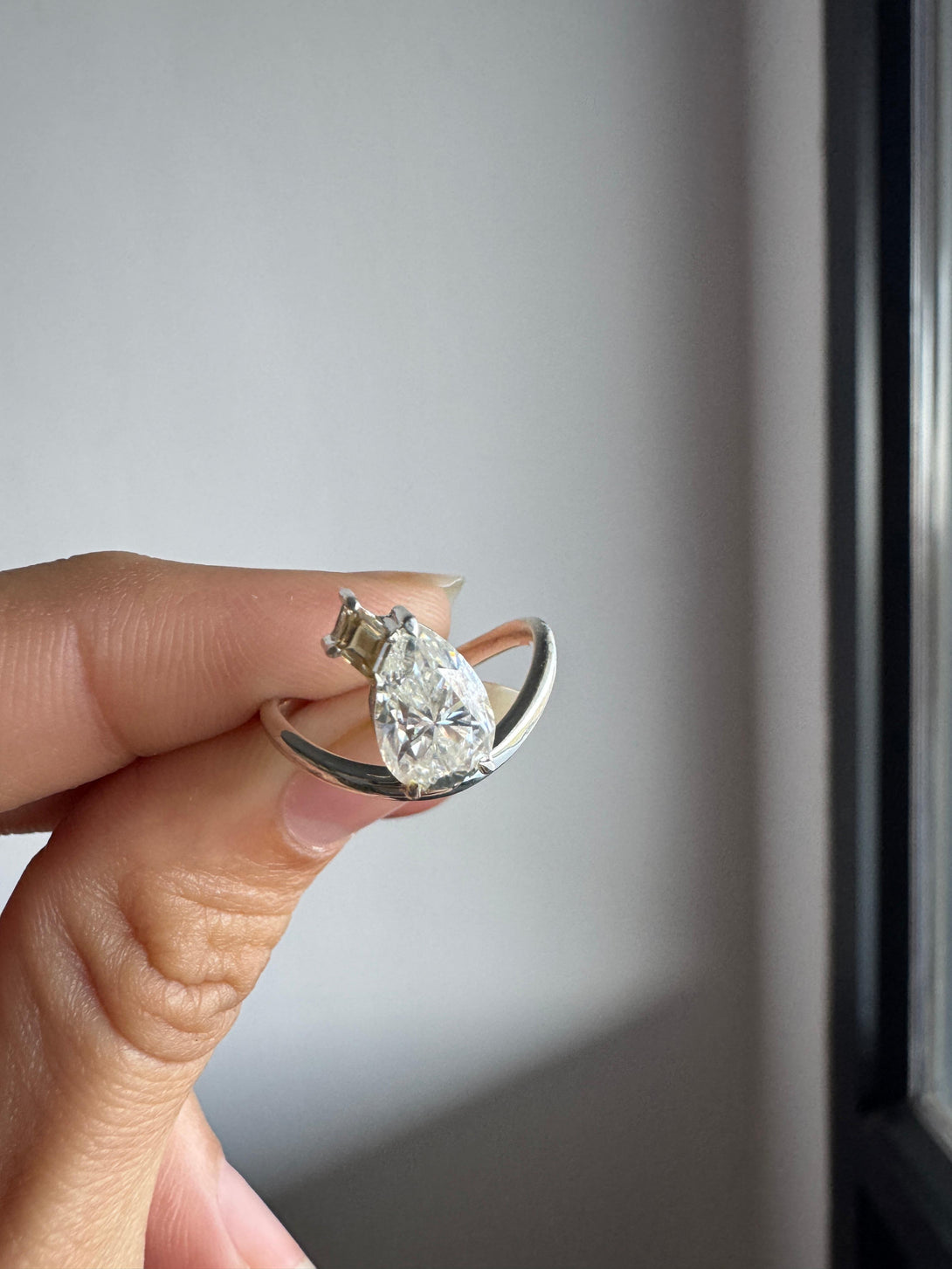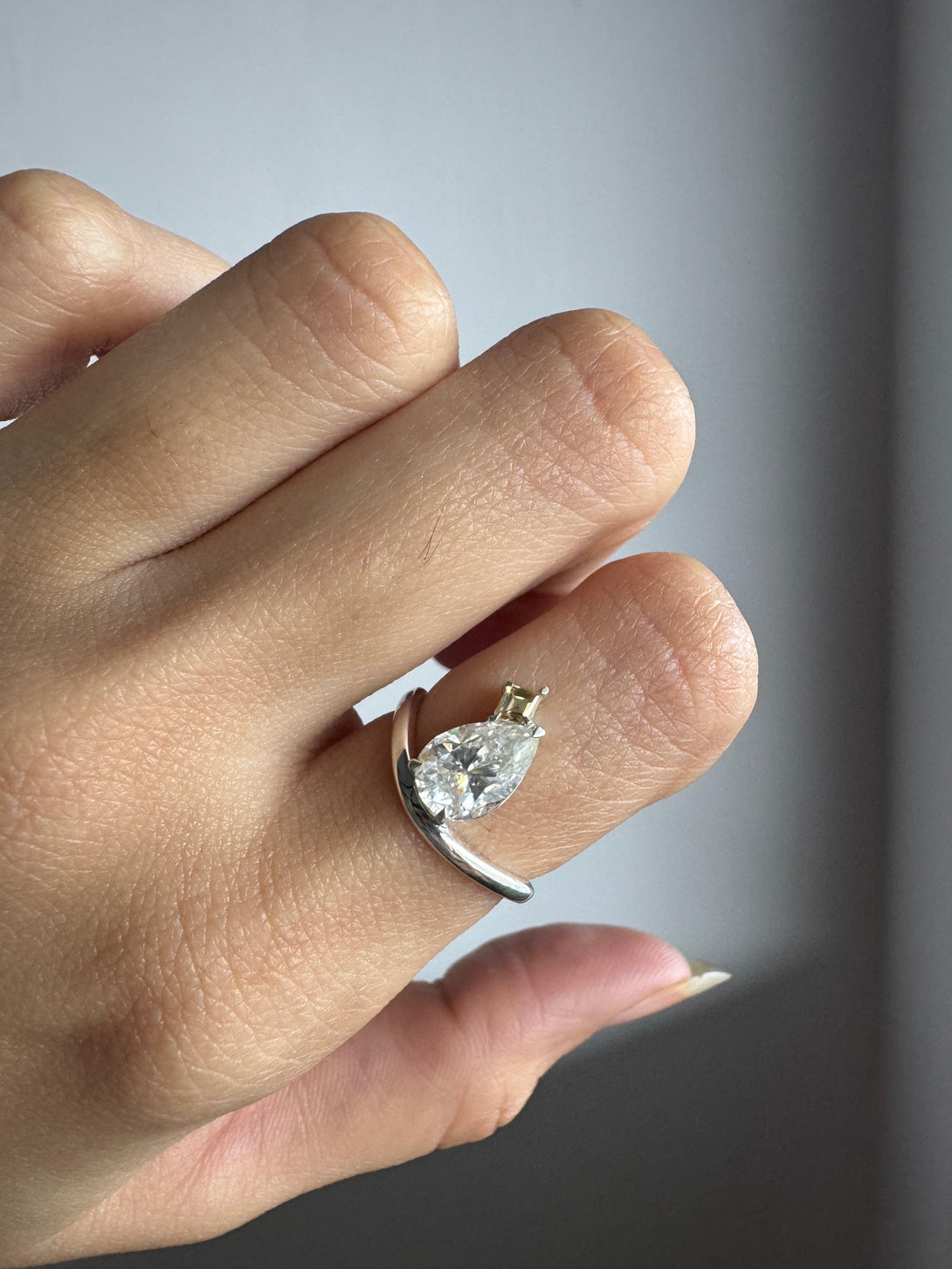 Toi Et Moi Moissanite Ring Pear & Kite Cut Diamond Engagement Ring in Solid Gold