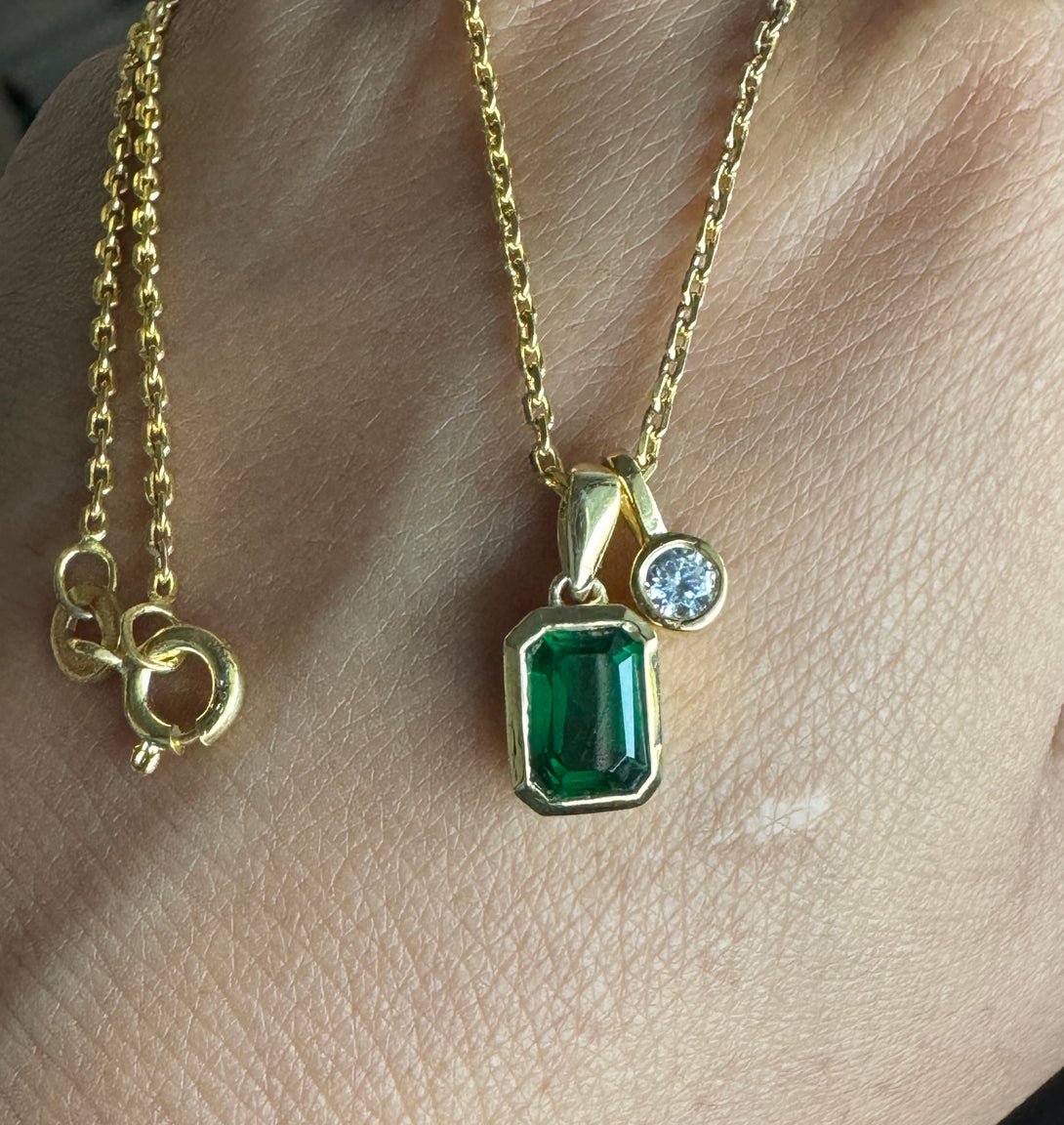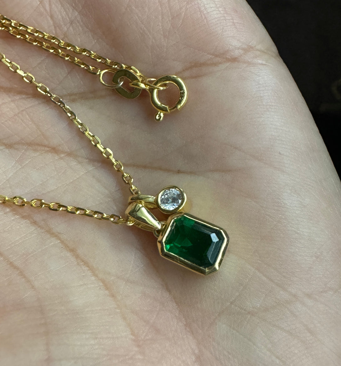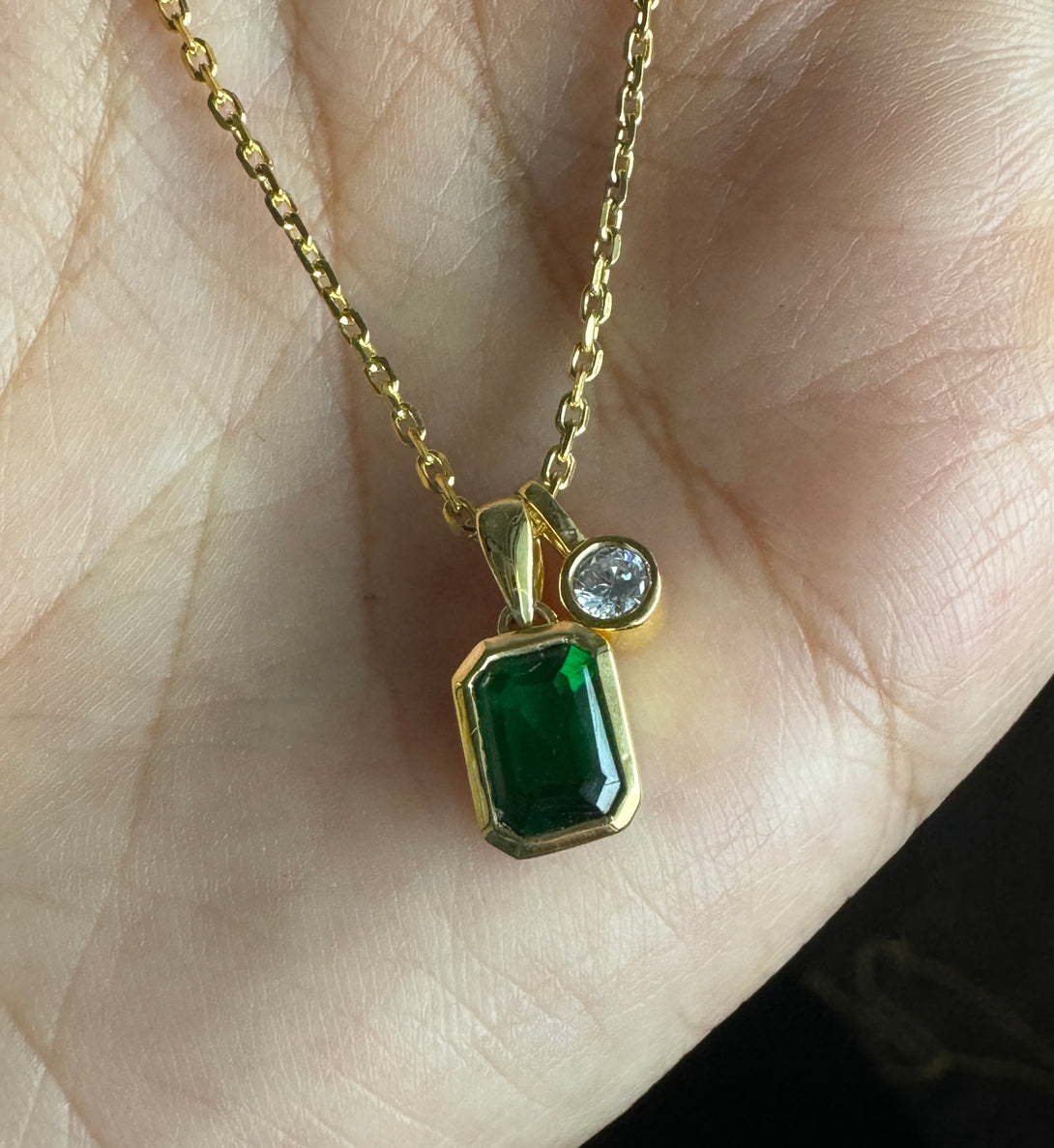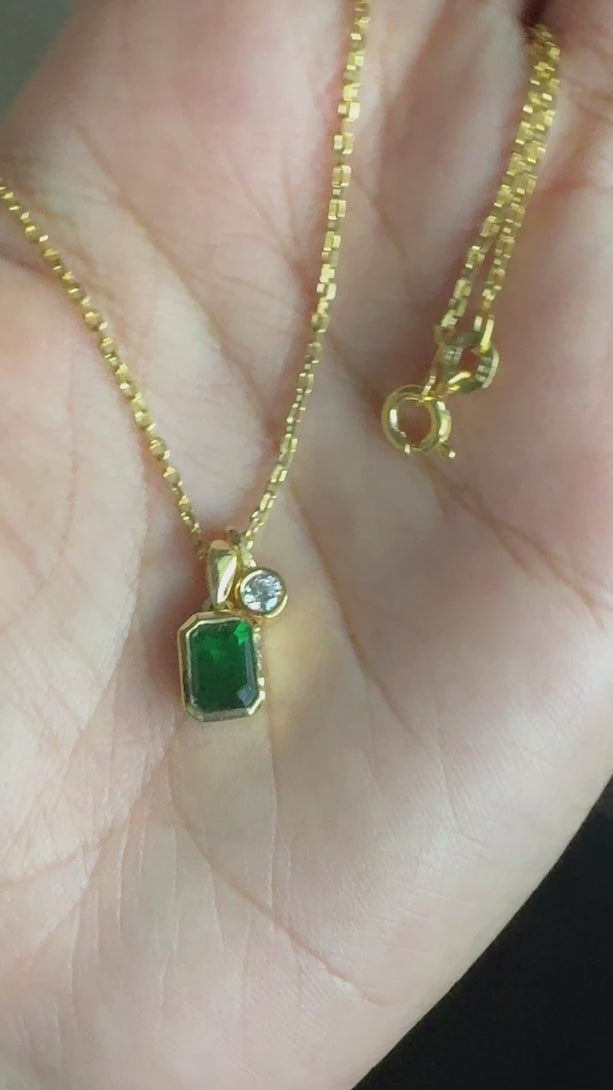 Emerald Cut 18k Solid Gold Necklace Bezel Set CZ Diamond Birthday Gift For Women's