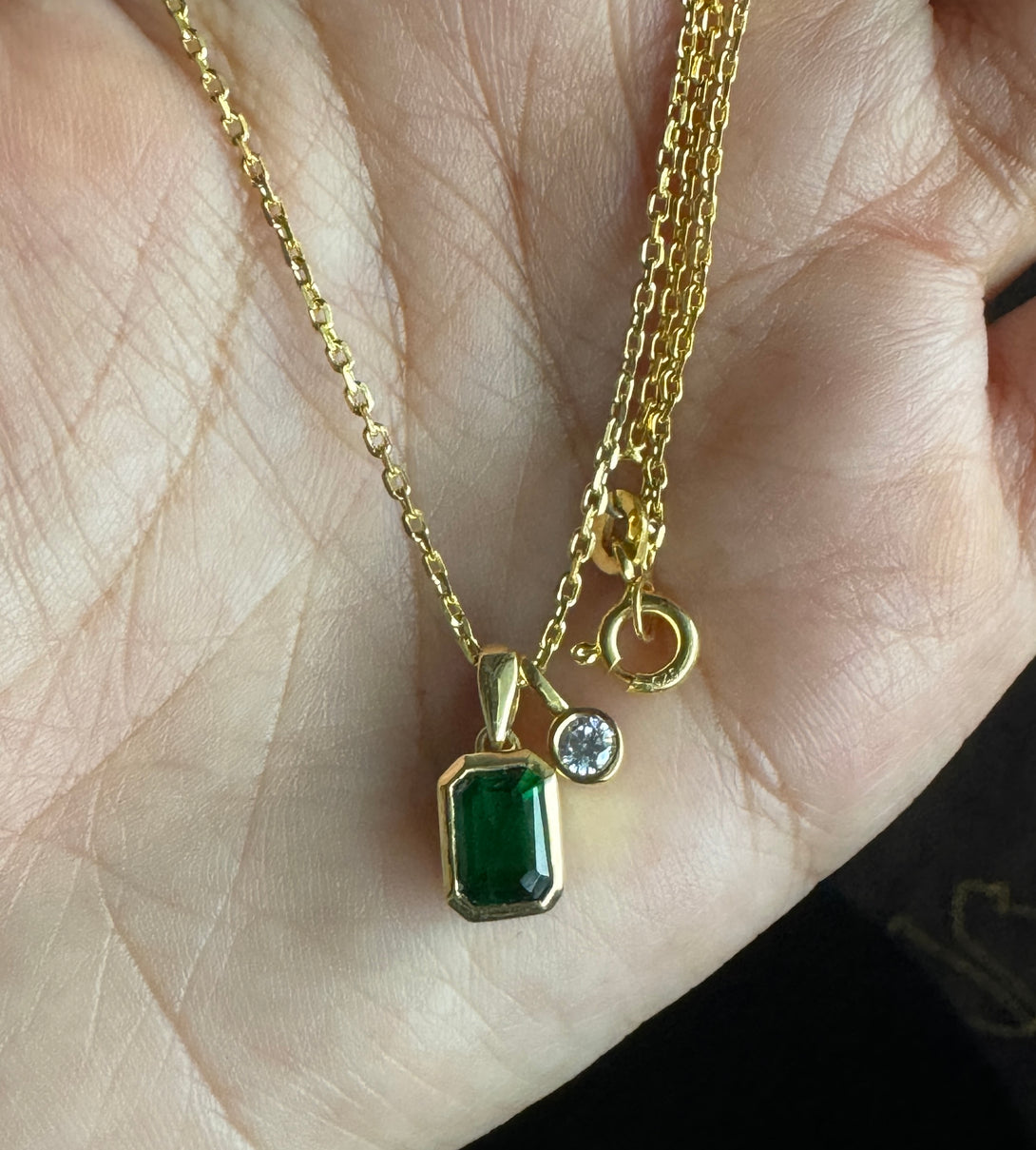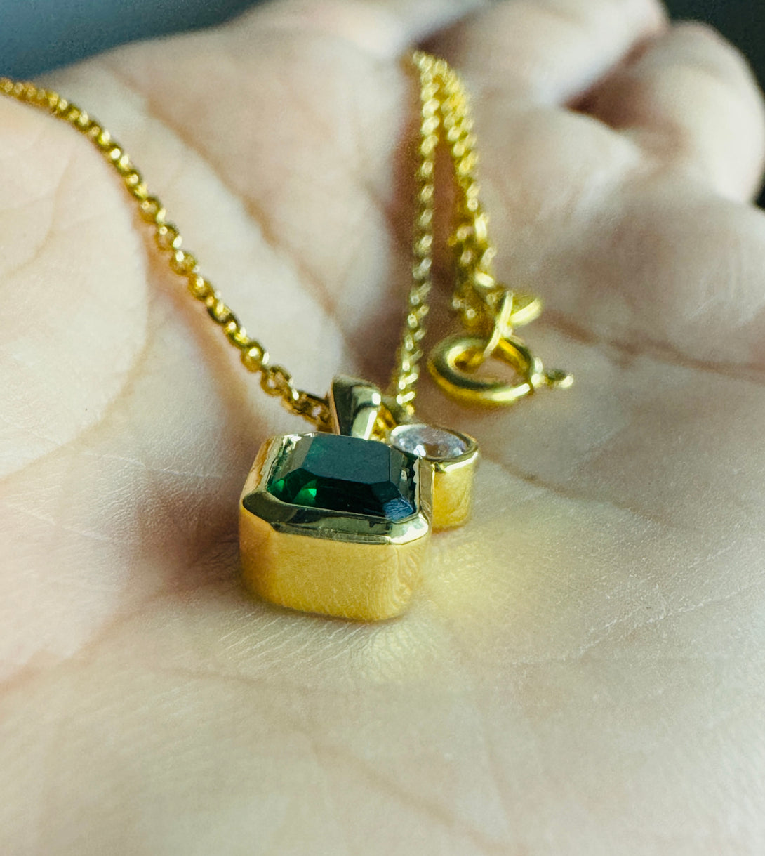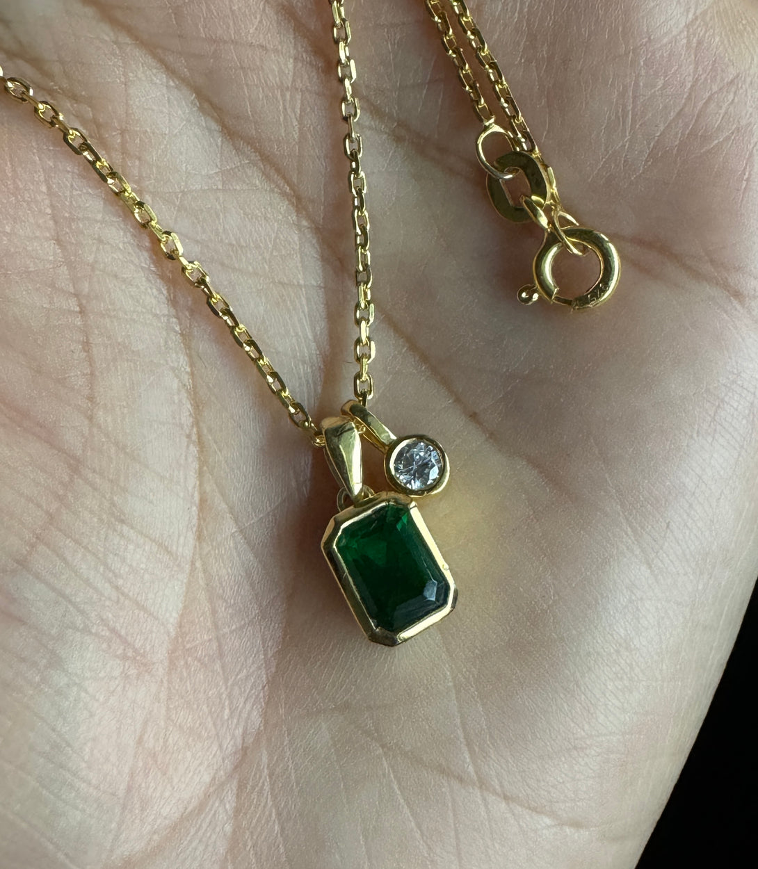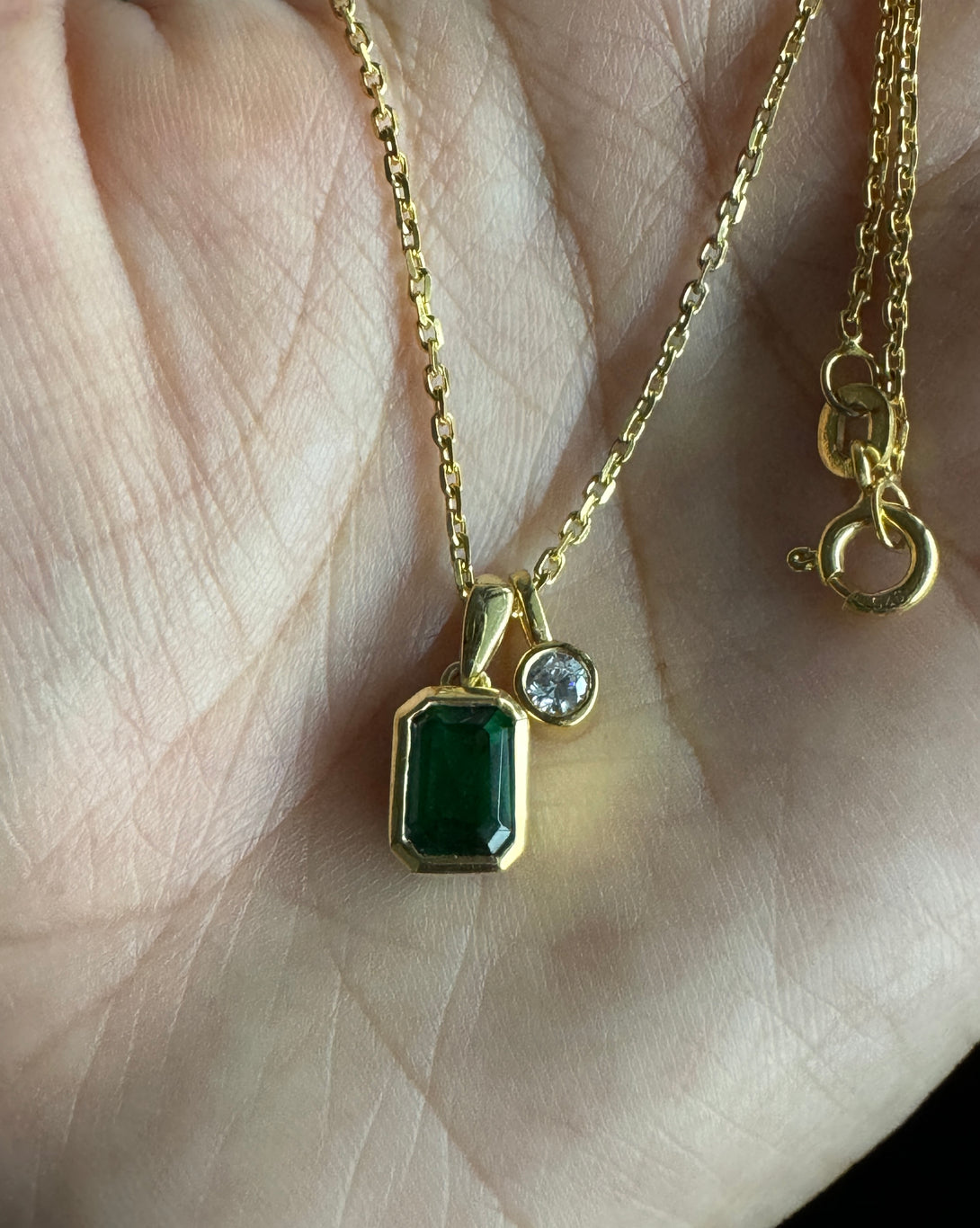 Emerald Cut 18k Solid Gold Necklace Bezel Set CZ Diamond Birthday Gift For Women's