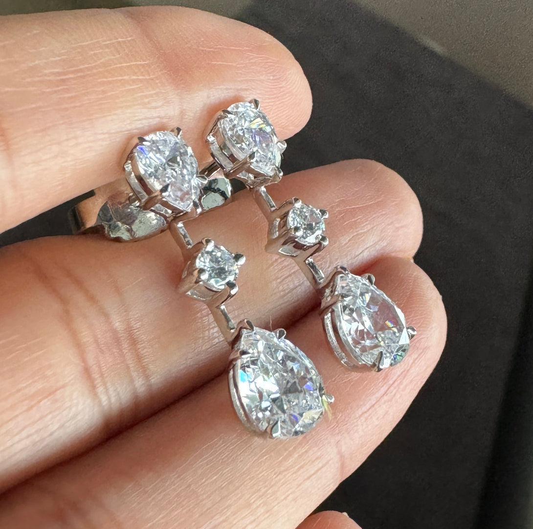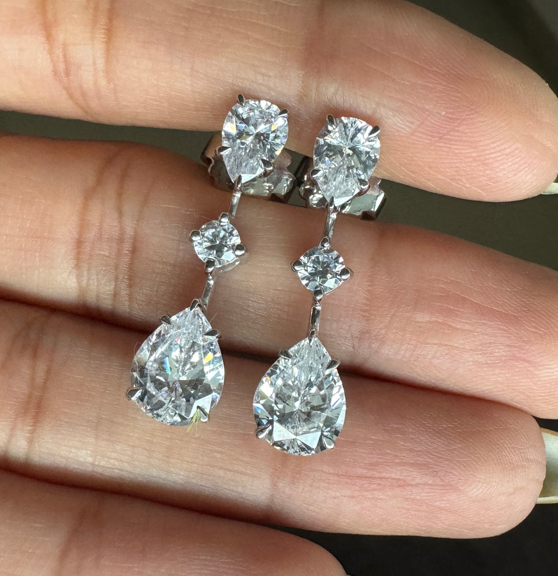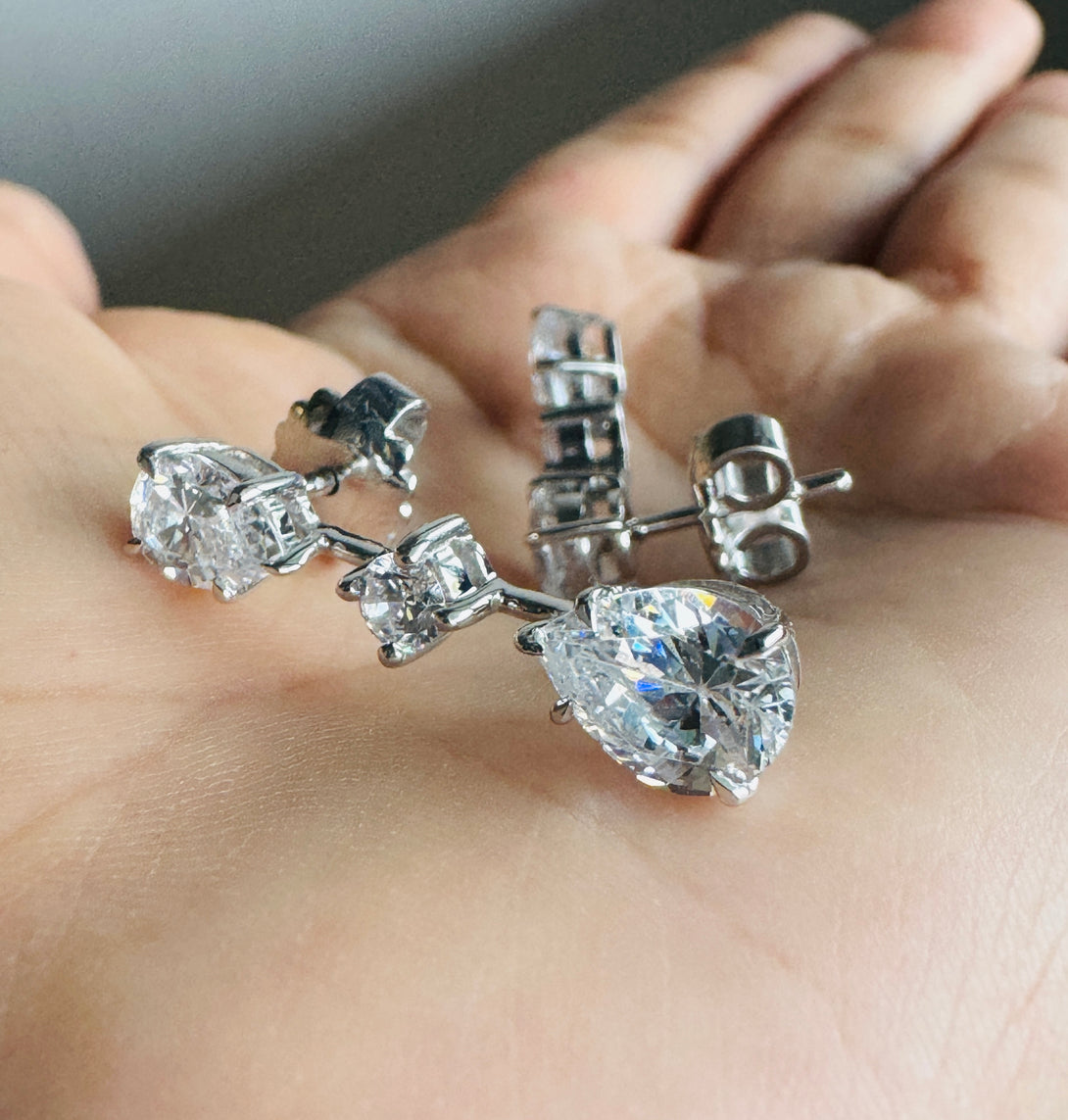 Pear Cut Stud Earrings Moissanite Diamond Dangle Drop Anniversary Gift For Her