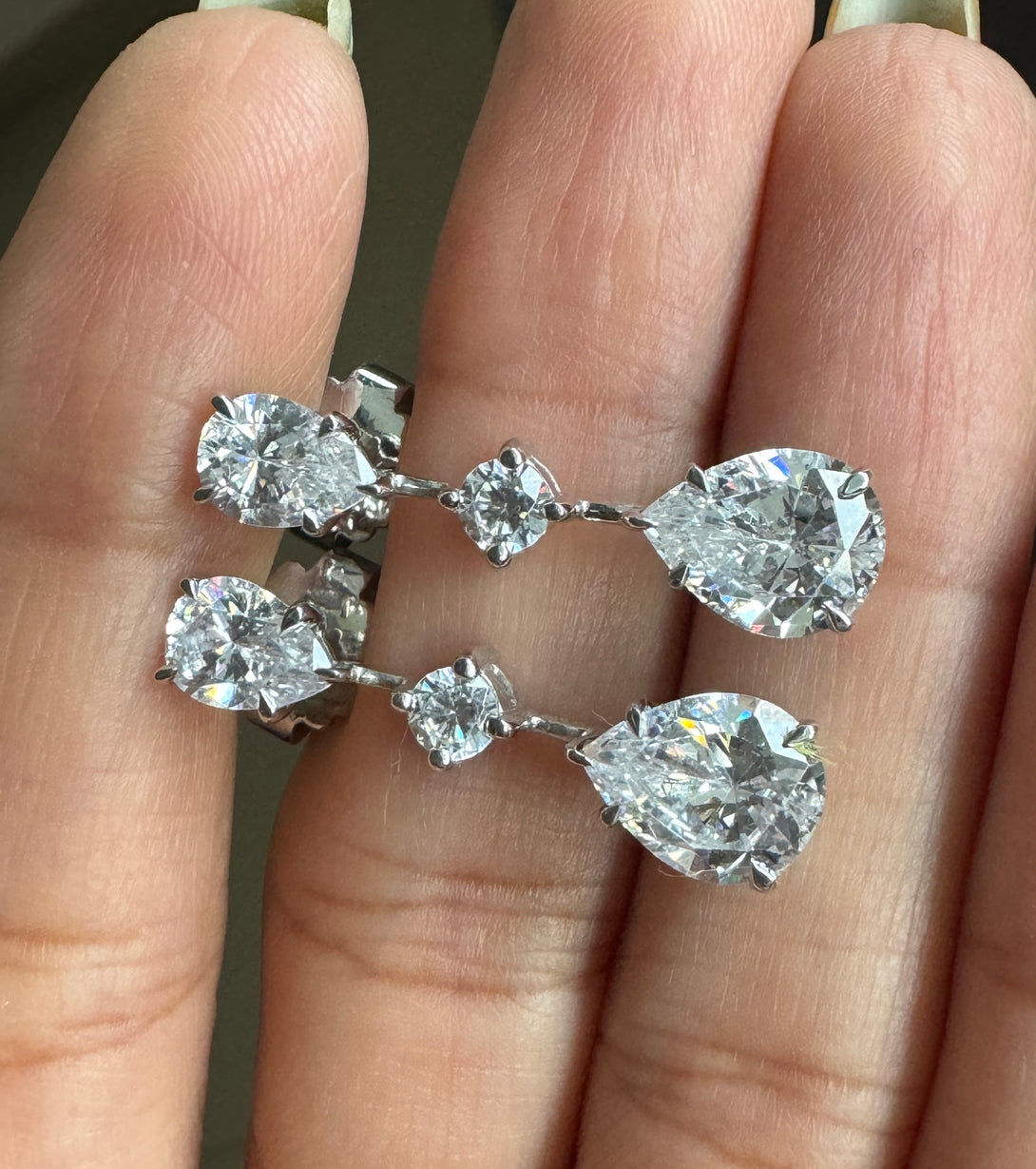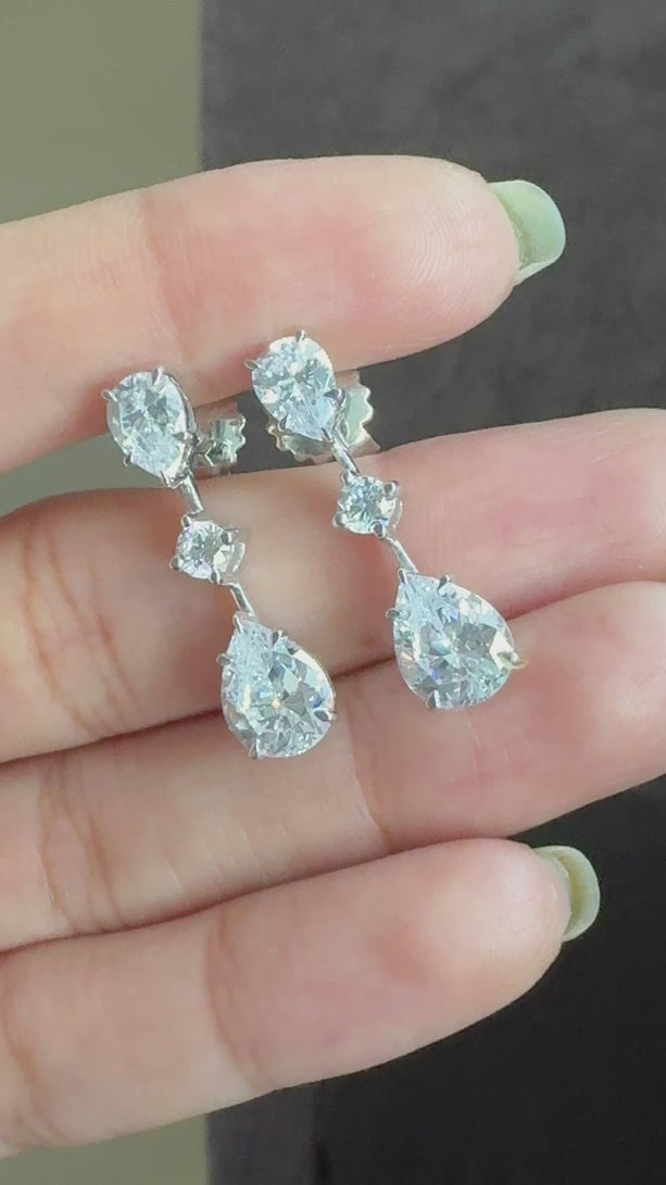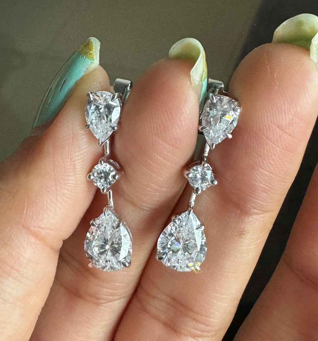 Pear Cut Stud Earrings Moissanite Diamond Dangle Drop Anniversary Gift For Her