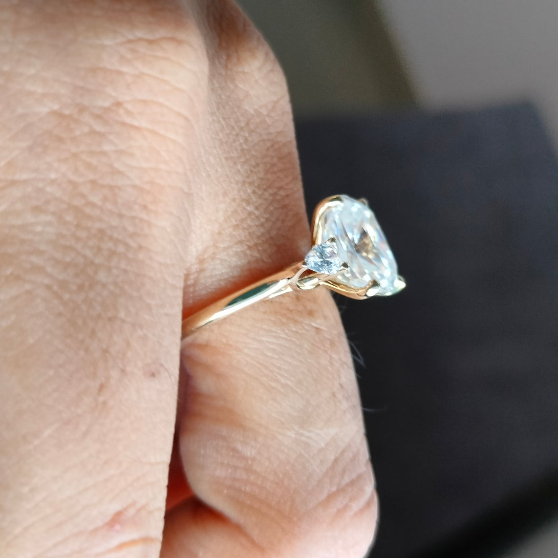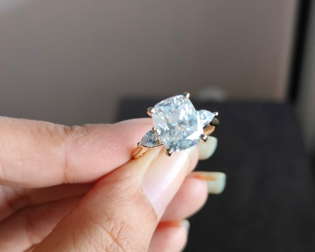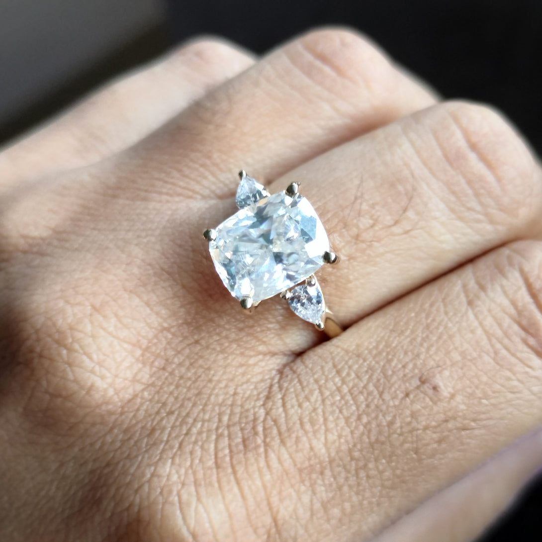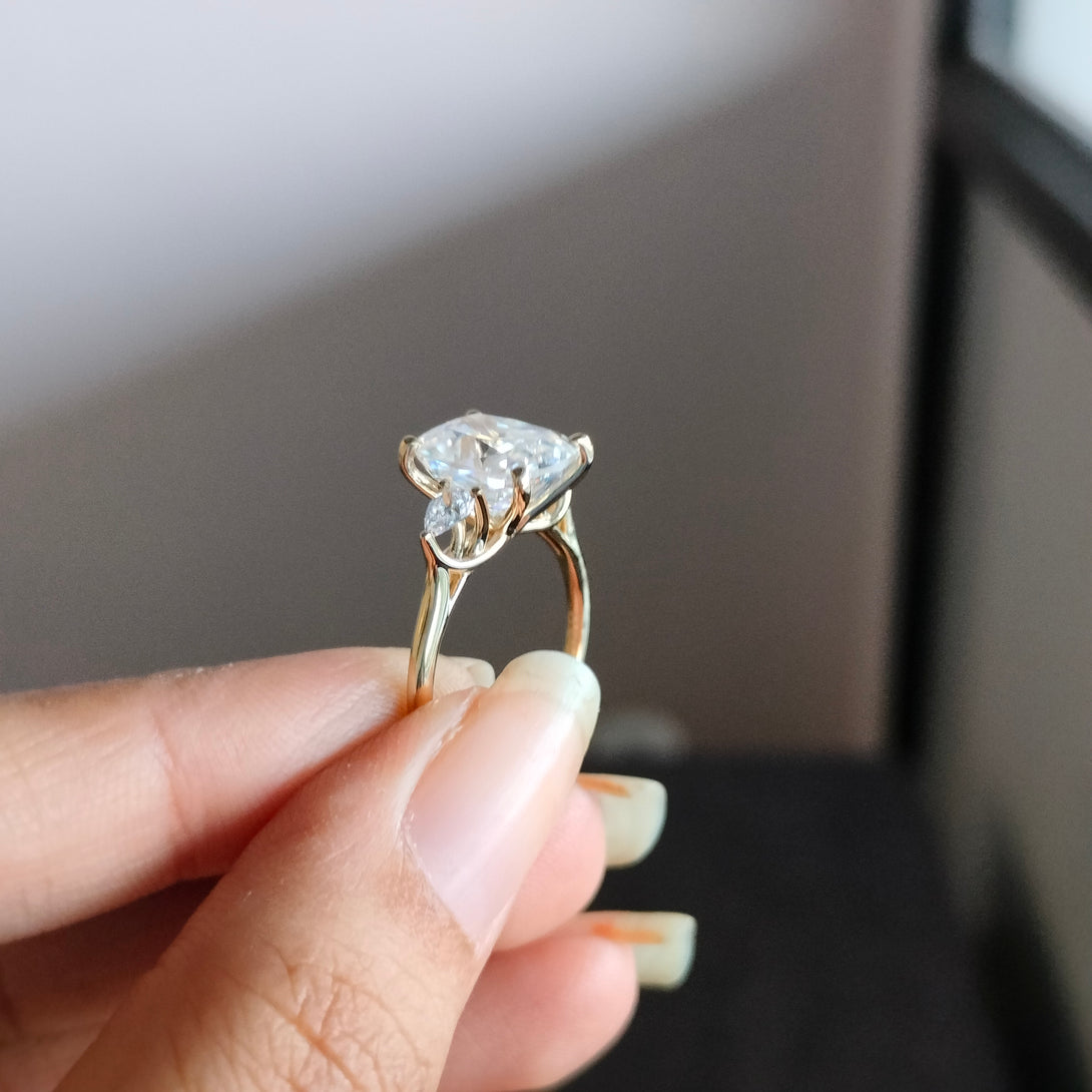 2.50 CTW Elongated Cushion Cut Moissanite Three Stone Engagement Ring