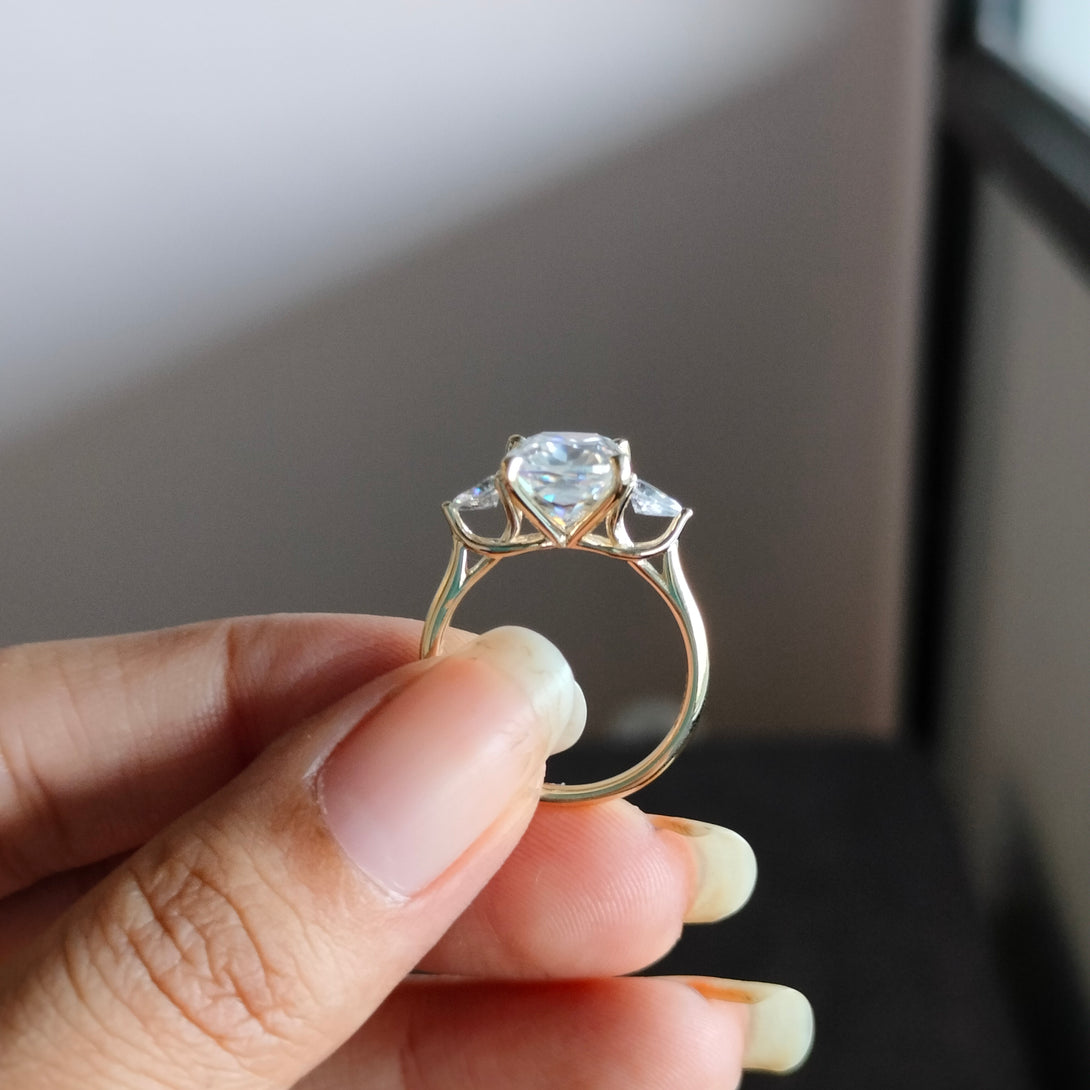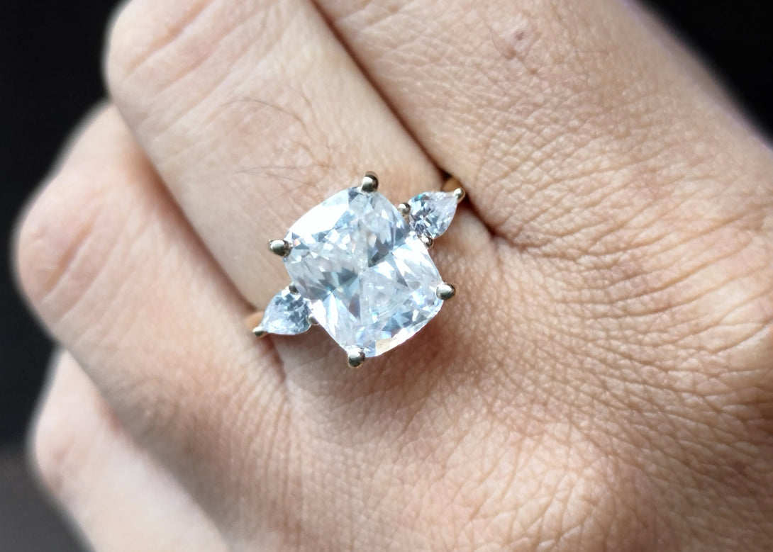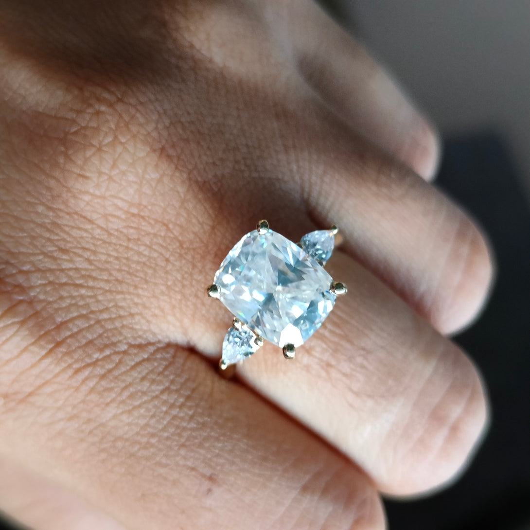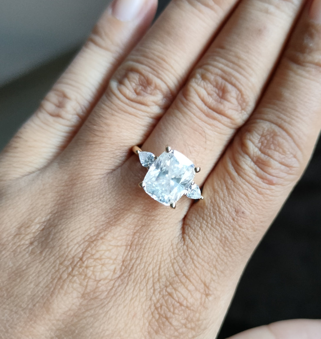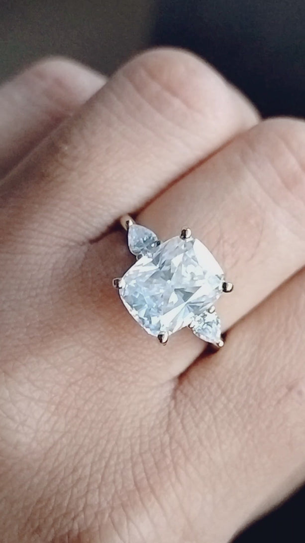 2.50 CTW Elongated Cushion Cut Moissanite Three Stone Engagement Ring