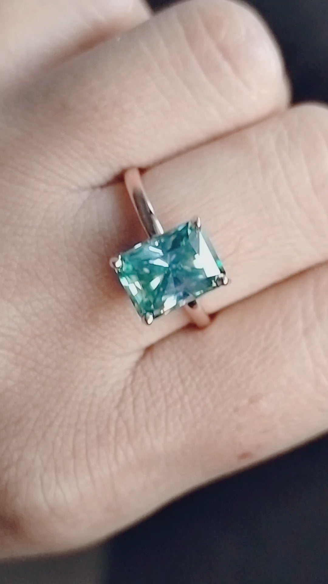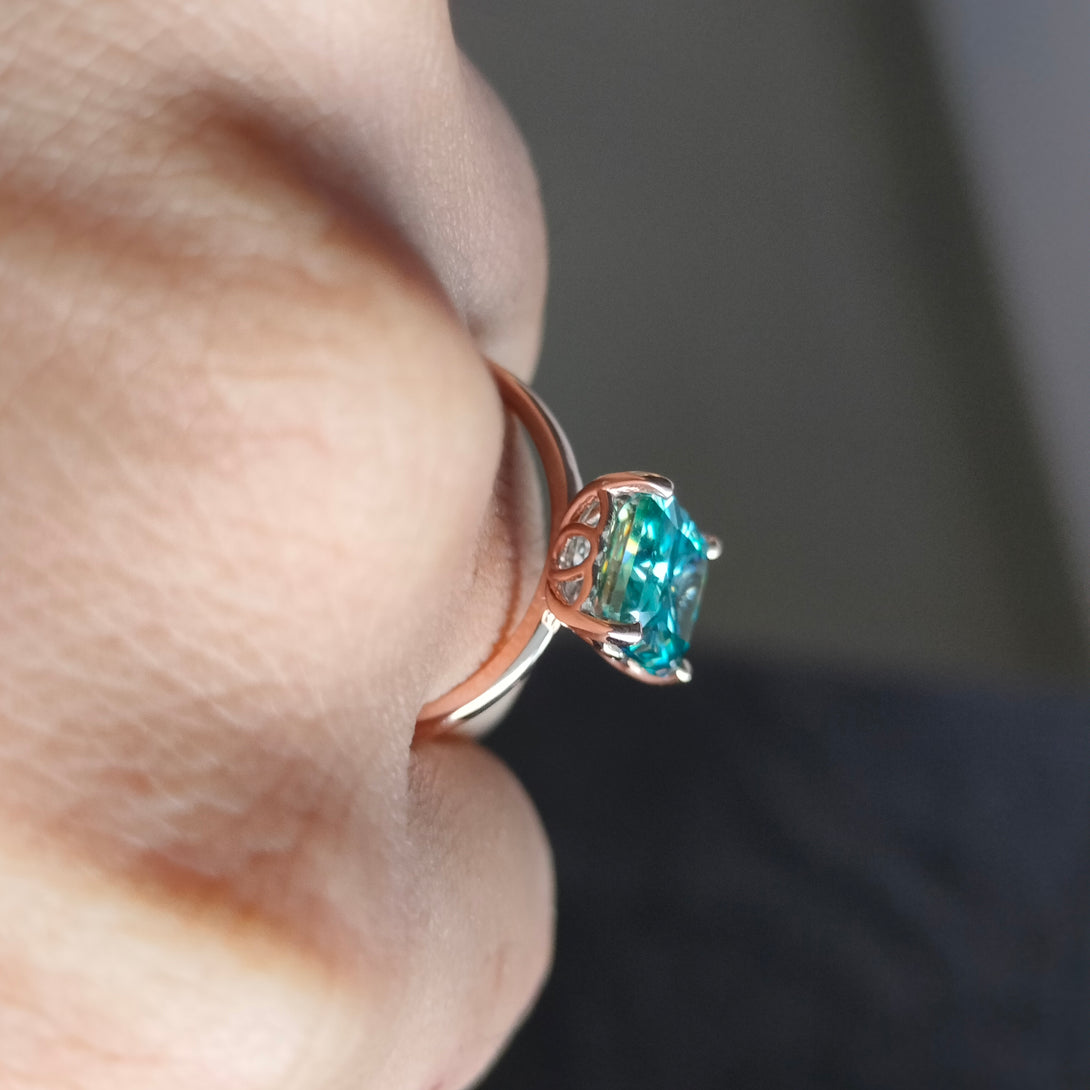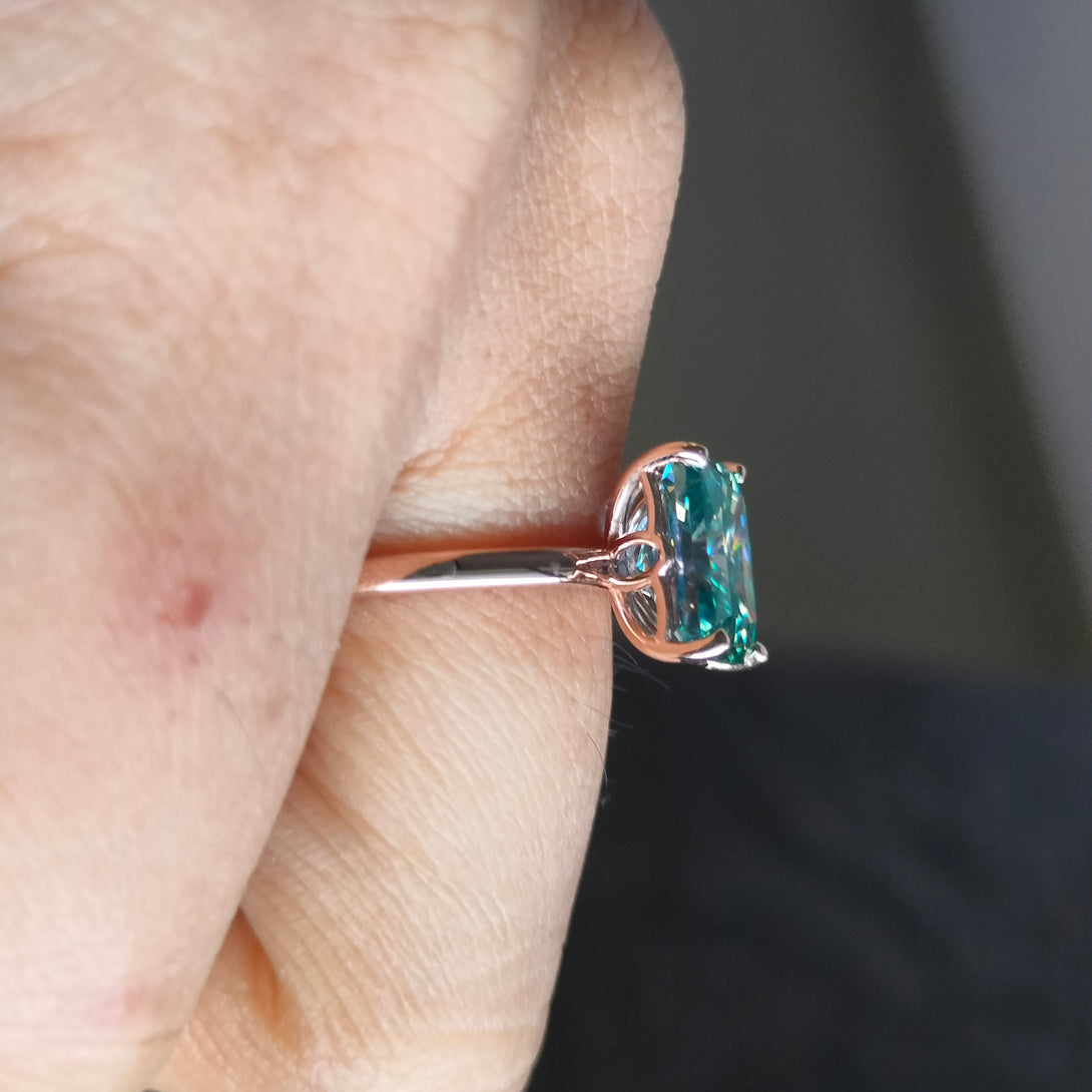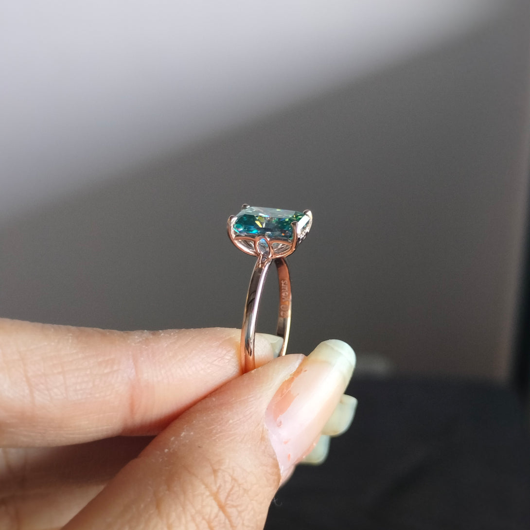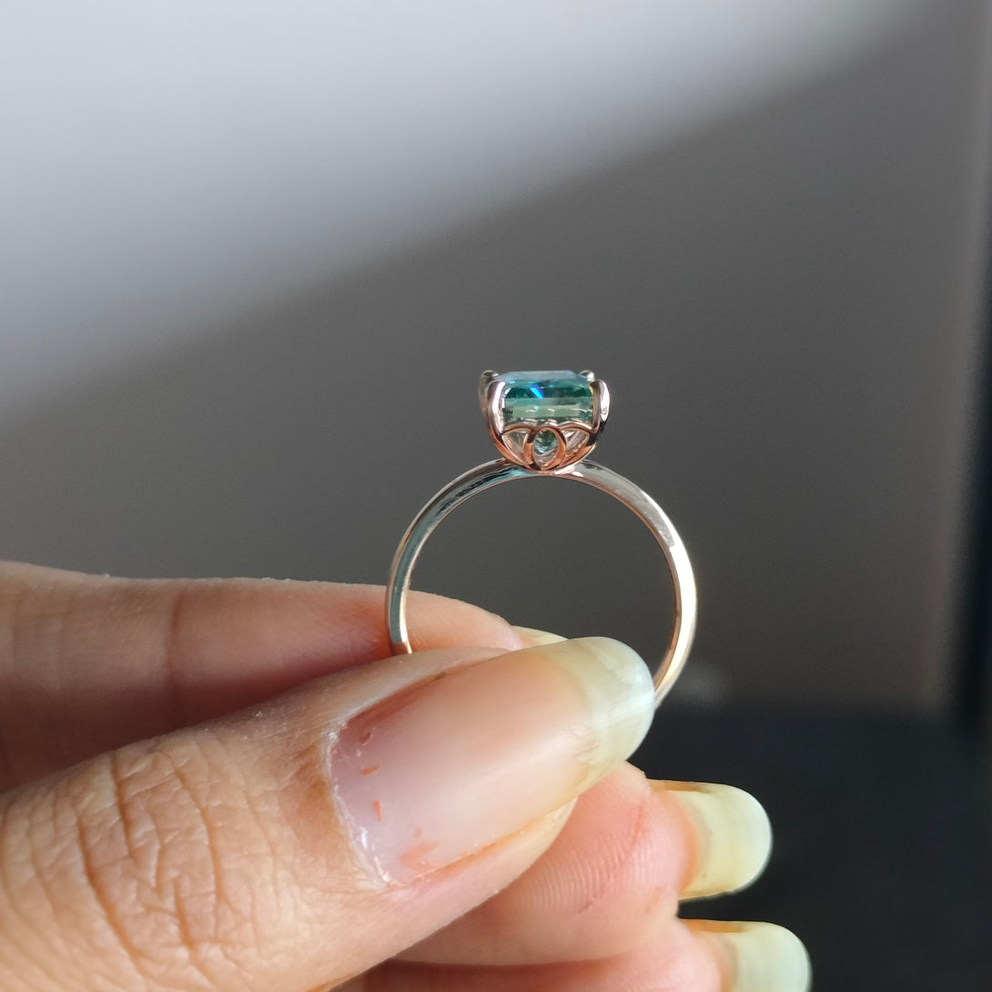 Blue Moissanite Engagement Ring Radiant Cut Solitaire Ring in 18K Solid Gold