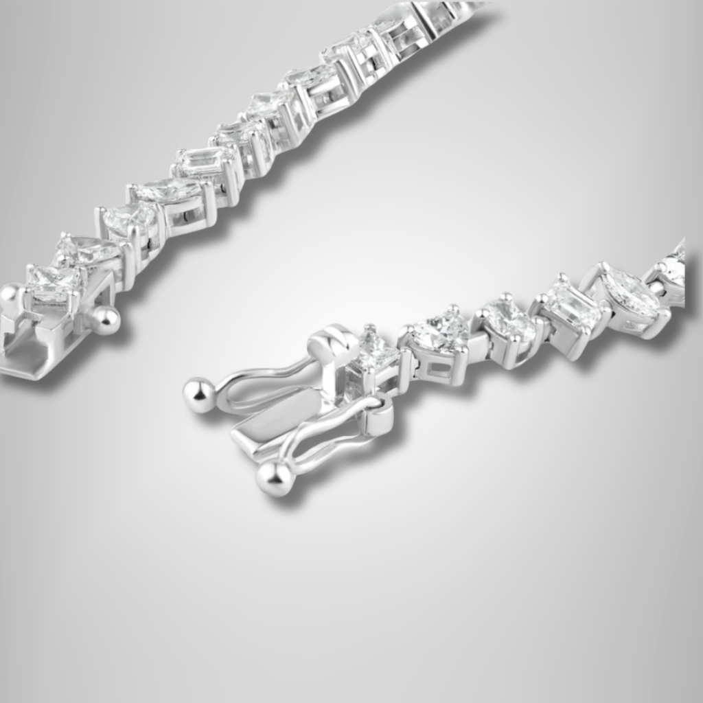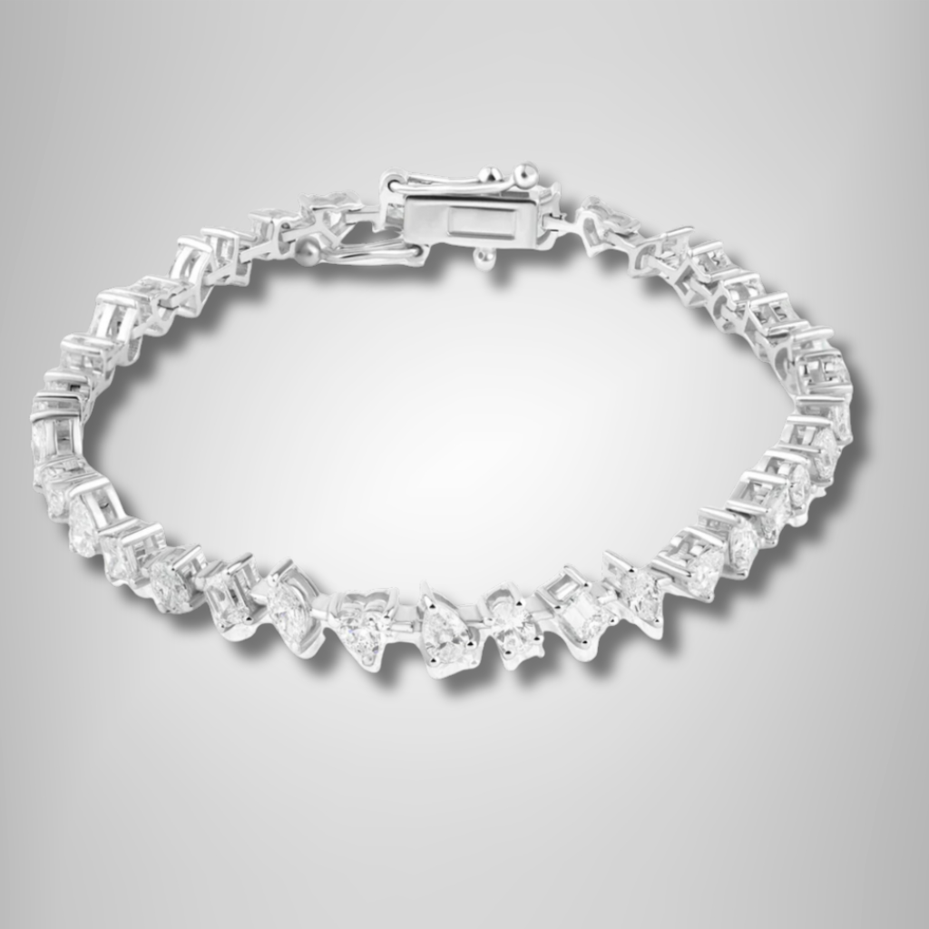 18K White Gold Multi Cut Diamond Tennis Bracelet Stylish Handcrafted Jewelry