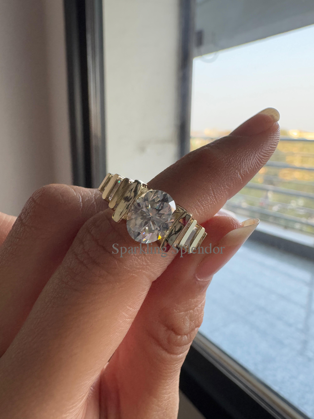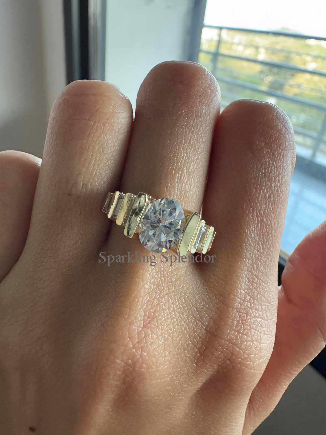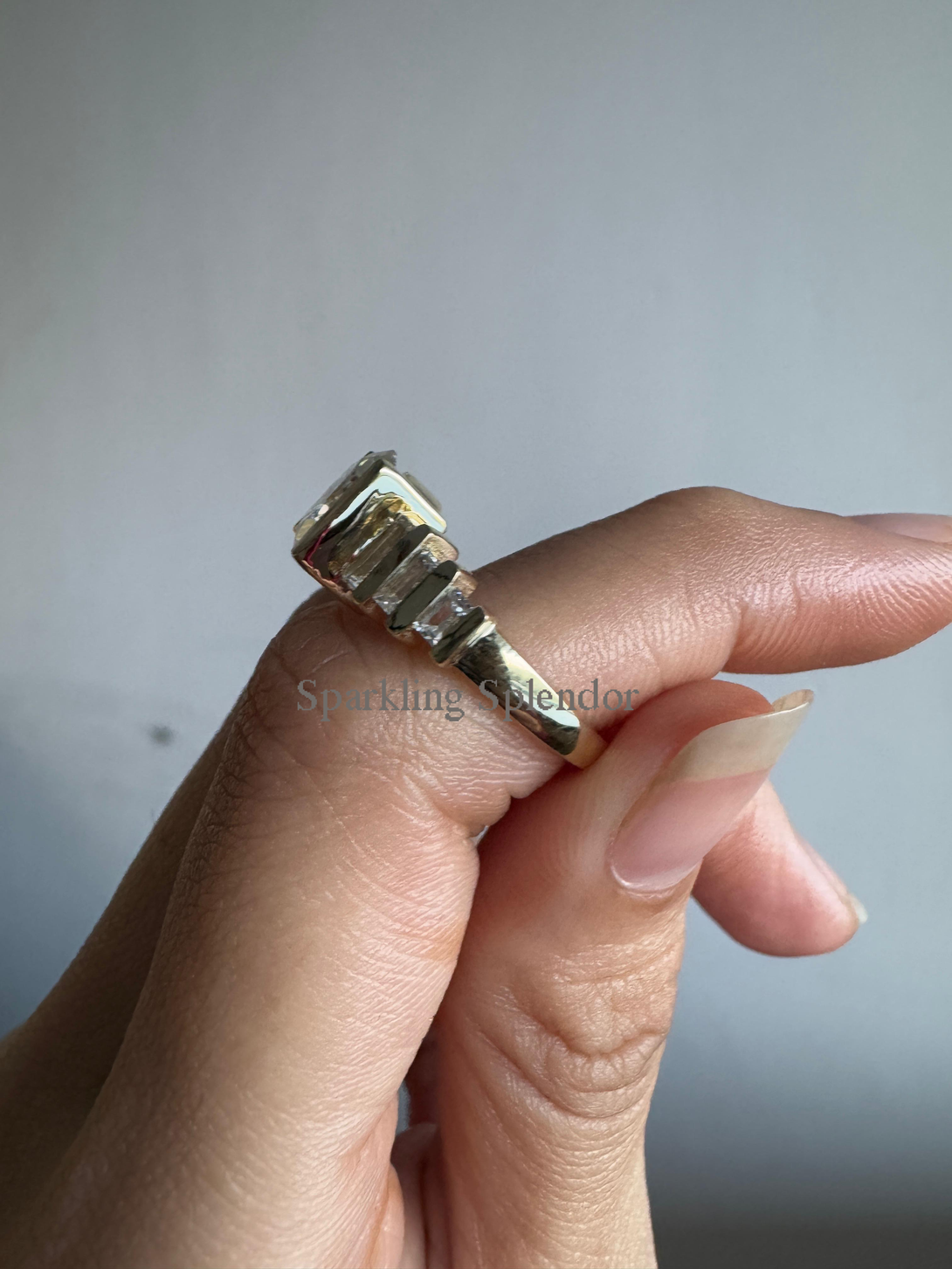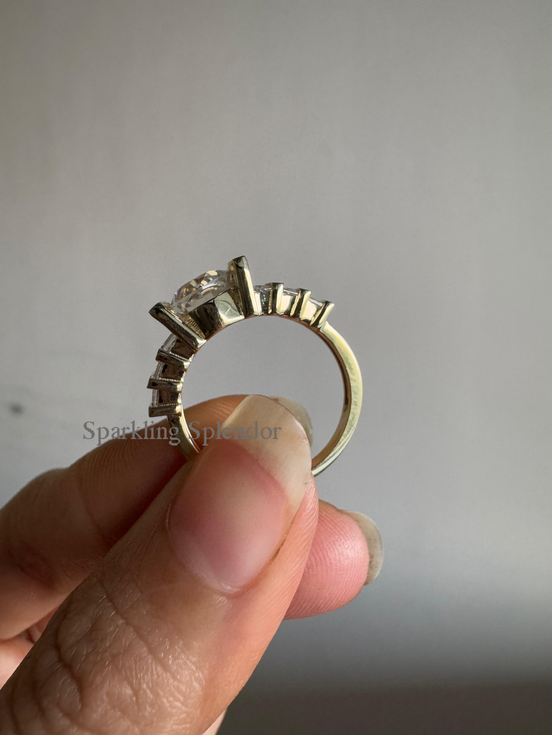 Classic Oval Cut Moissanite Side Baguette Bar Se Engagement Ring 18K Gold Wedding Ring