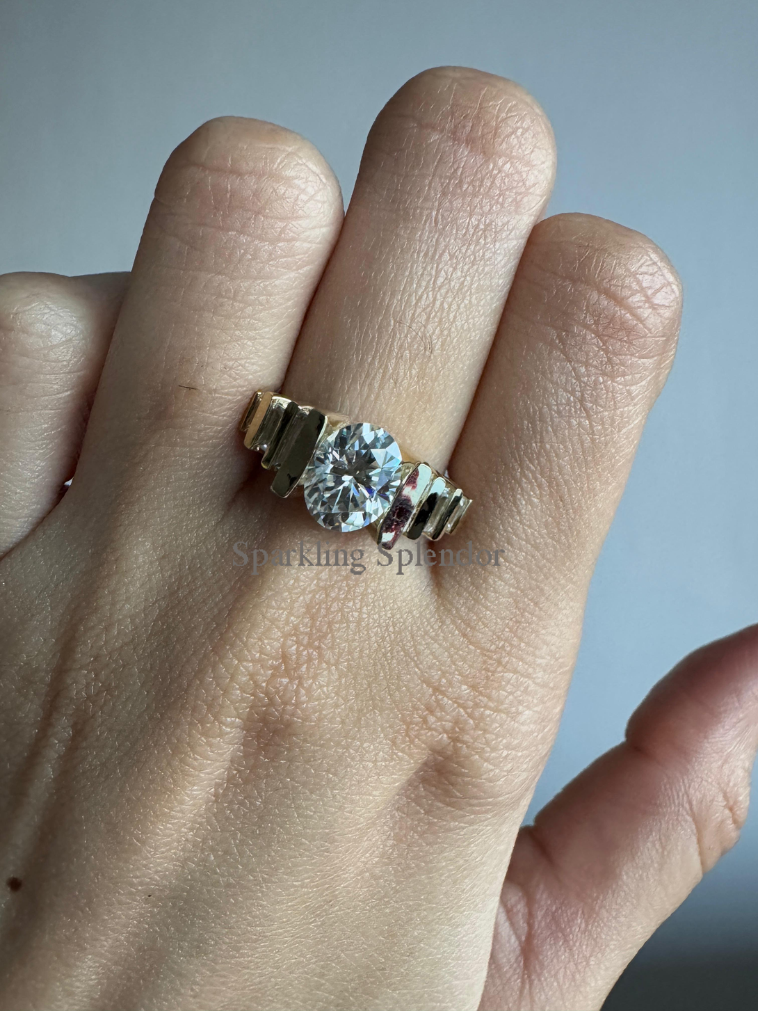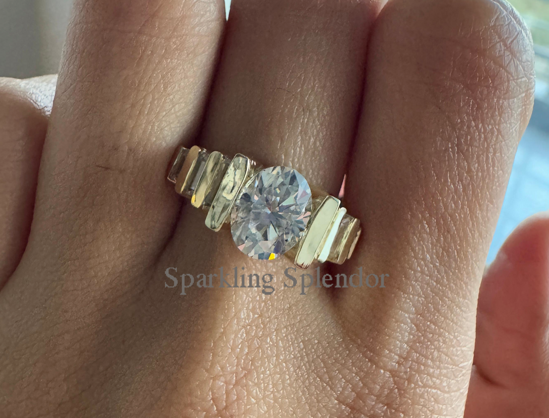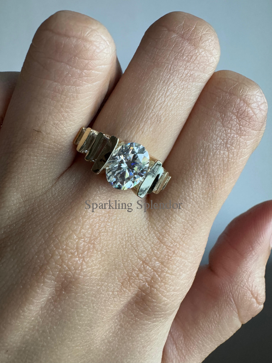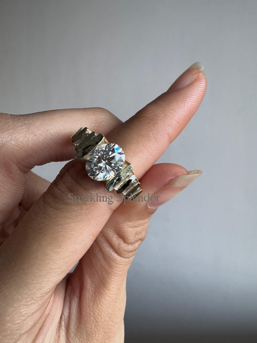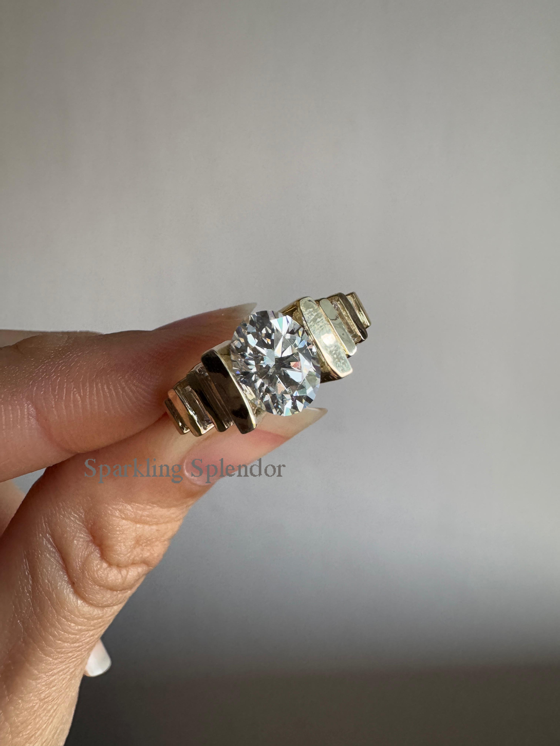 Classic Oval Cut Moissanite Side Baguette Bar Se Engagement Ring 18K Gold Wedding Ring