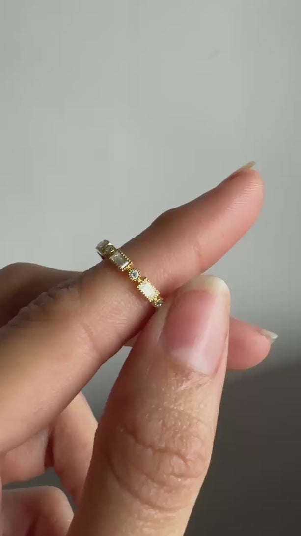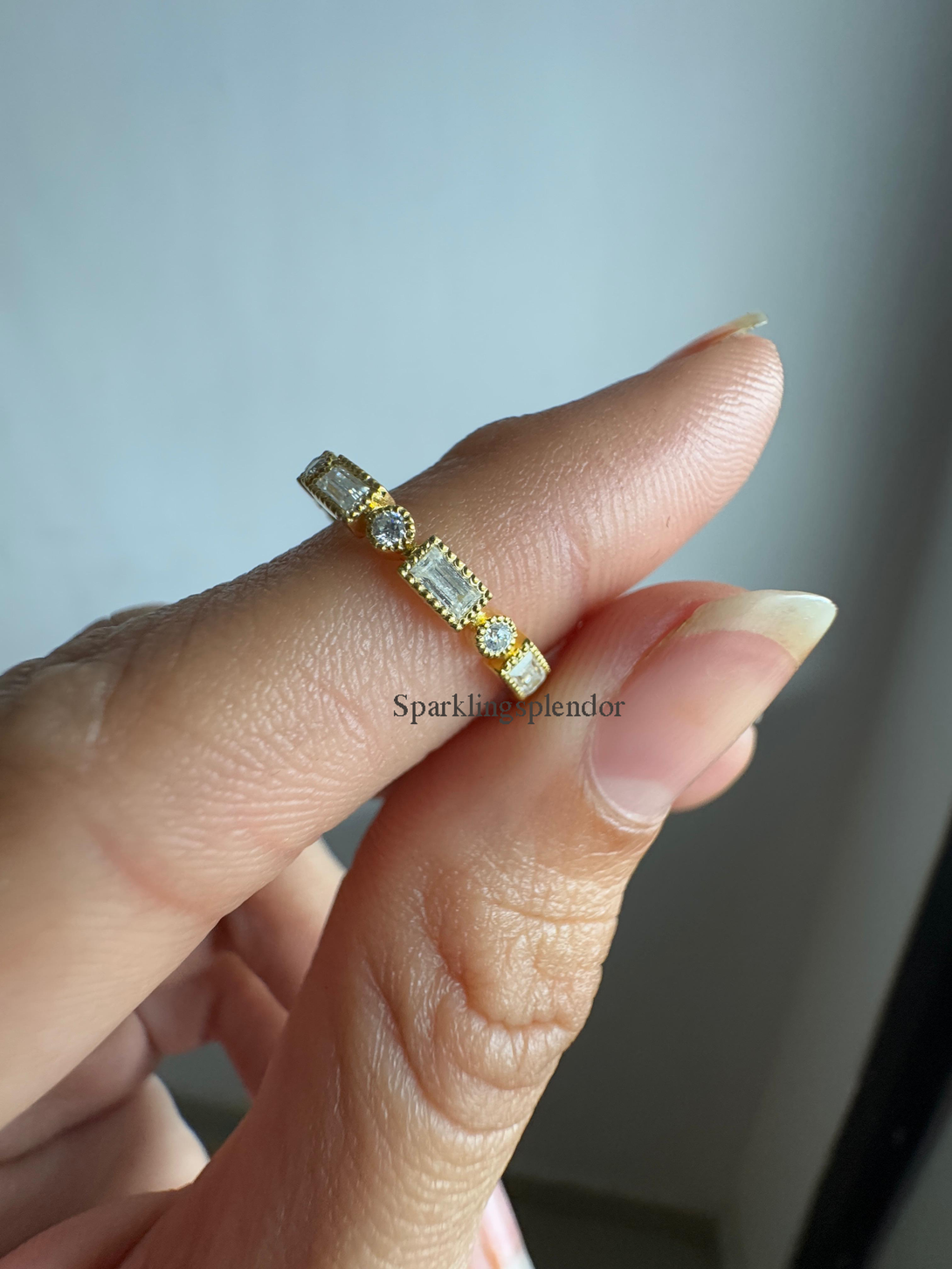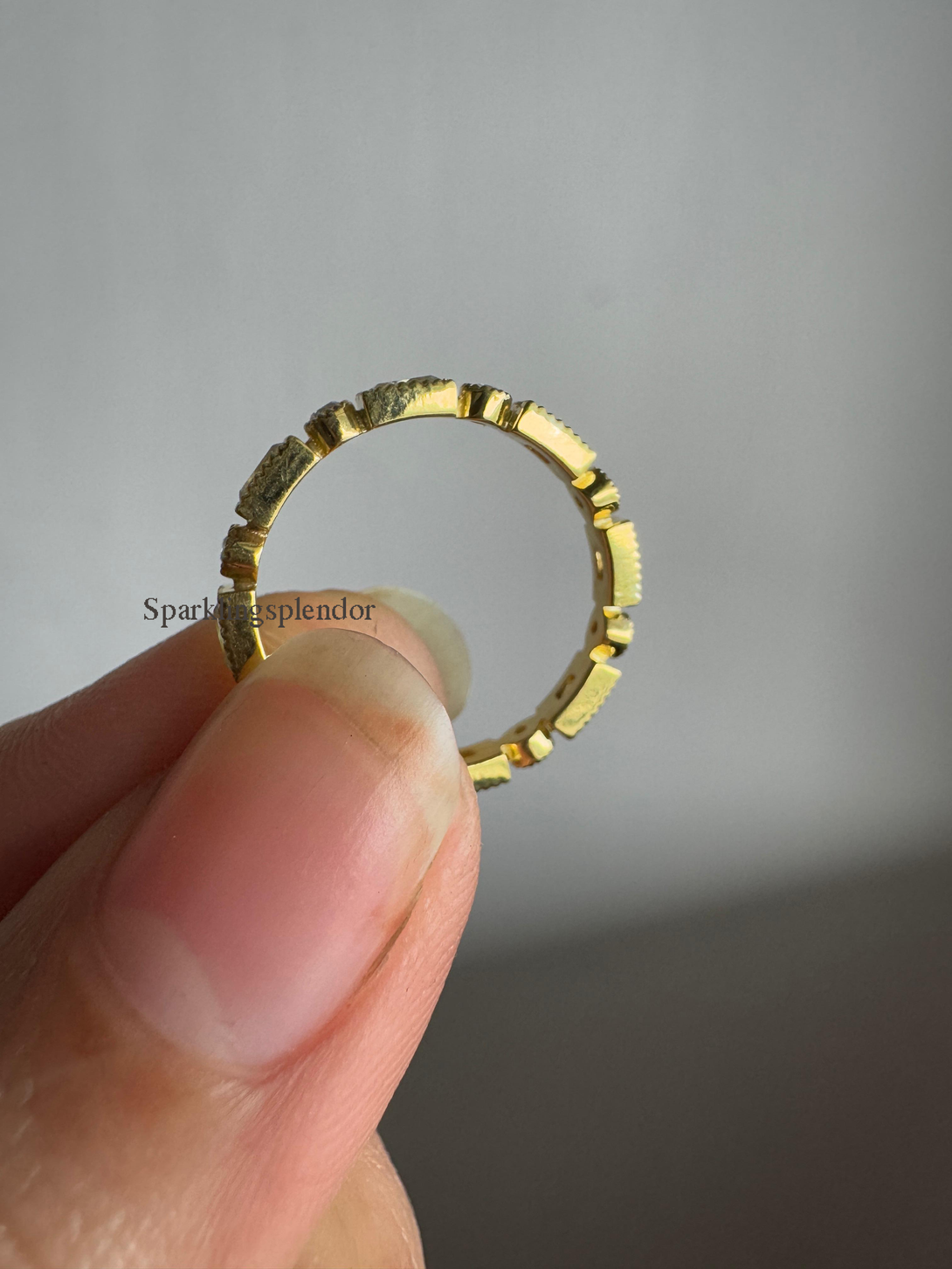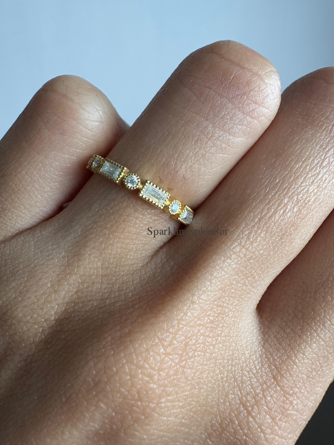 Dainty Baguette & Round Cut Moissanite Band Yellow Gold Eternity Wedding Band