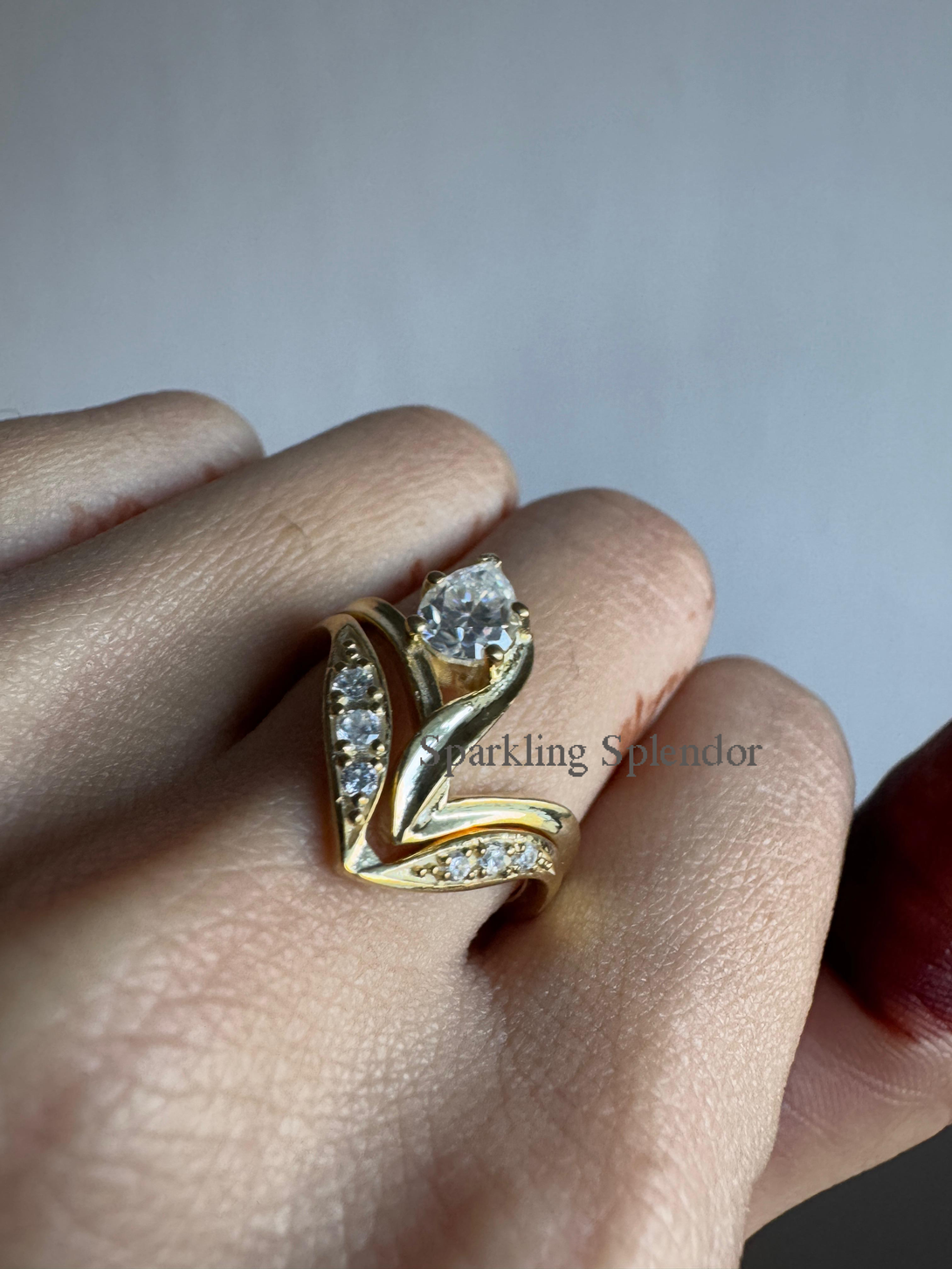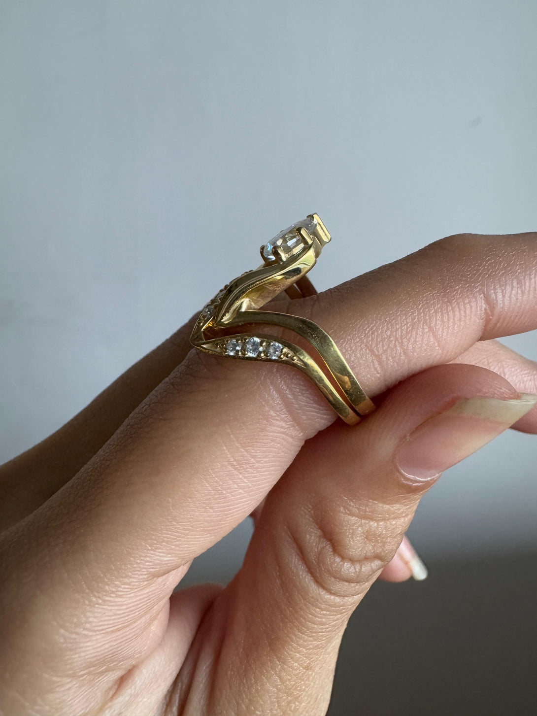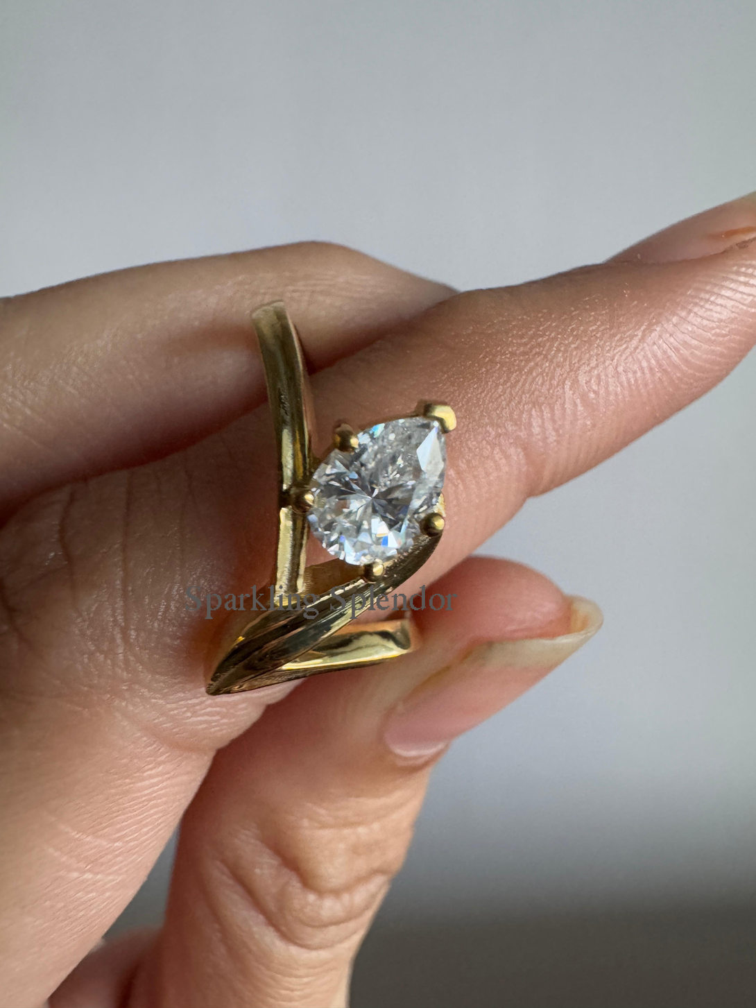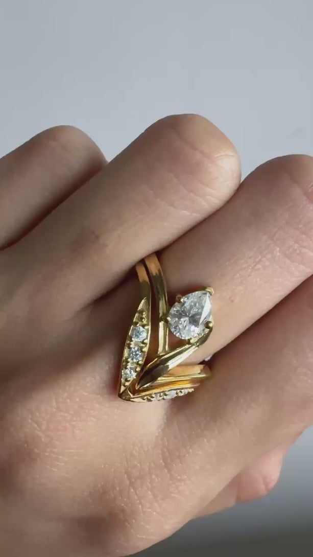 Pear Cut Moissanite Ring With Matching Band Solid Gold Unique Wedding Ring Set
