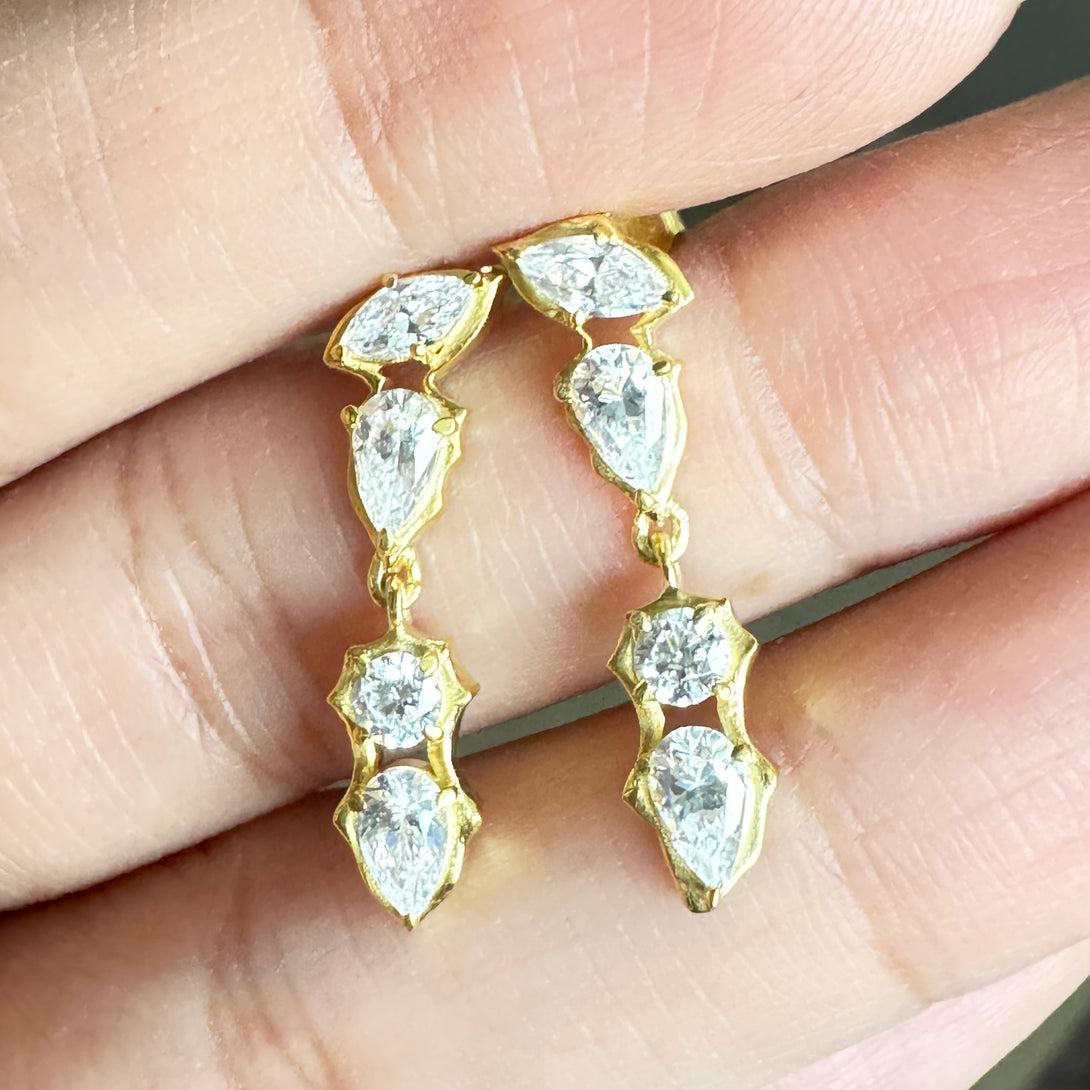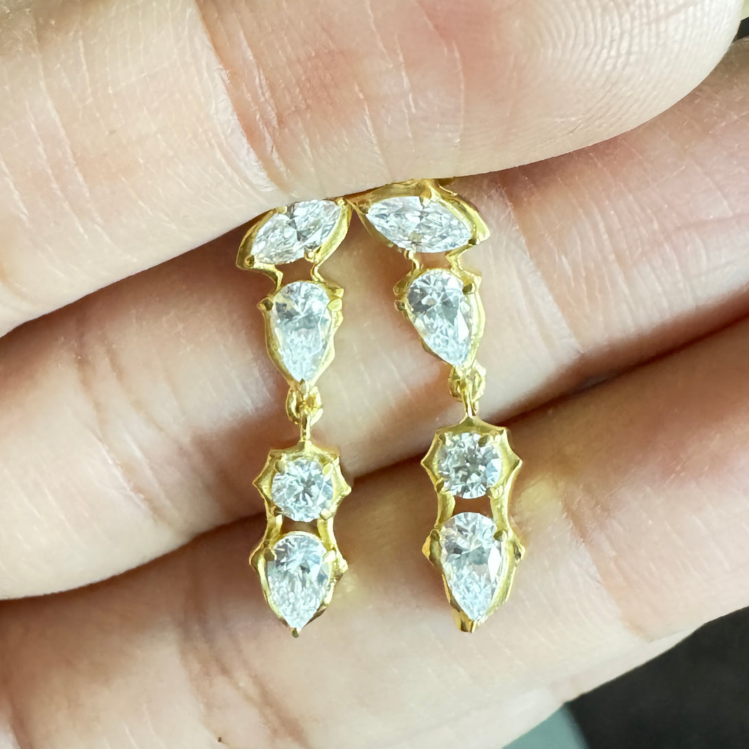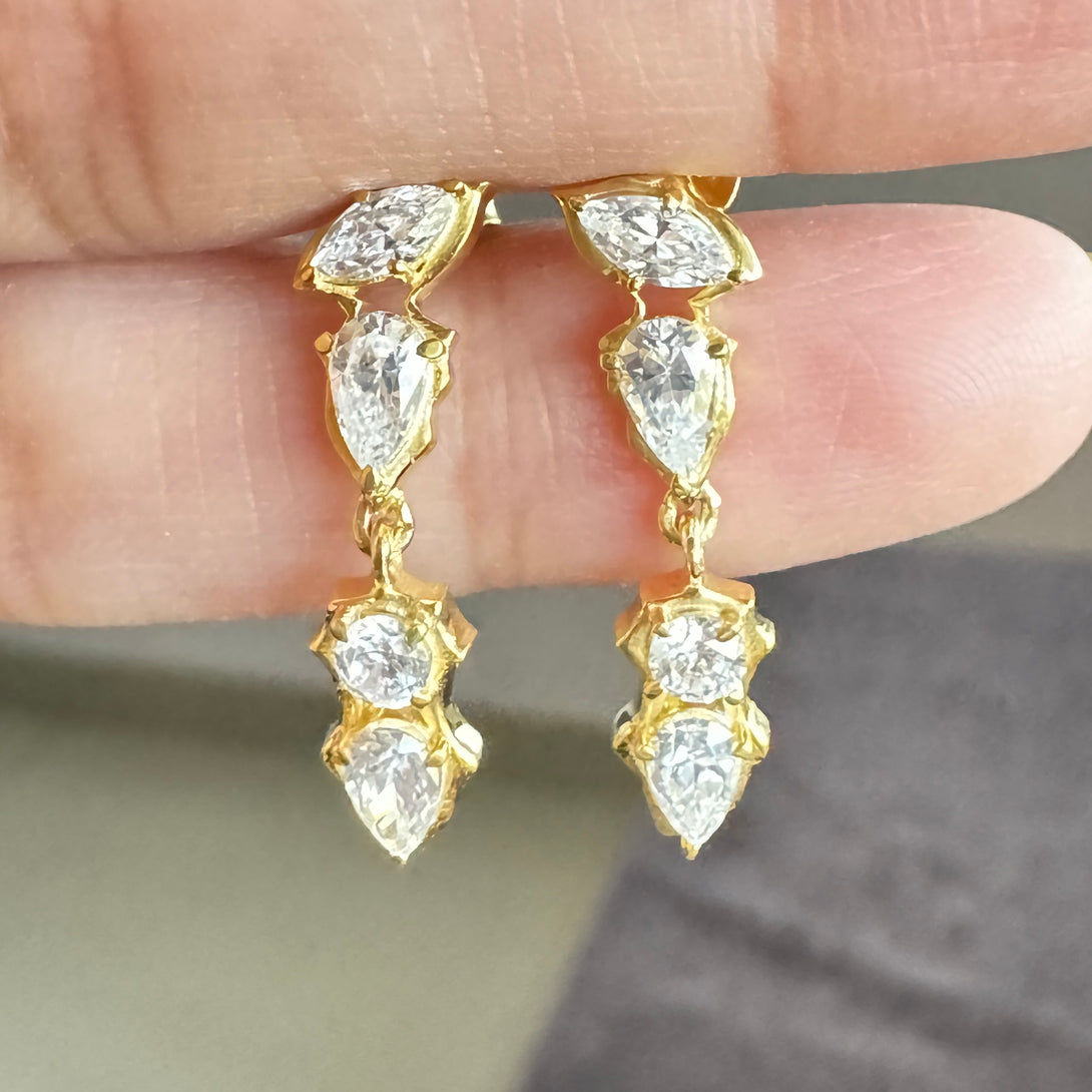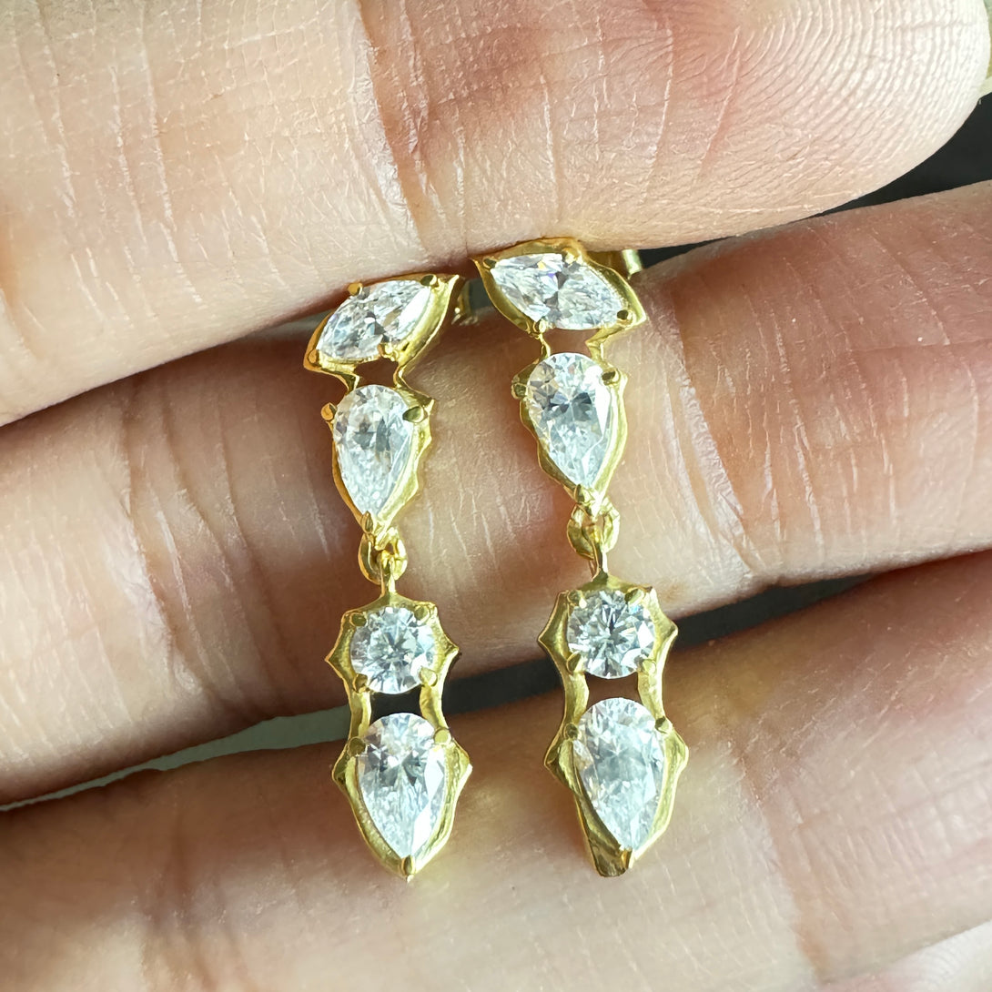 Multiple Cut Moissanite Solid Gold Earrings Beautiful Dangle Drop Earrings Her
