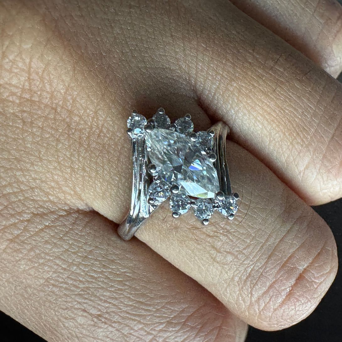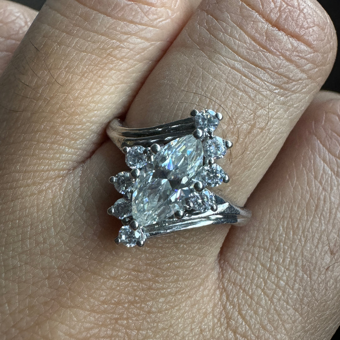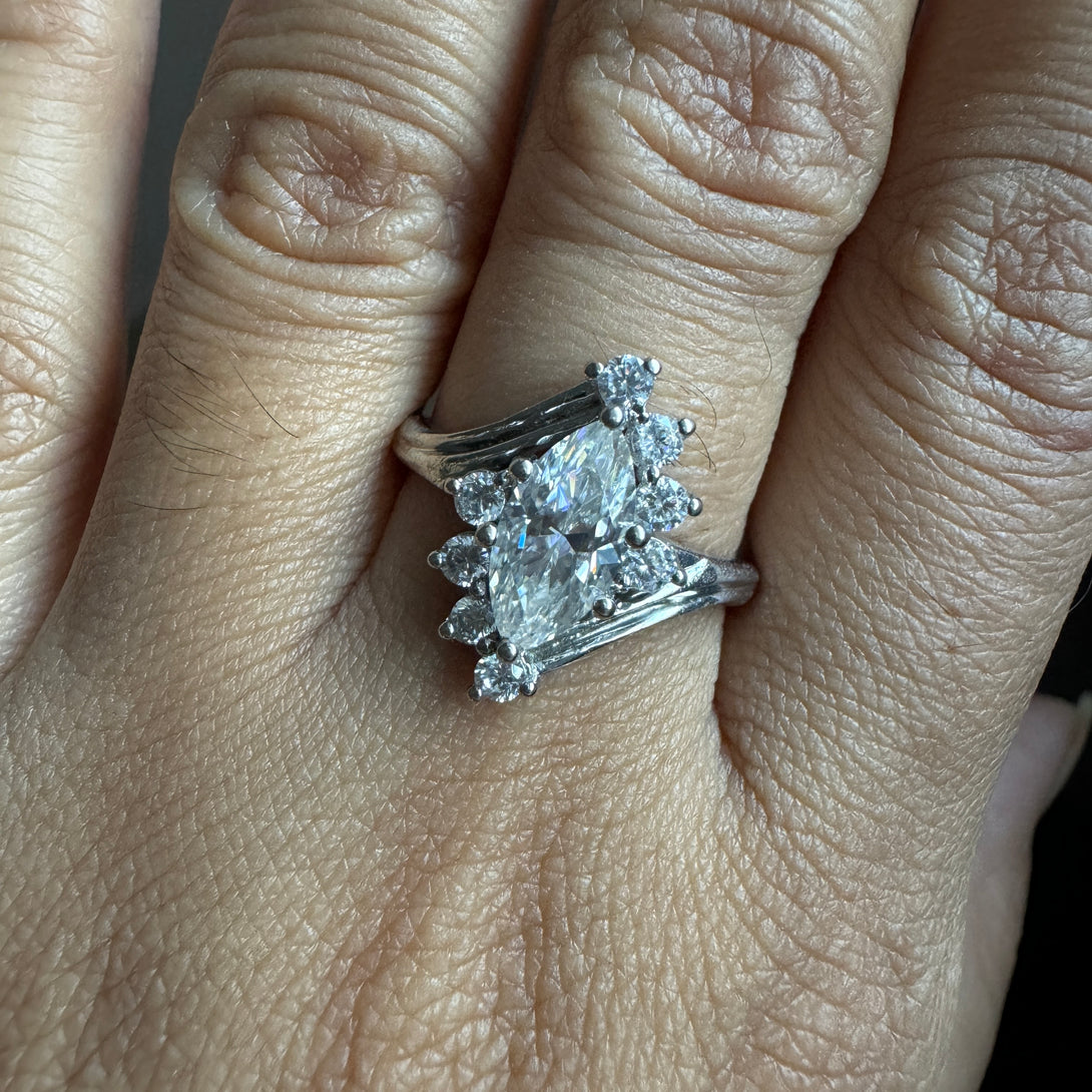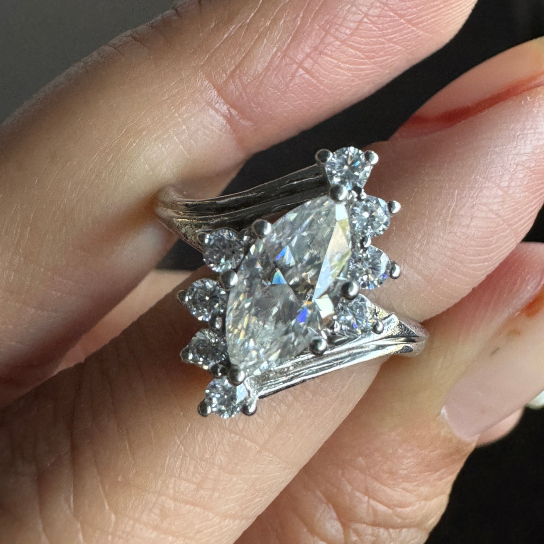 Marquise Moissanite Cluster Ring 18K Solid Gold Antique Engagement Ring