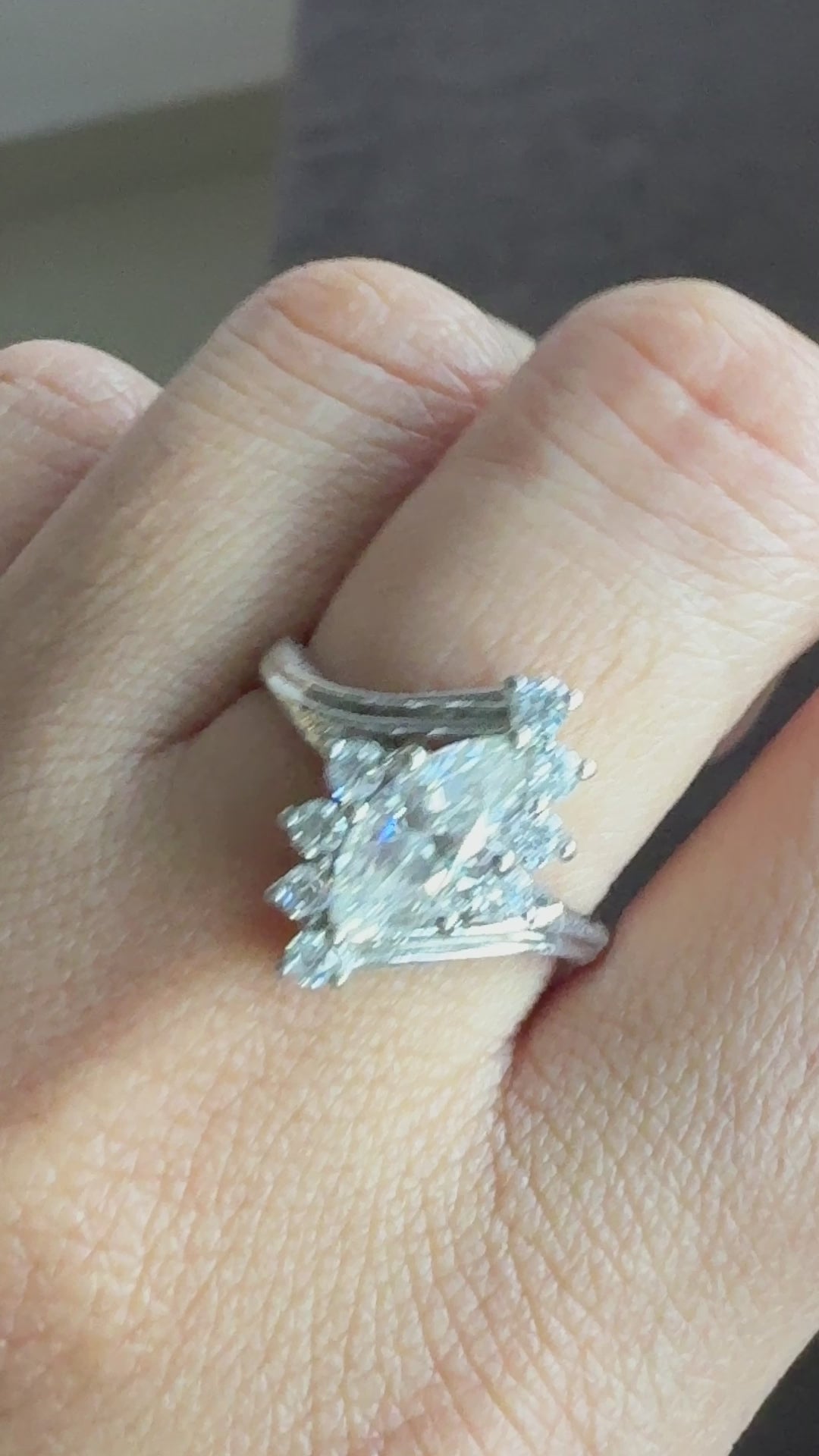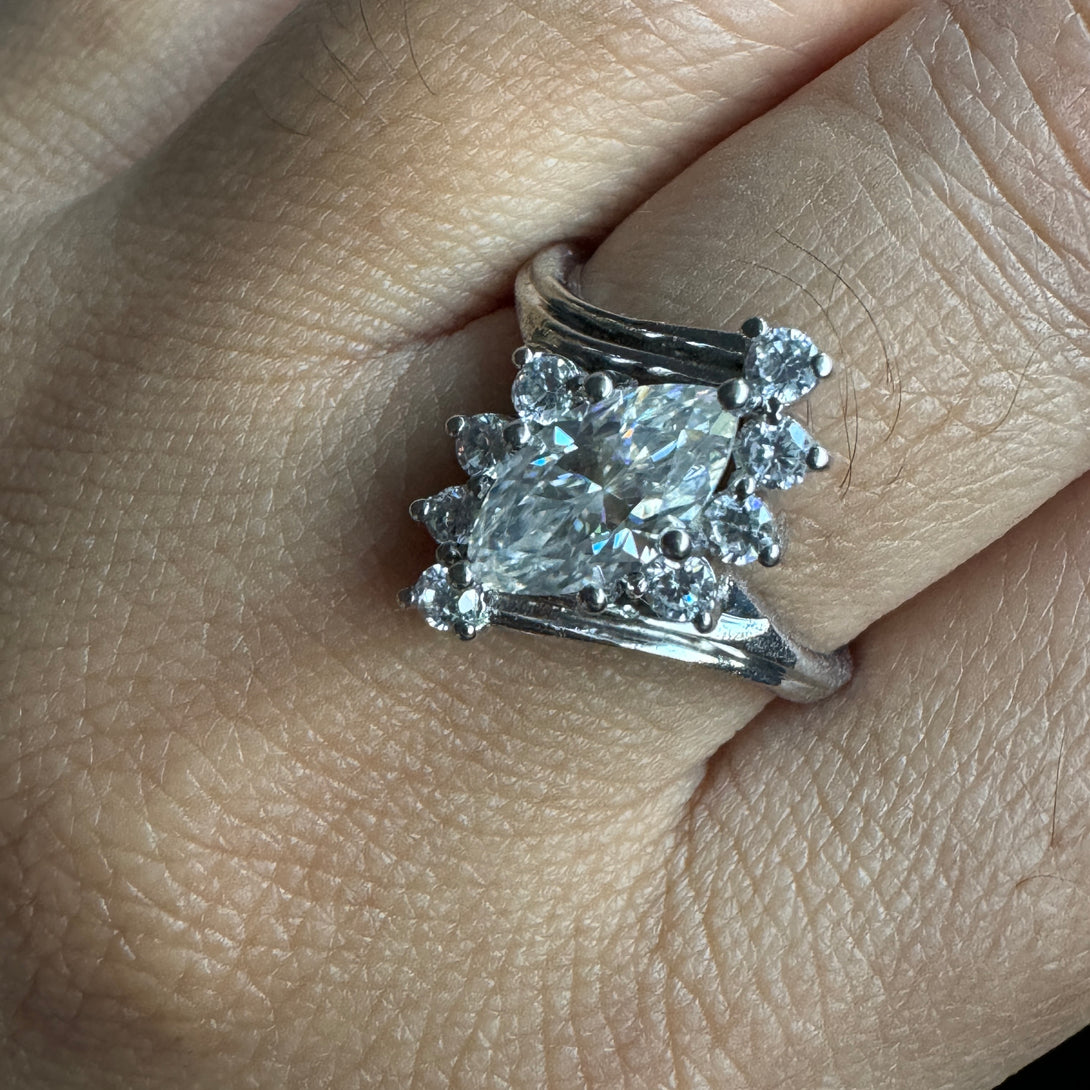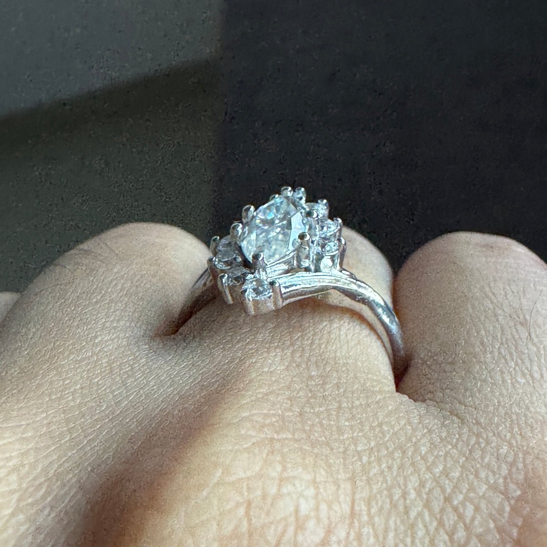 Marquise Moissanite Cluster Ring 18K Solid Gold Antique Engagement Ring