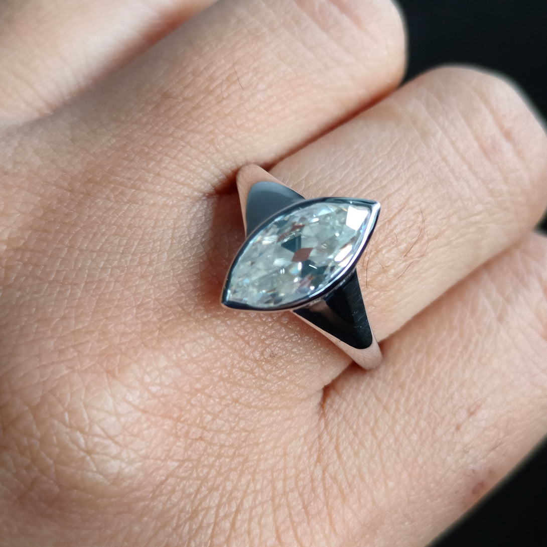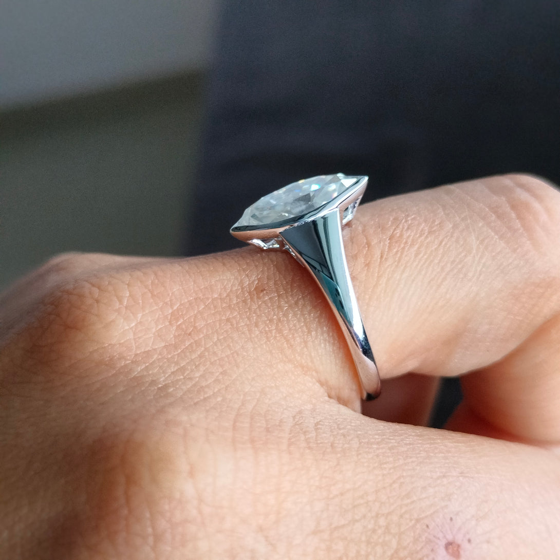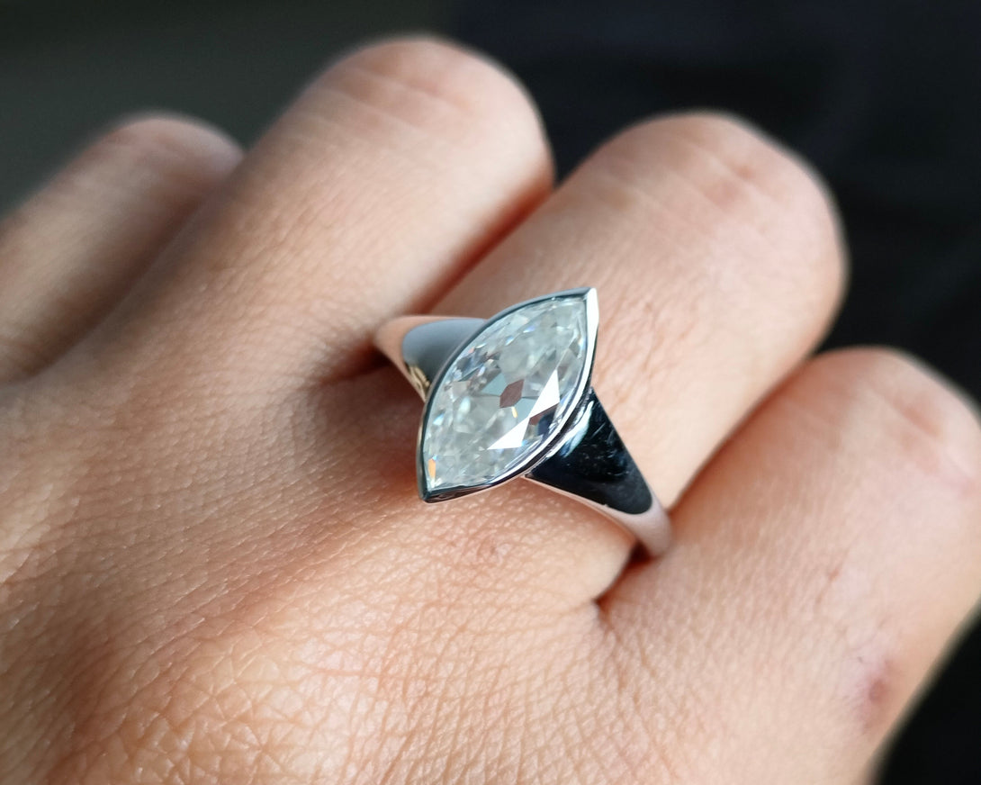 Old European Cut Marquise Moissanite Ring Solitaire Bezel Set Engagement Ring