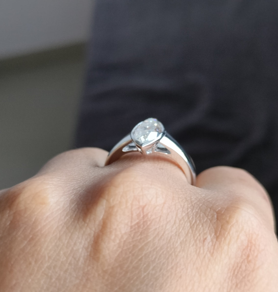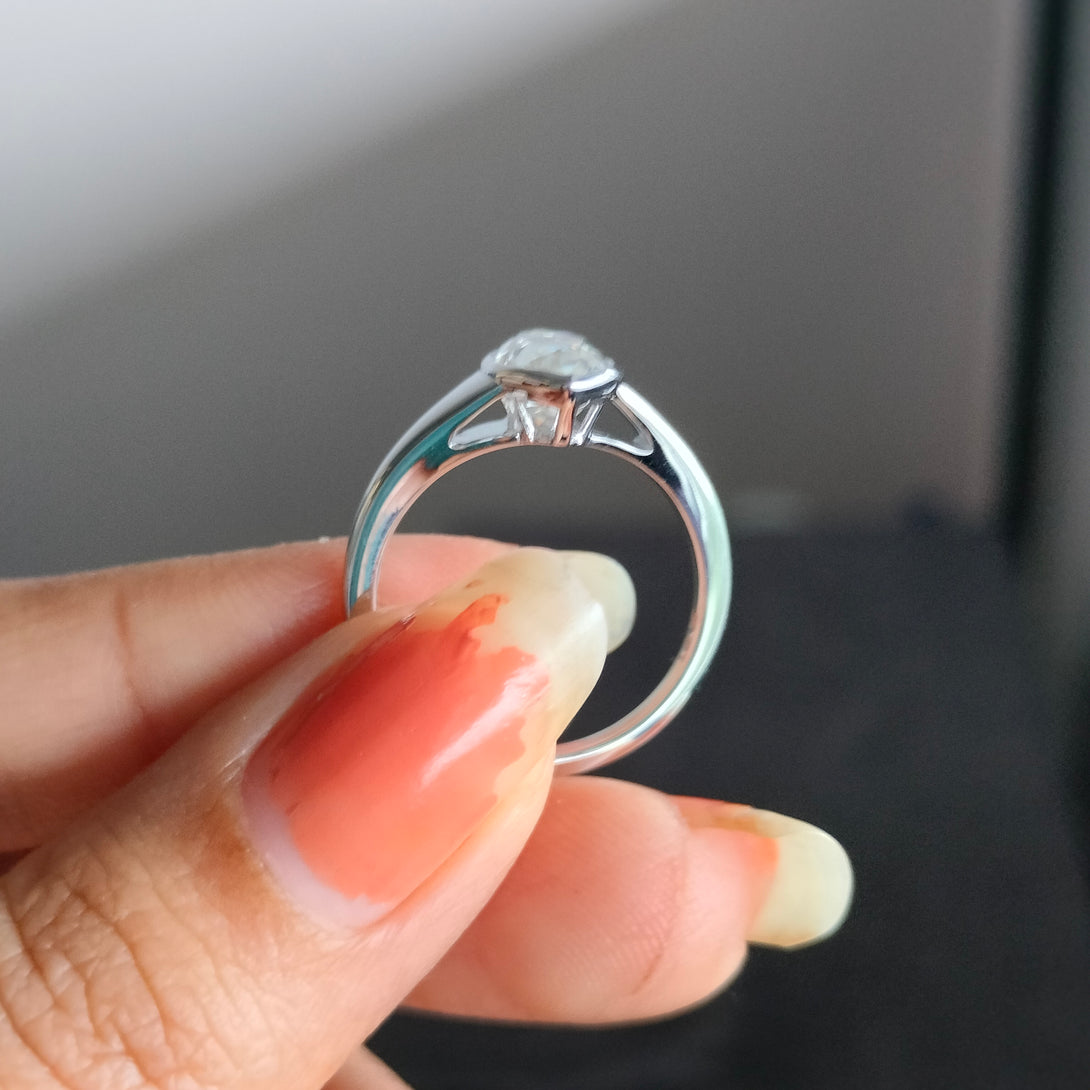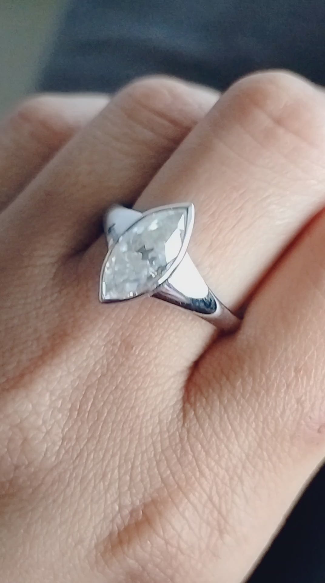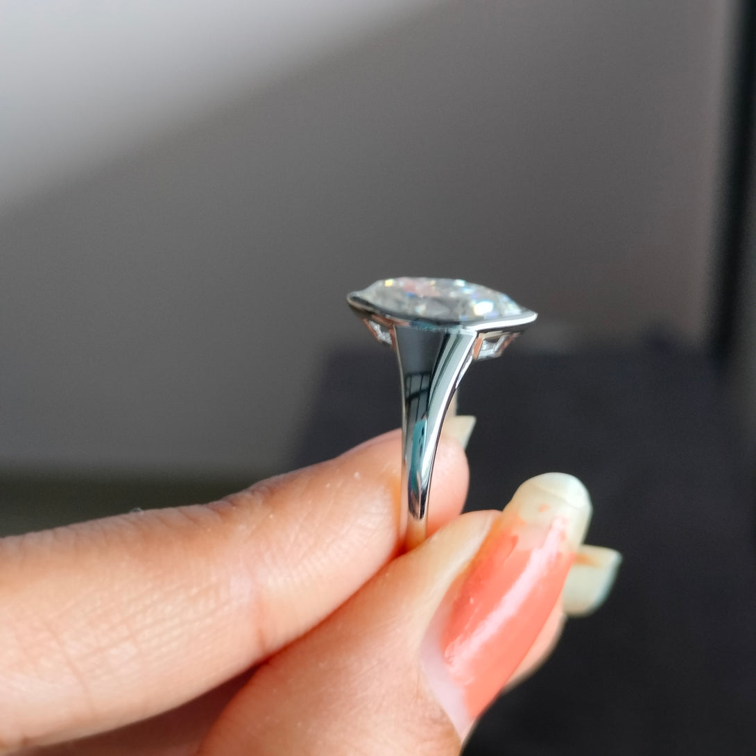 Old European Cut Marquise Moissanite Ring Solitaire Bezel Set Engagement Ring
