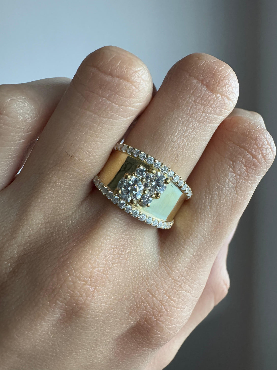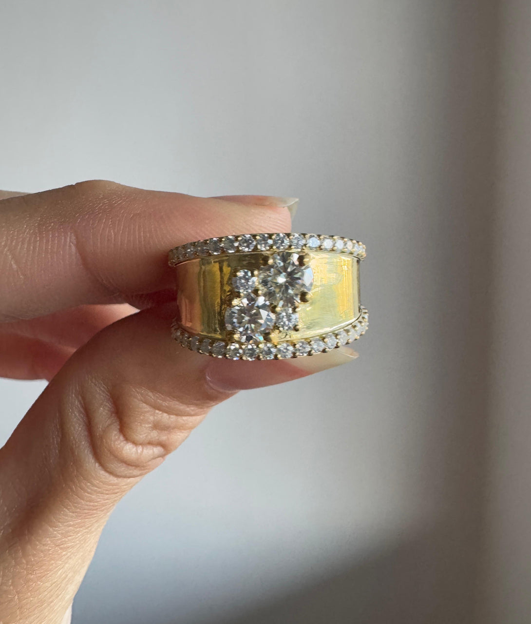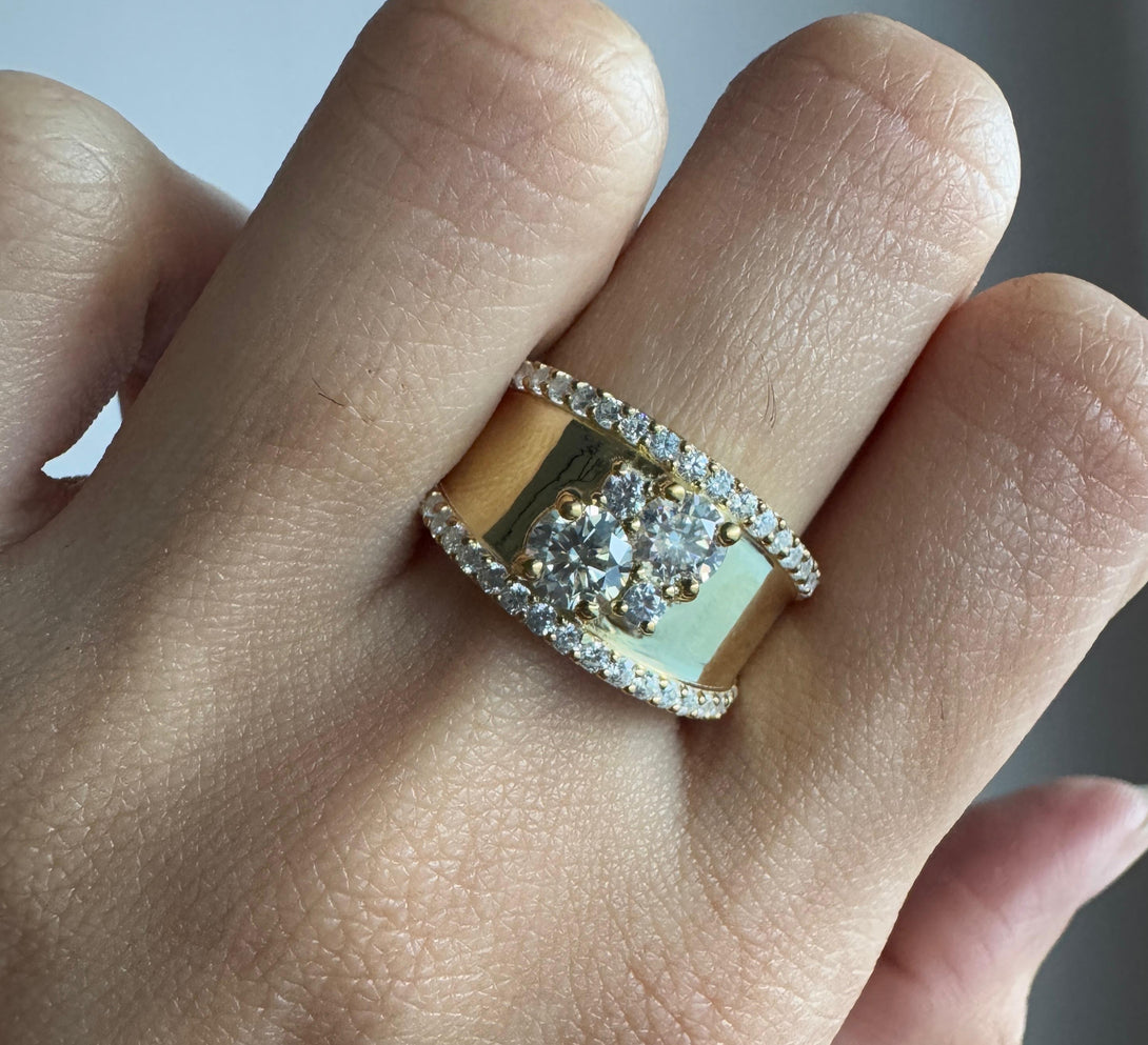 Round Cut Moissanite Diamond Engagement Ring Thick Band Wedding Ring For Her