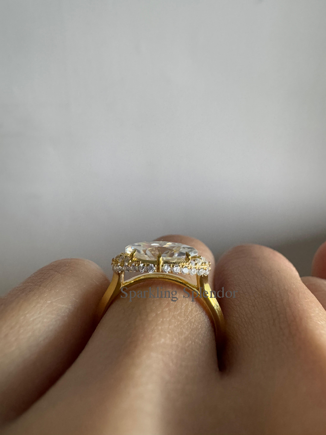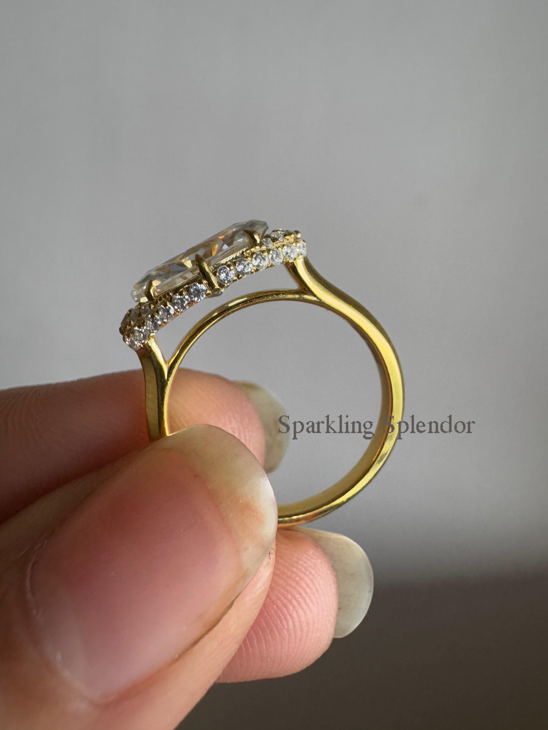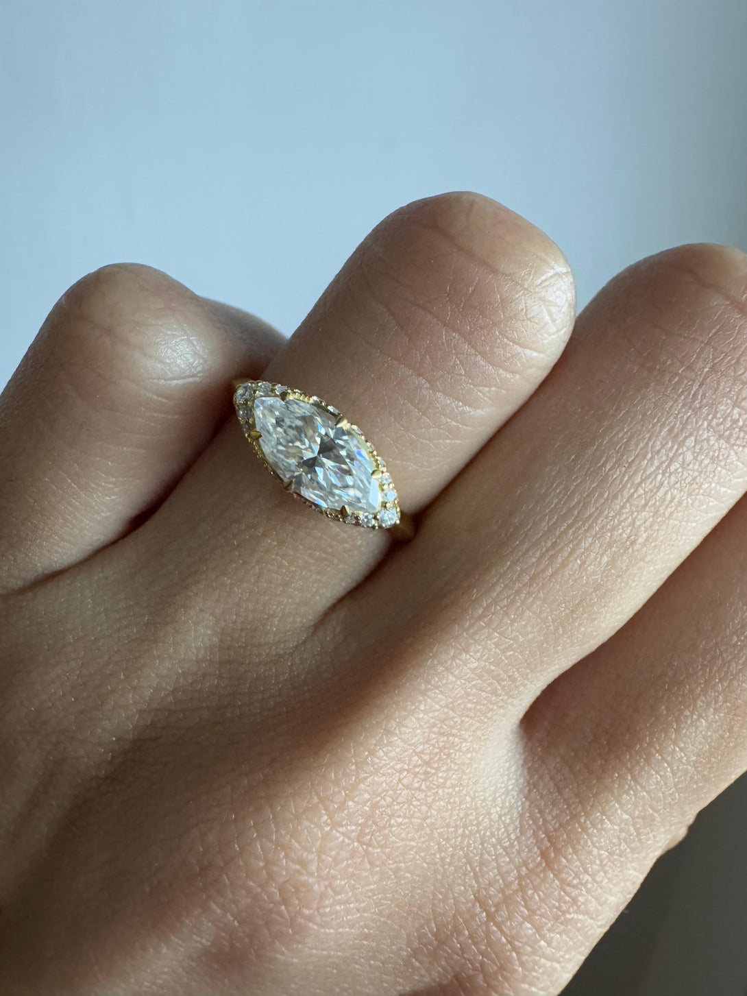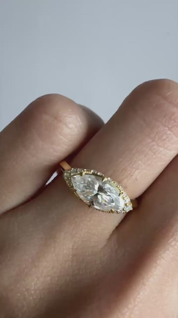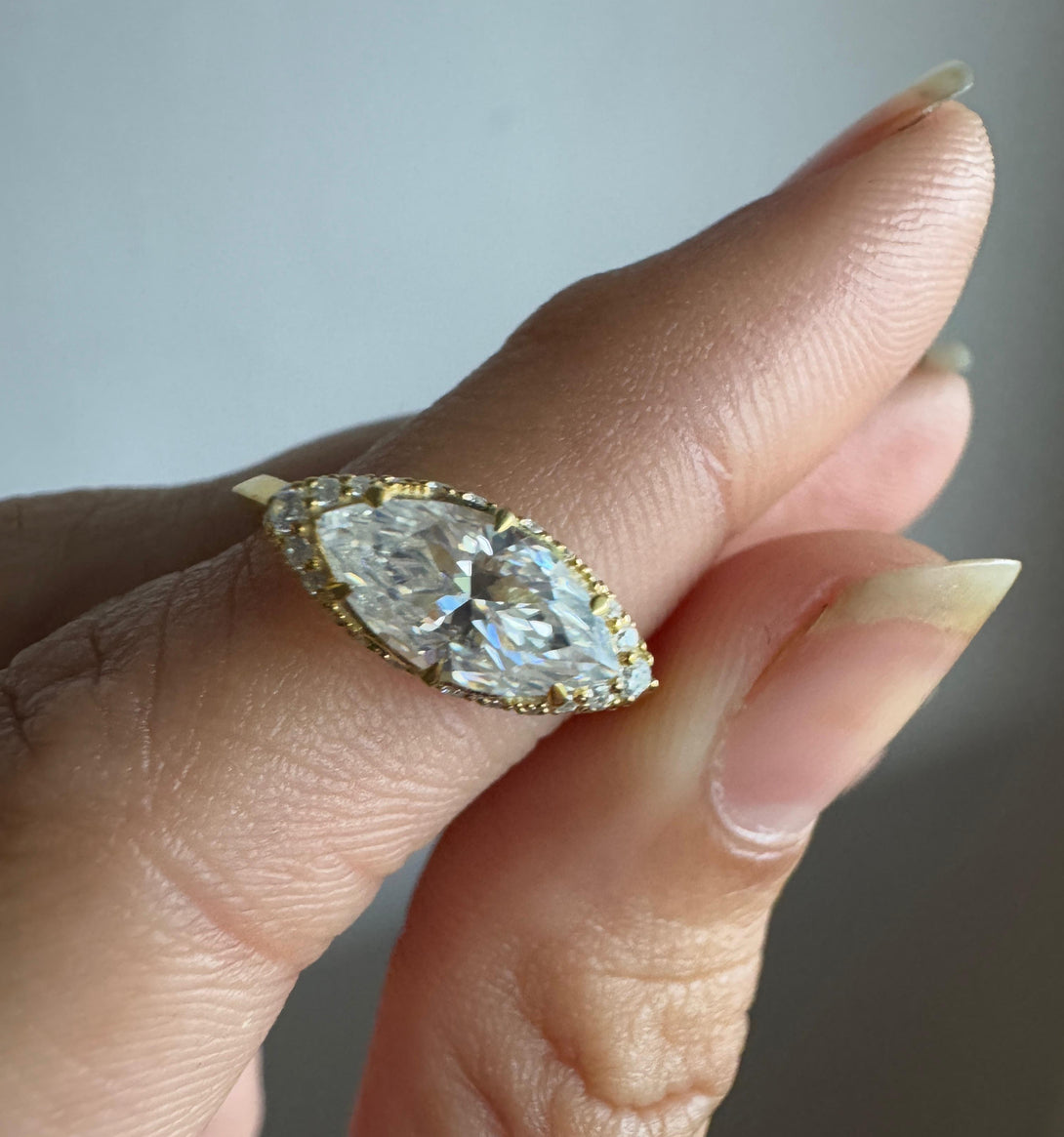 Classic East West Marquise Cut Real Moissanite Designer Engagement Ring in Gold