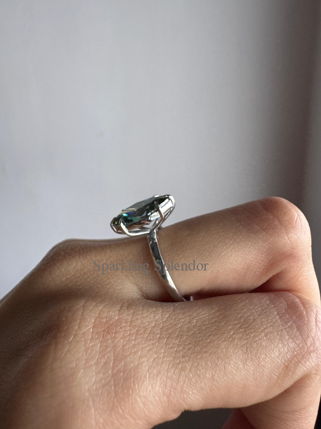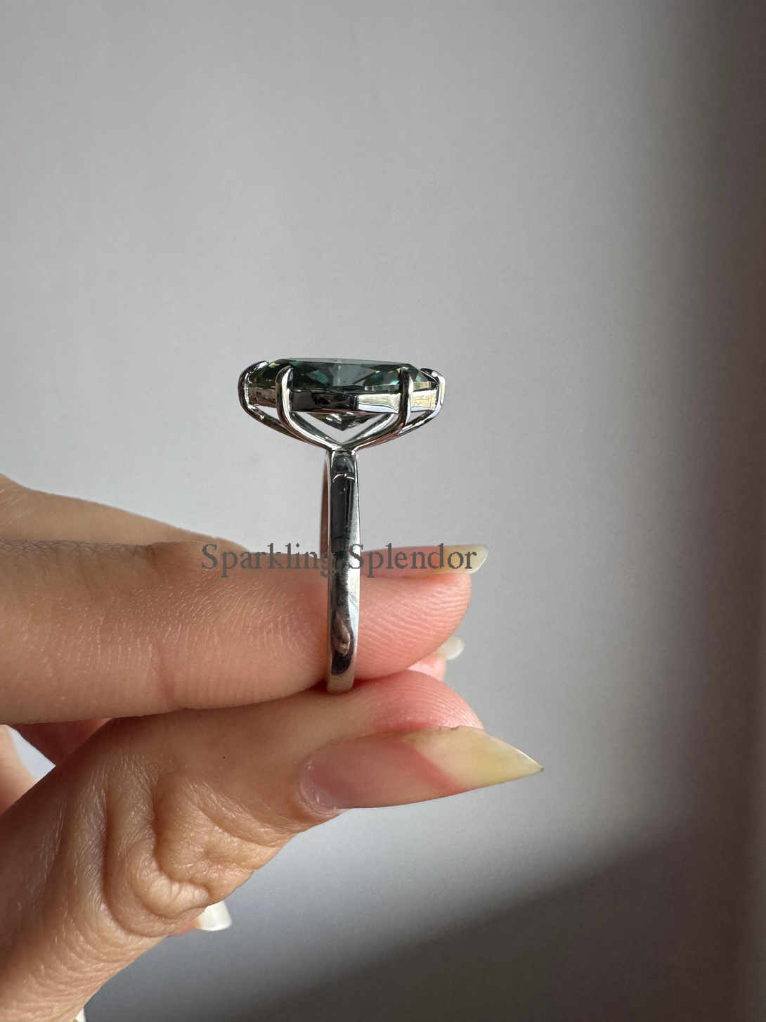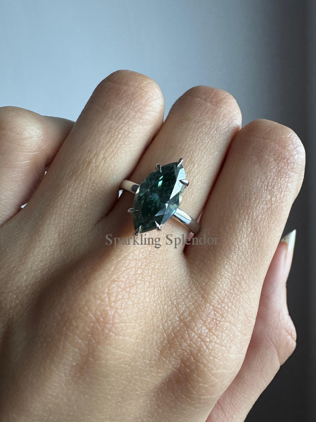Dark Green 3 Carat Marquise Cut Solitaire Ring Real Moissanite Engagement Ring Her