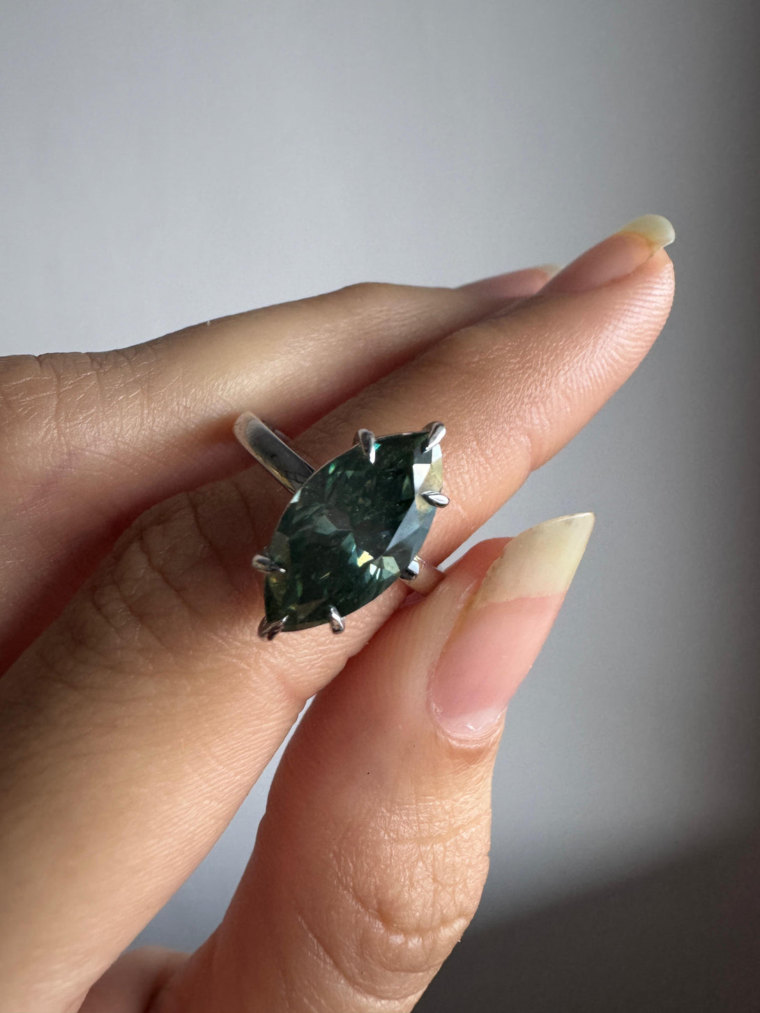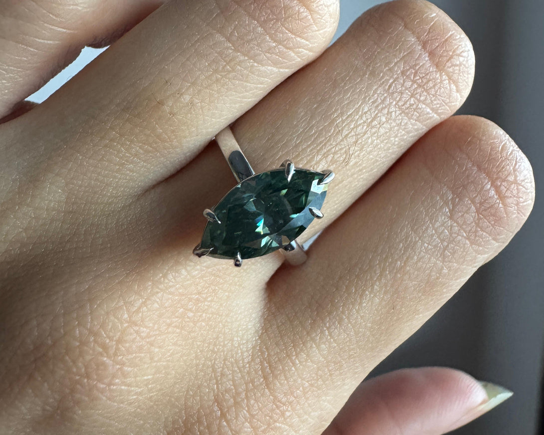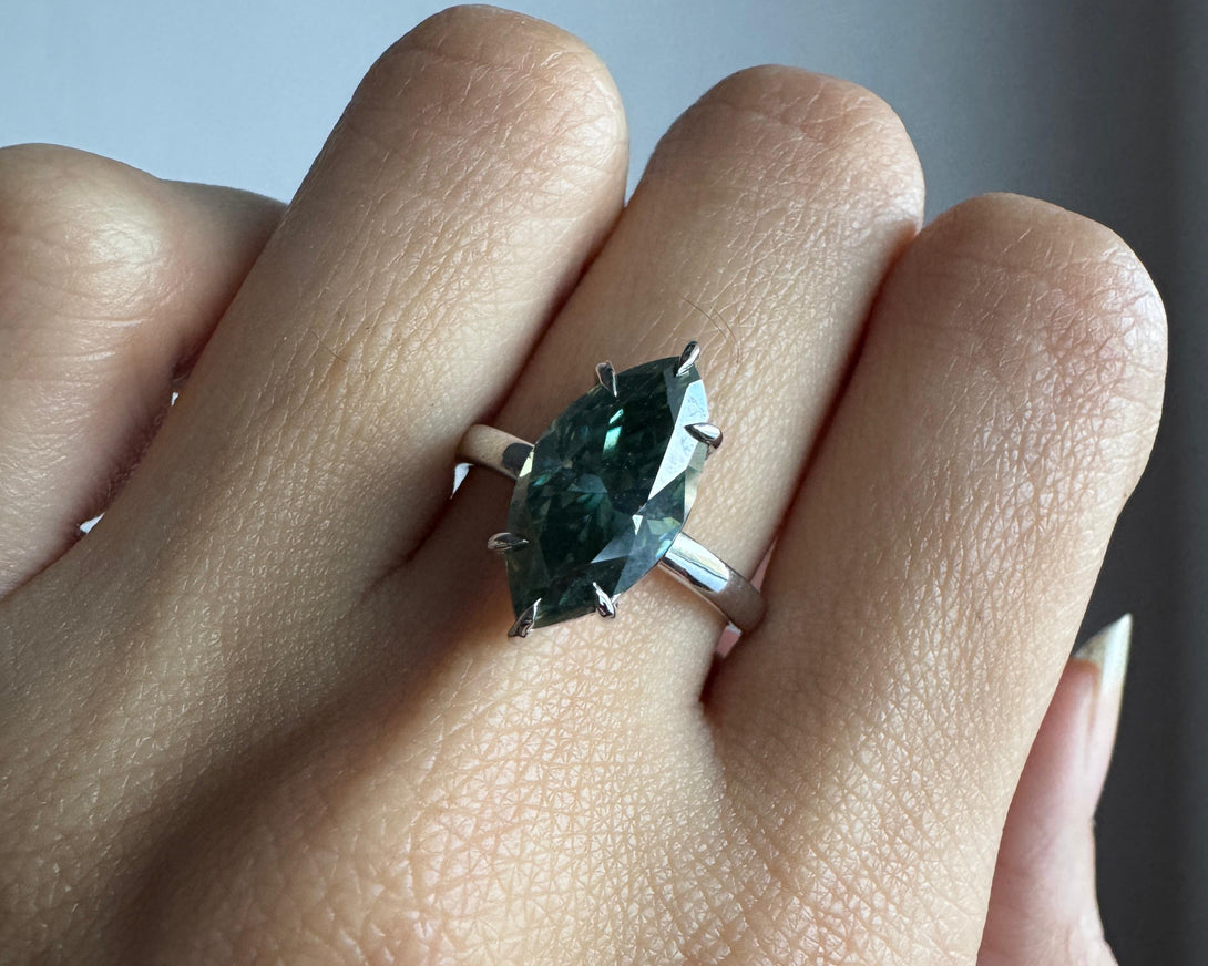 Dark Green 3 Carat Marquise Cut Solitaire Ring Real Moissanite Engagement Ring Her