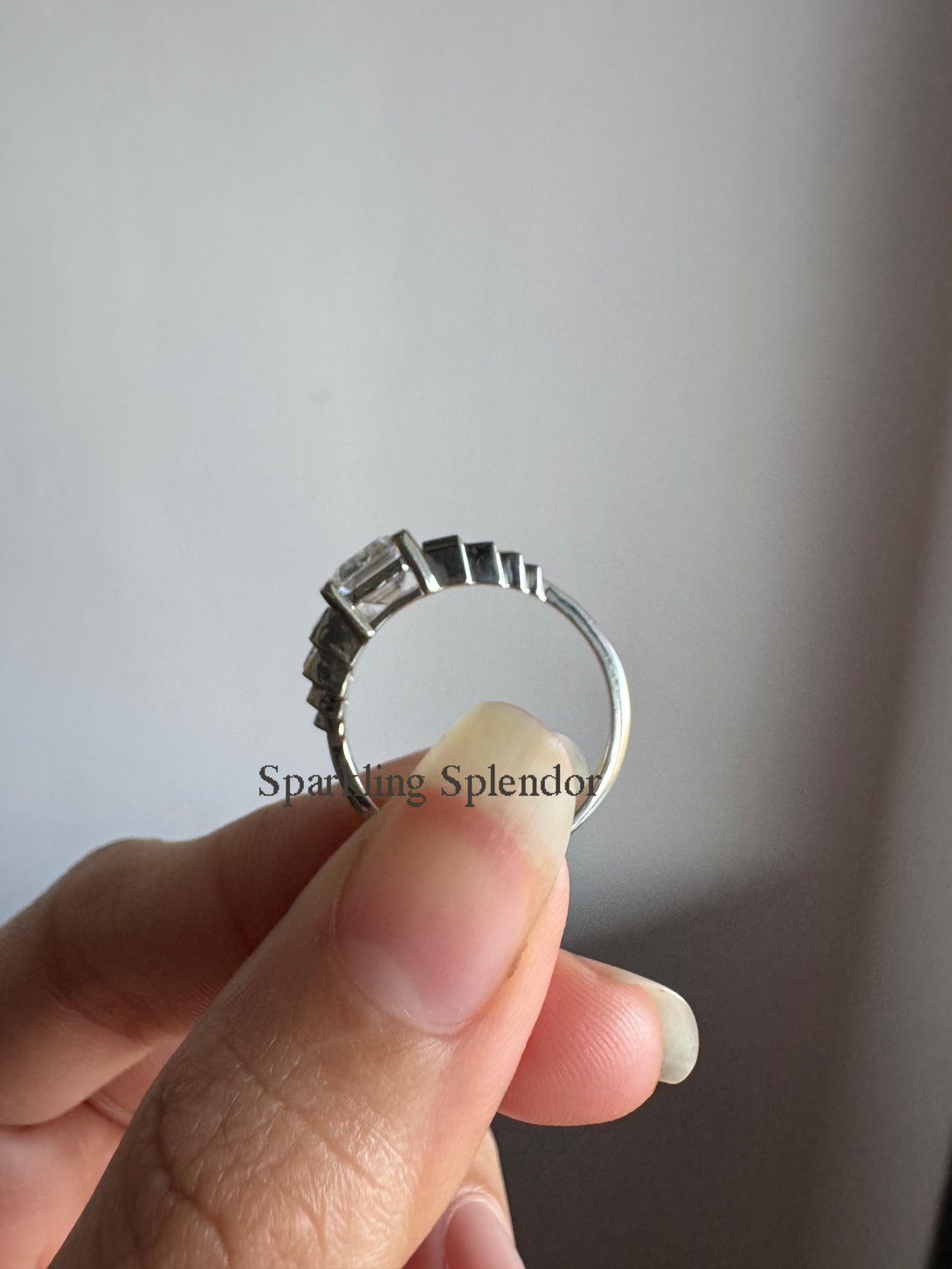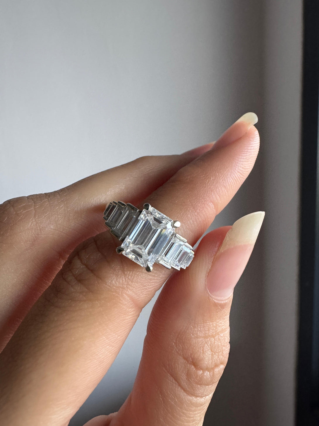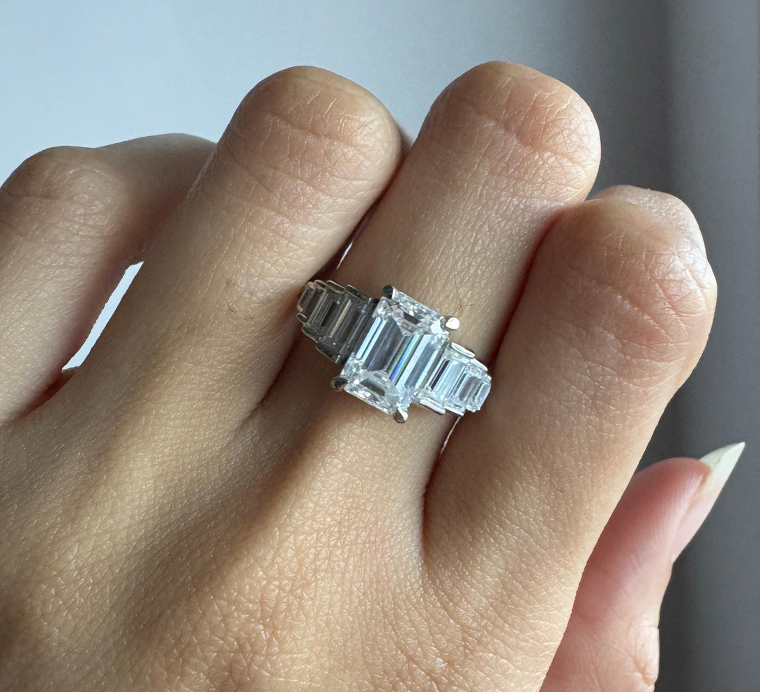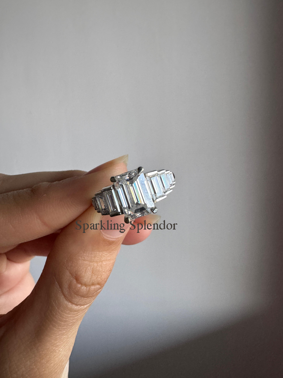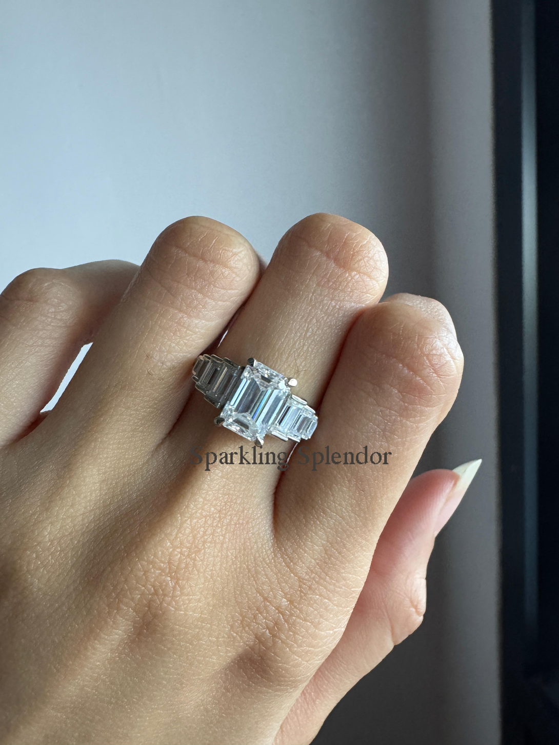 Emerald Cut Moissanite Solitaire With Baguette Accents Engagement Ring For Women