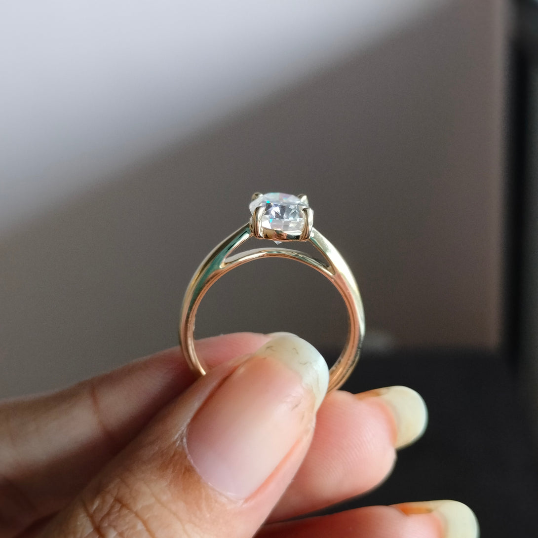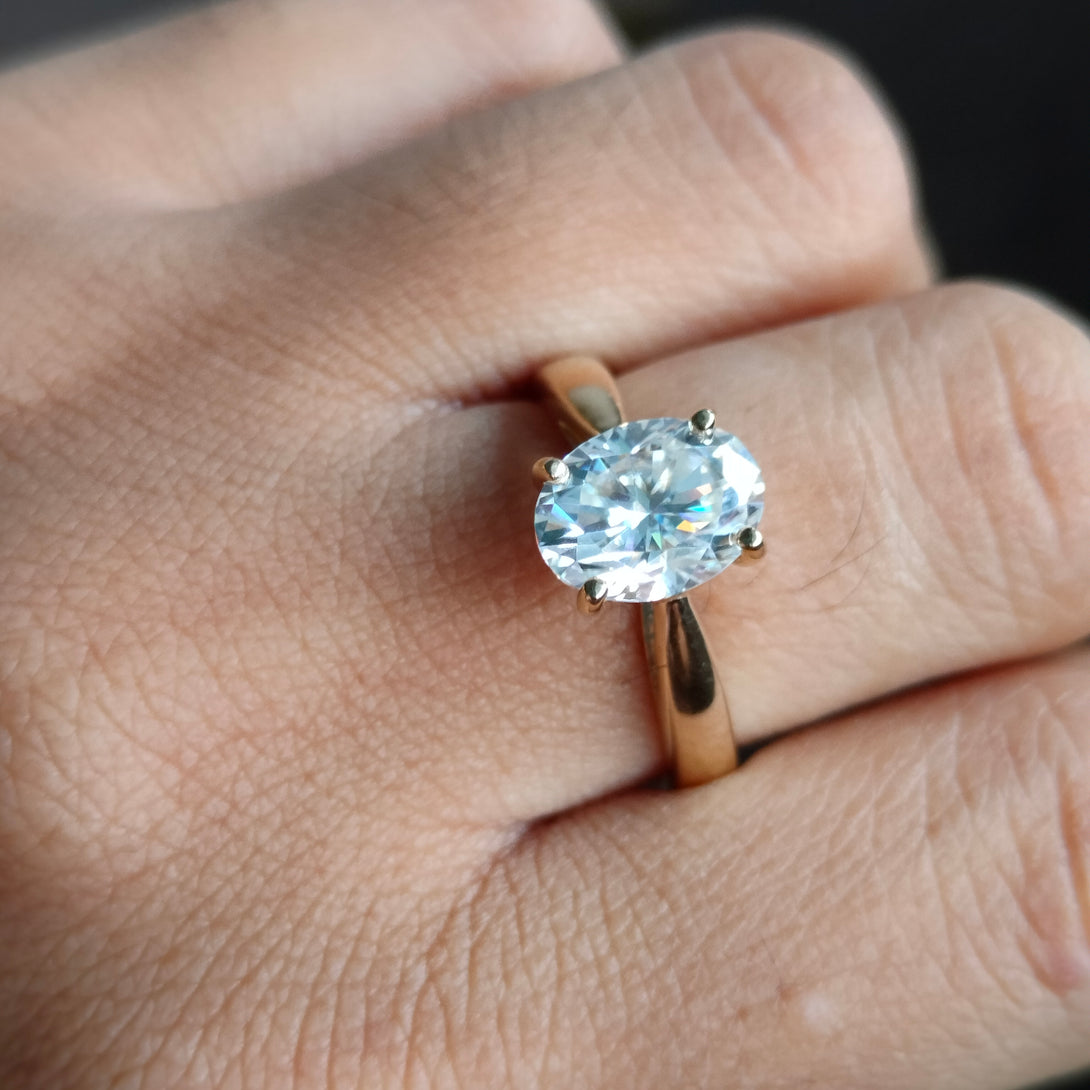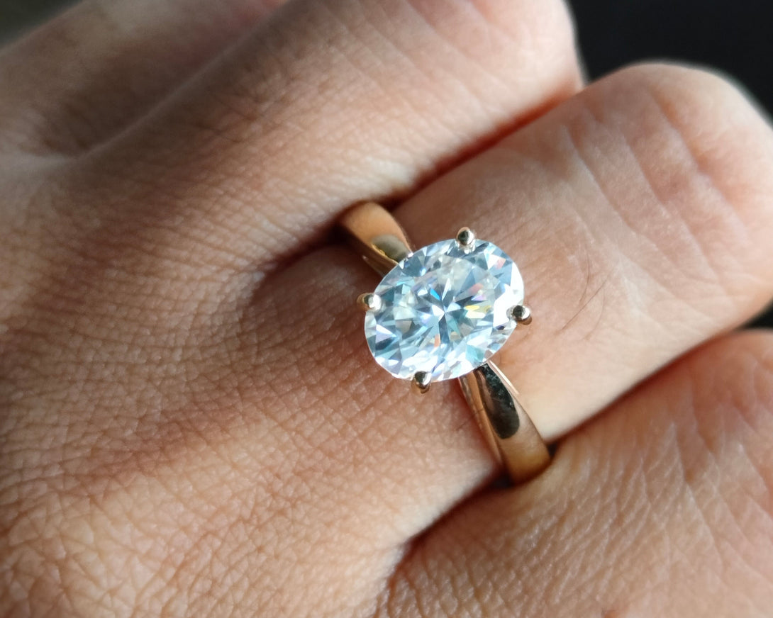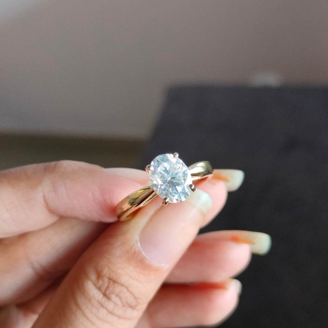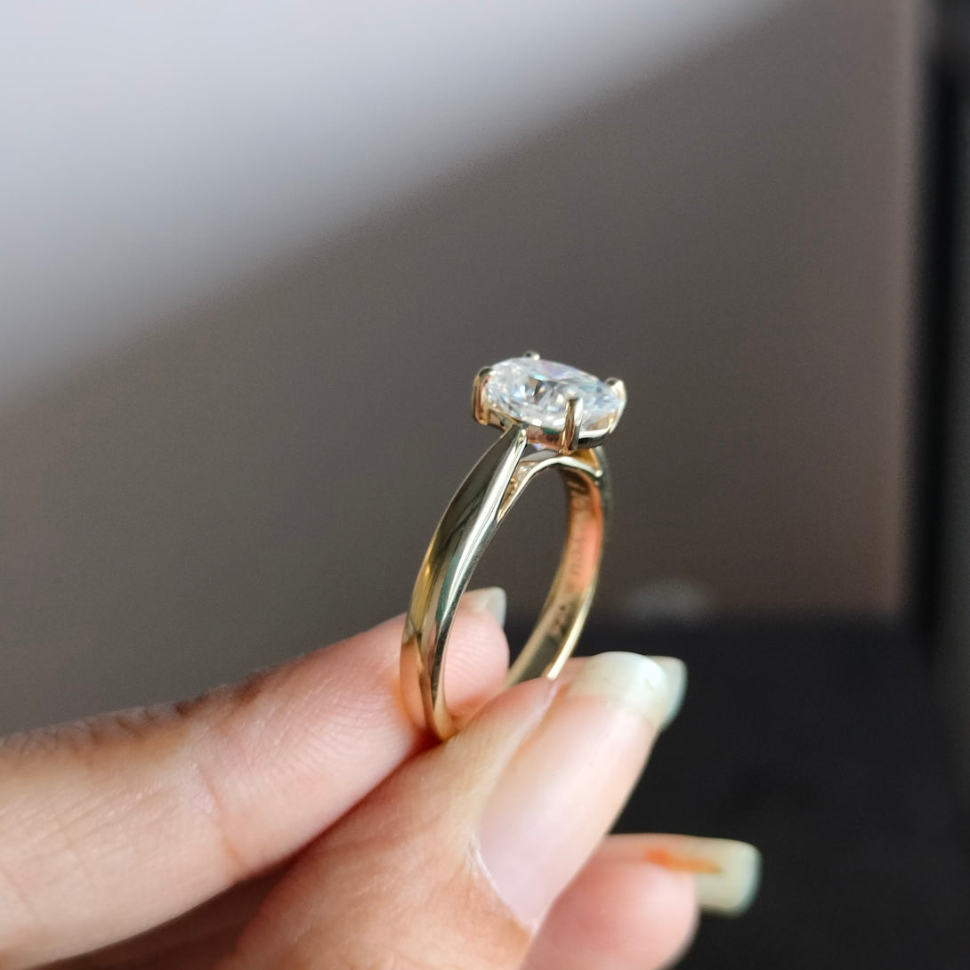 Solitaire Oval Promise Ring 1.50 CTW Moissanite Engagement Ring in 18K Gold