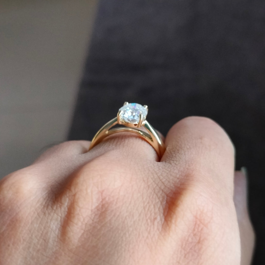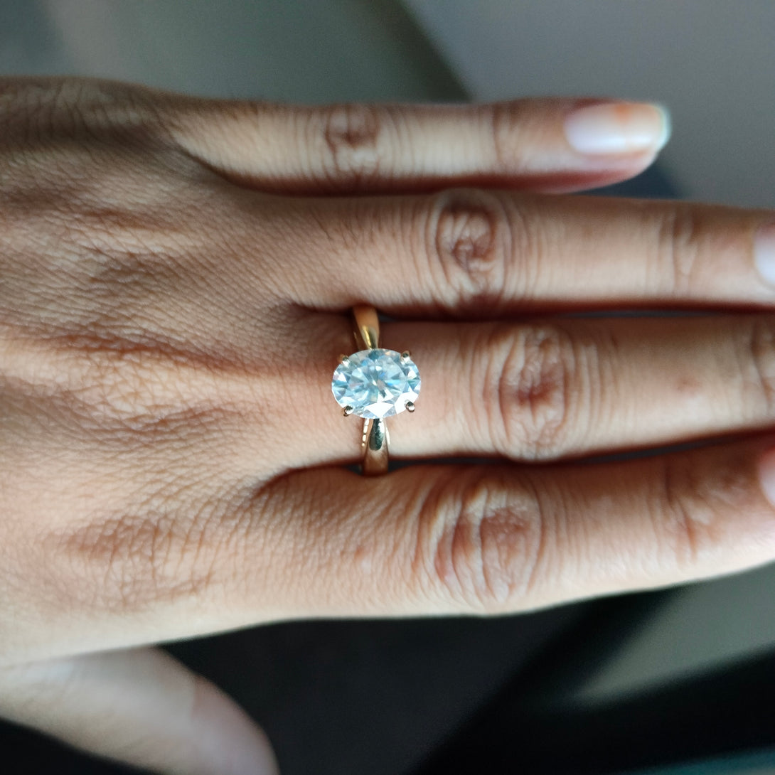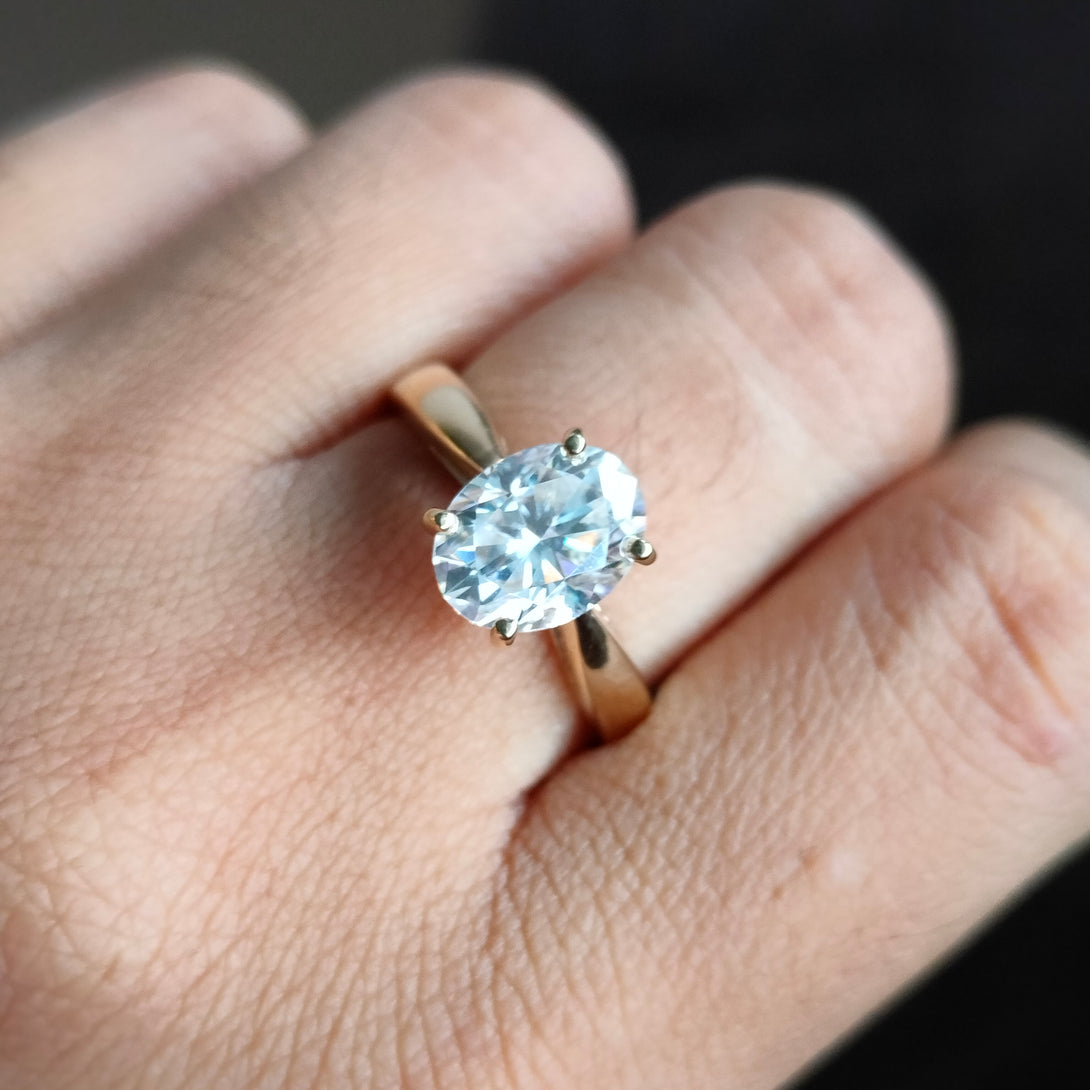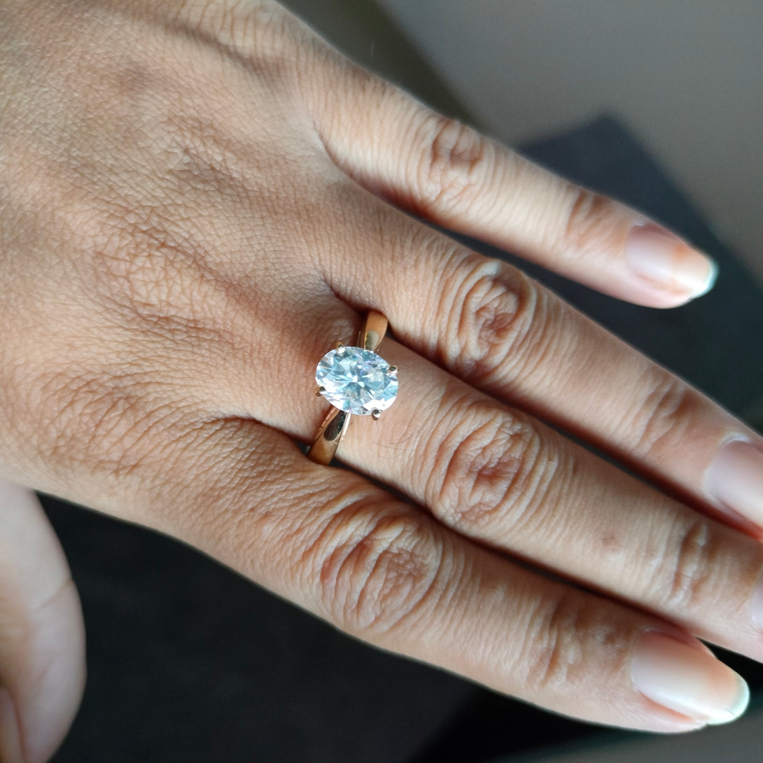 Solitaire Oval Promise Ring 1.50 CTW Moissanite Engagement Ring in 18K Gold