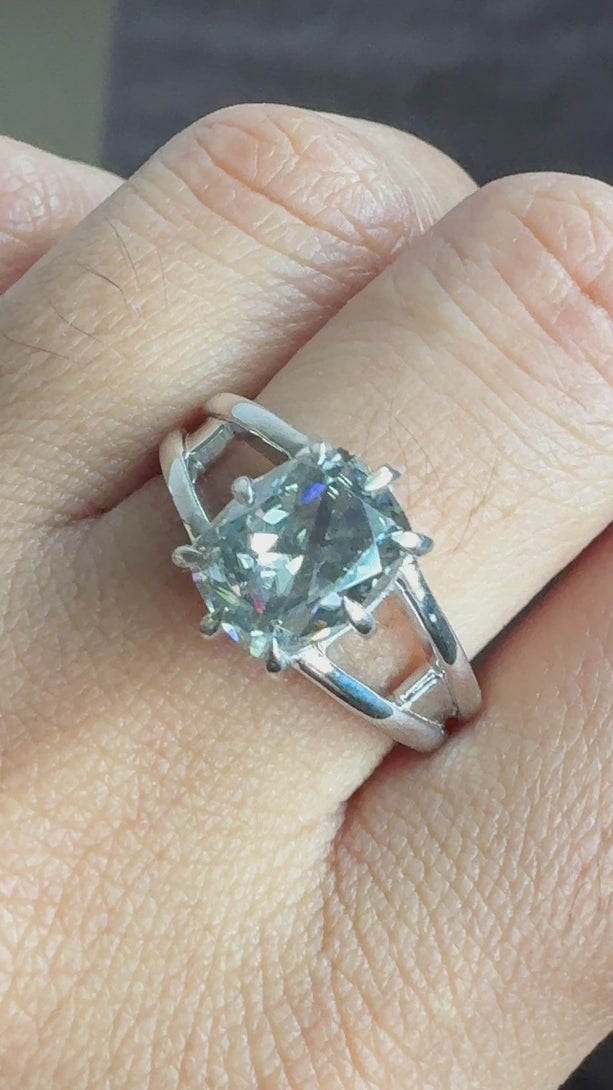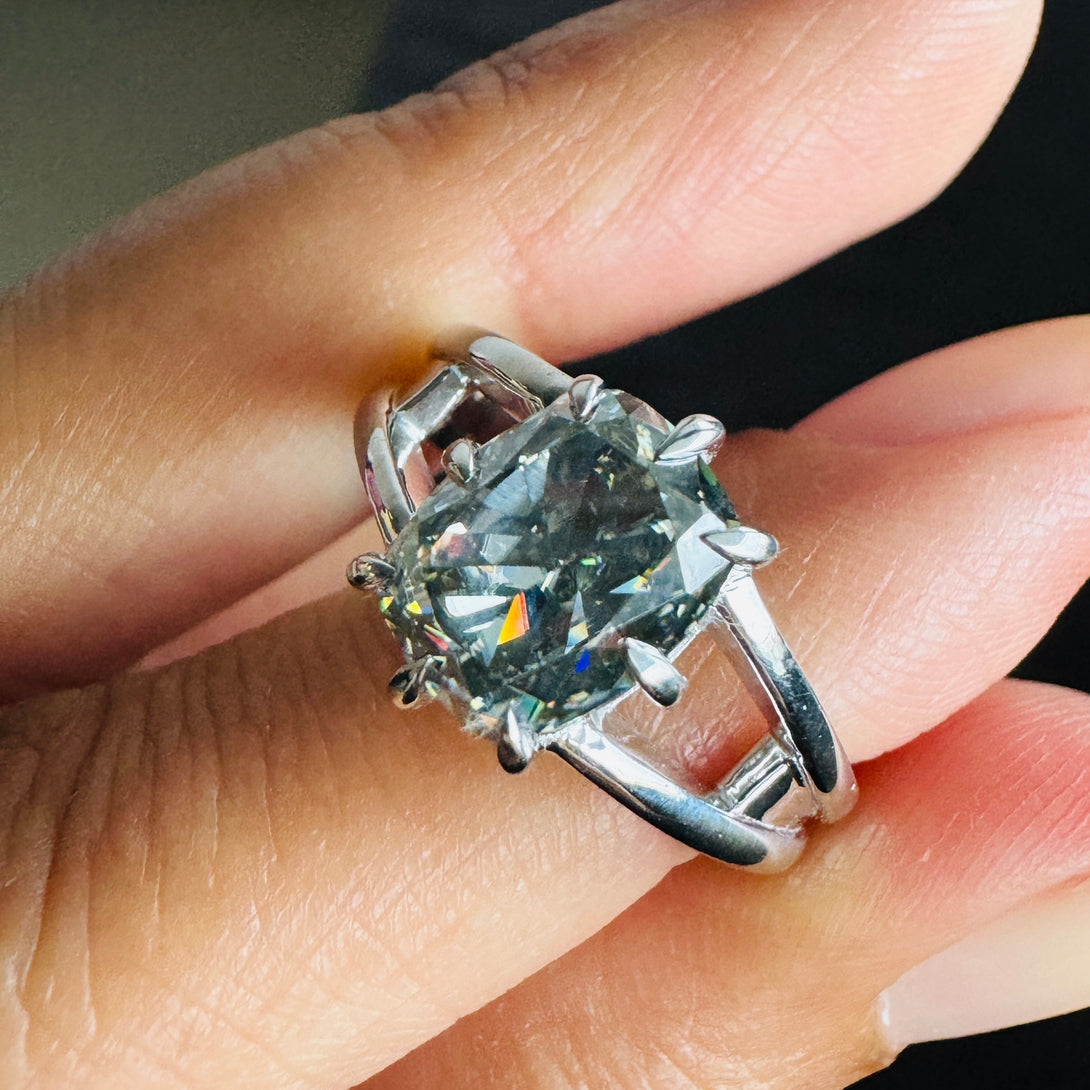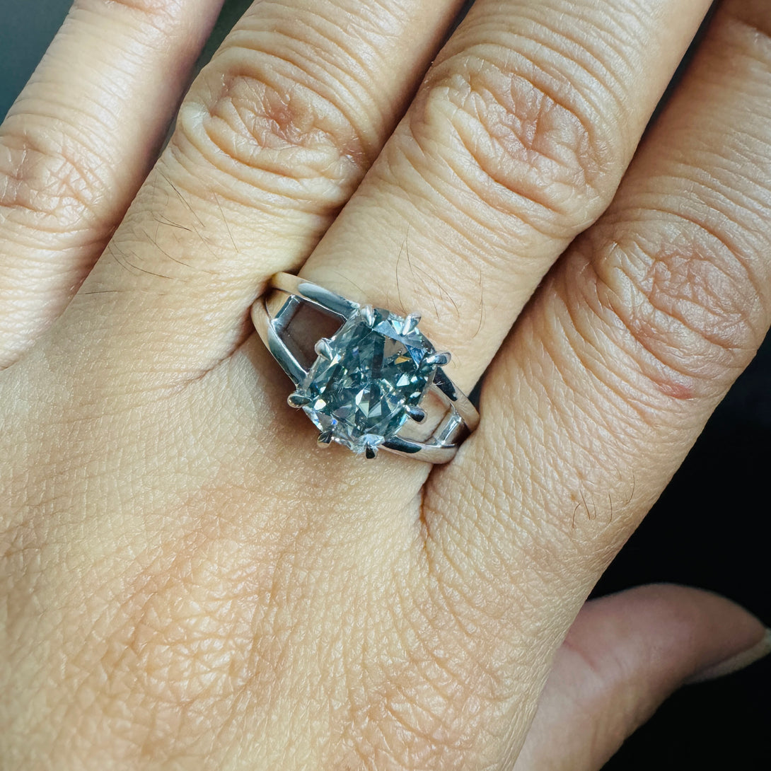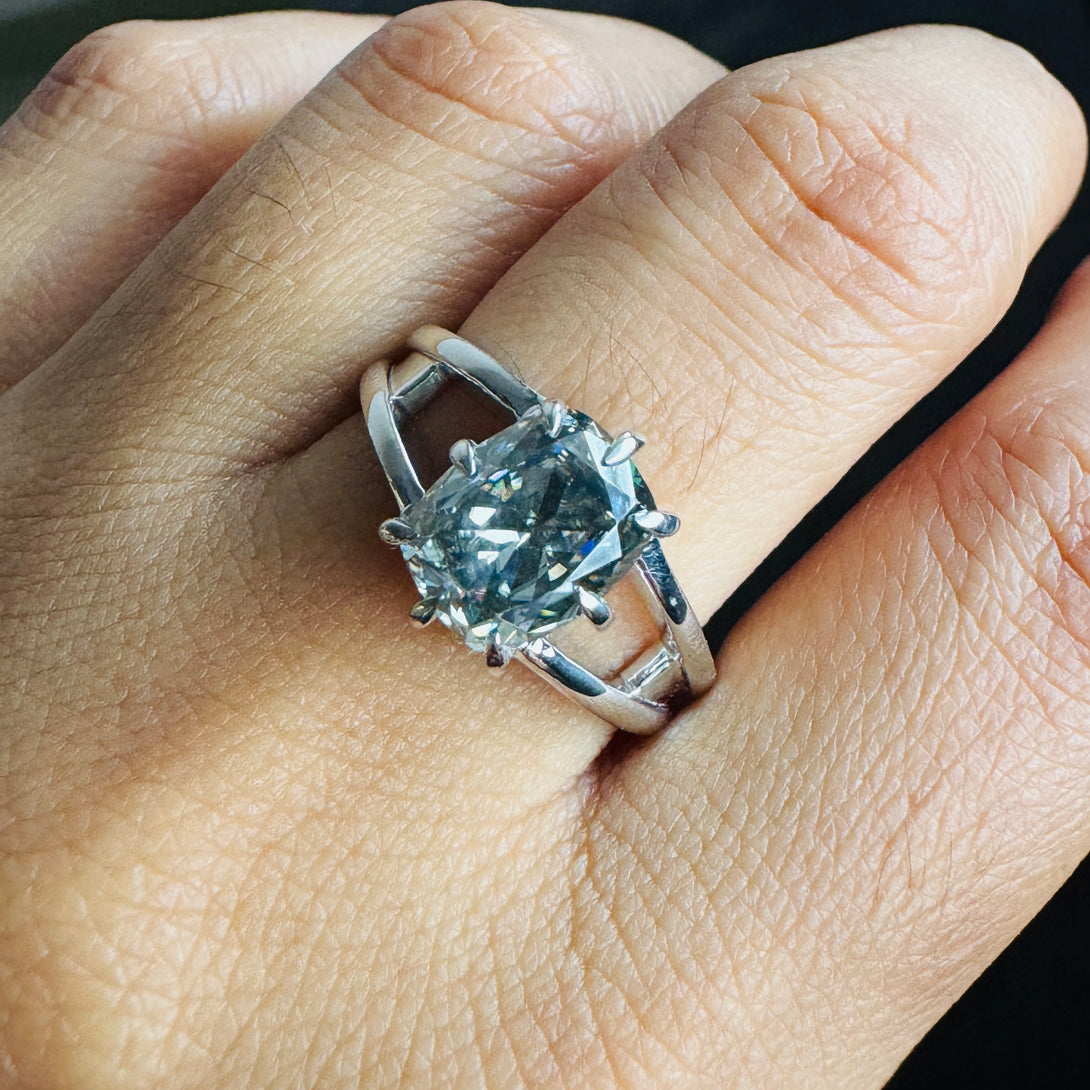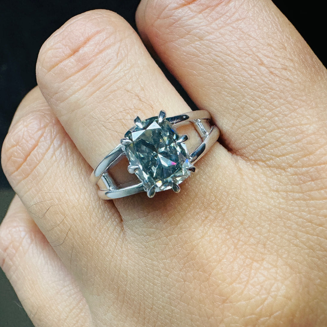 Gray Elongated Cushion Moissanite Double Band Solitaire Engagement Ring