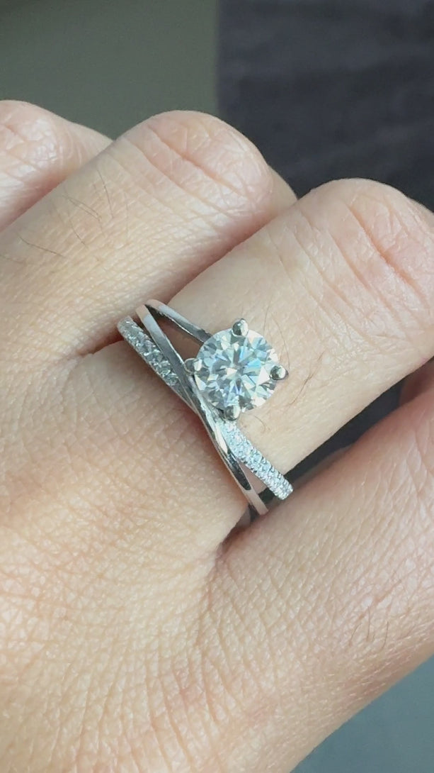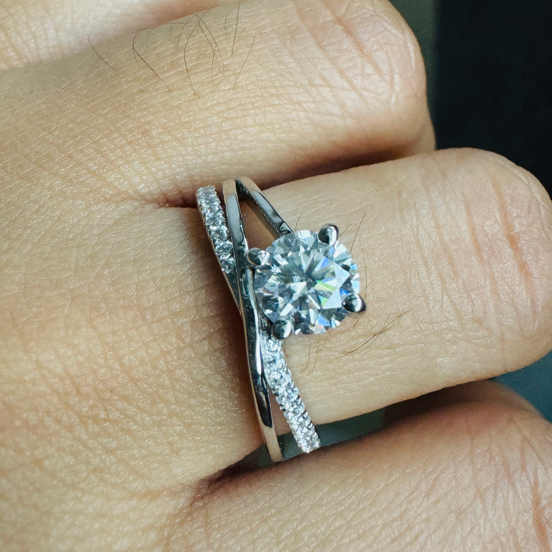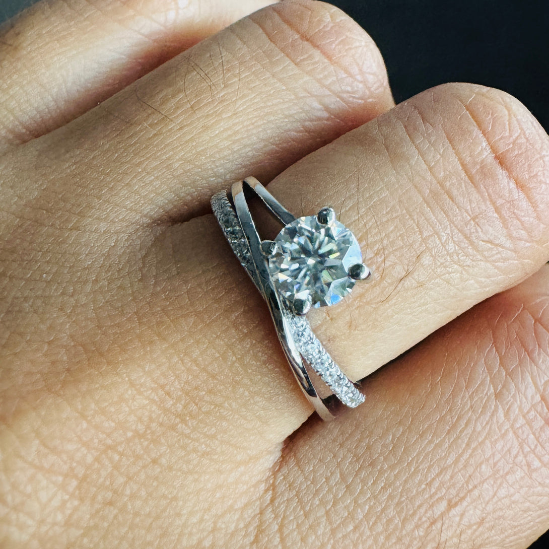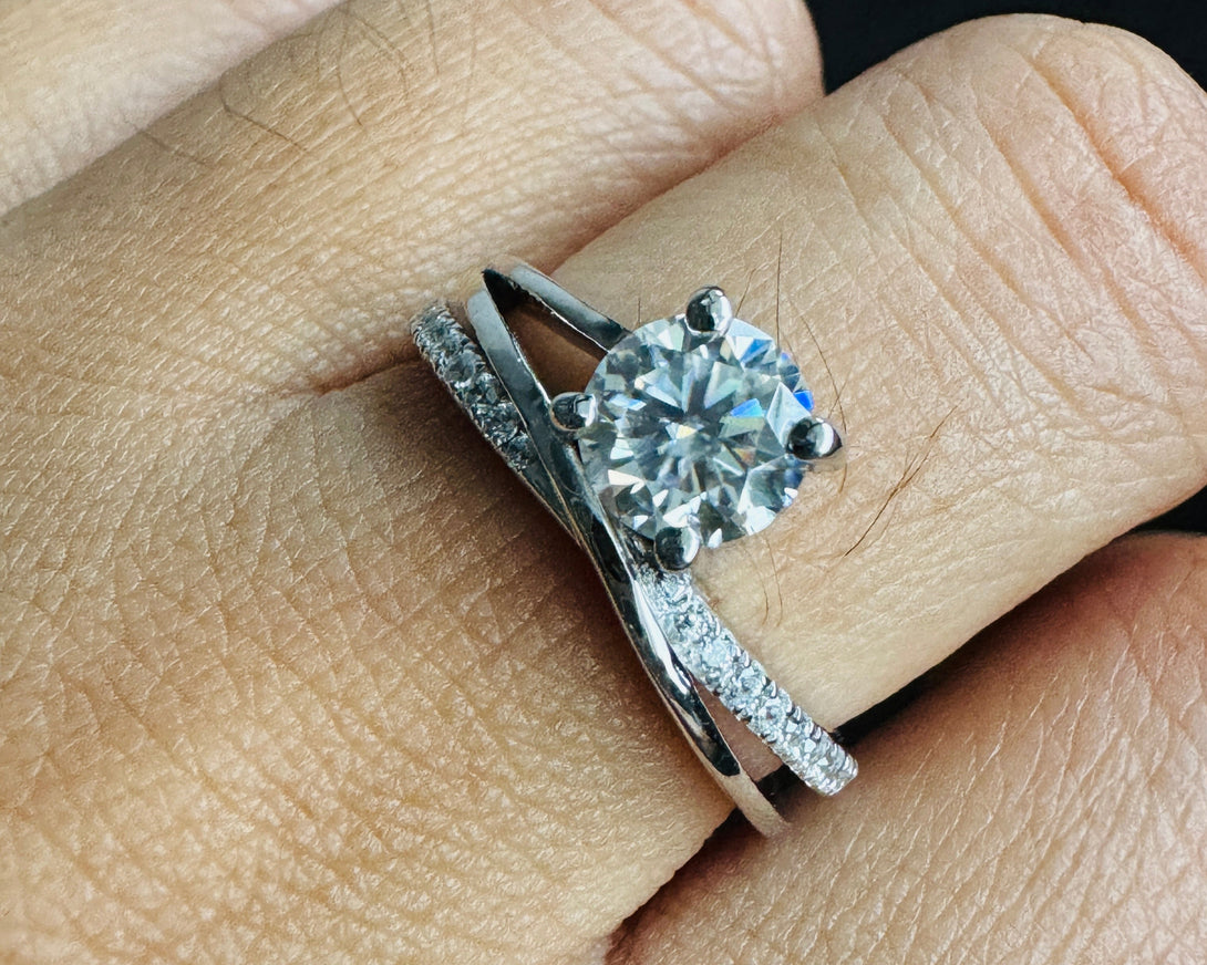 Round Brilliant Cut Moissanite Unique Designer Engagement Ring in 18K Gold