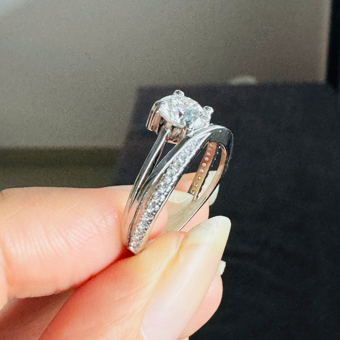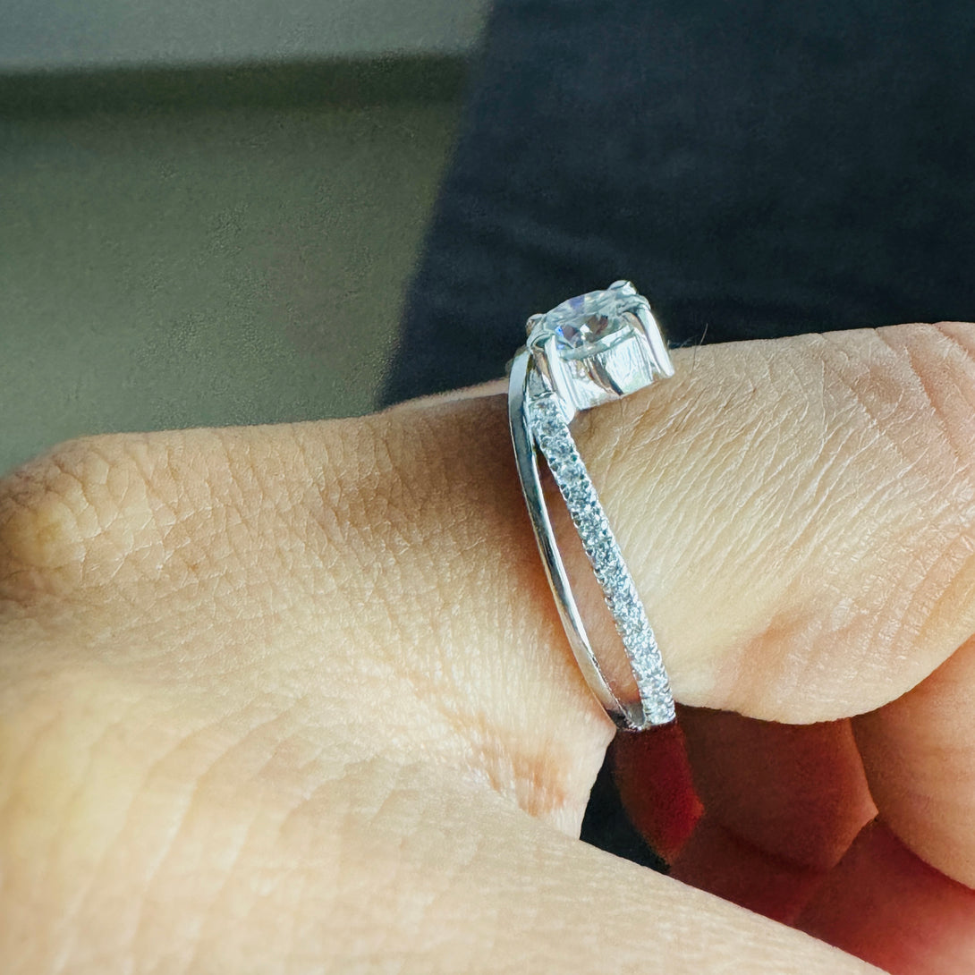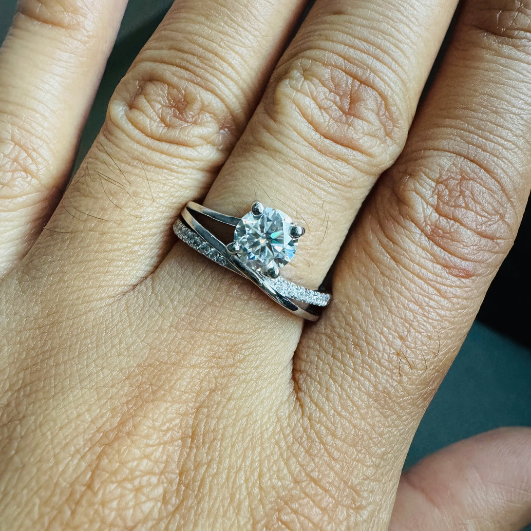 Round Brilliant Cut Moissanite Unique Designer Engagement Ring in 18K Gold