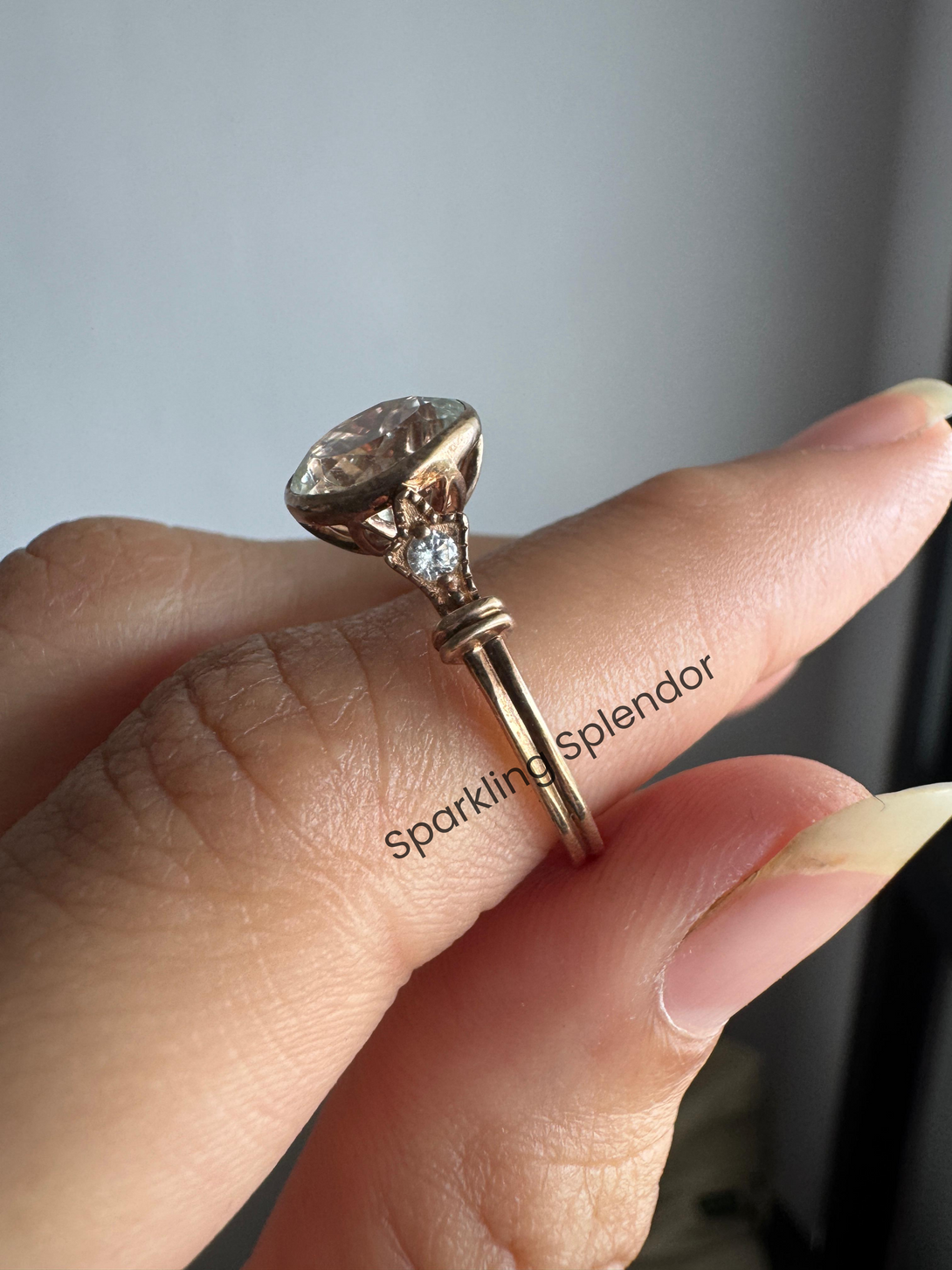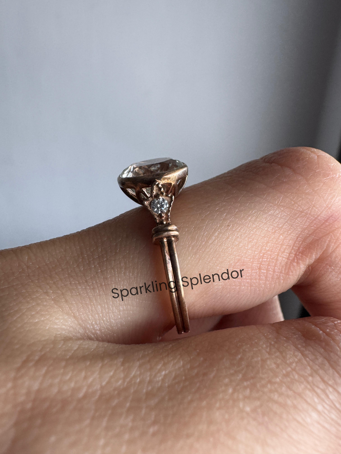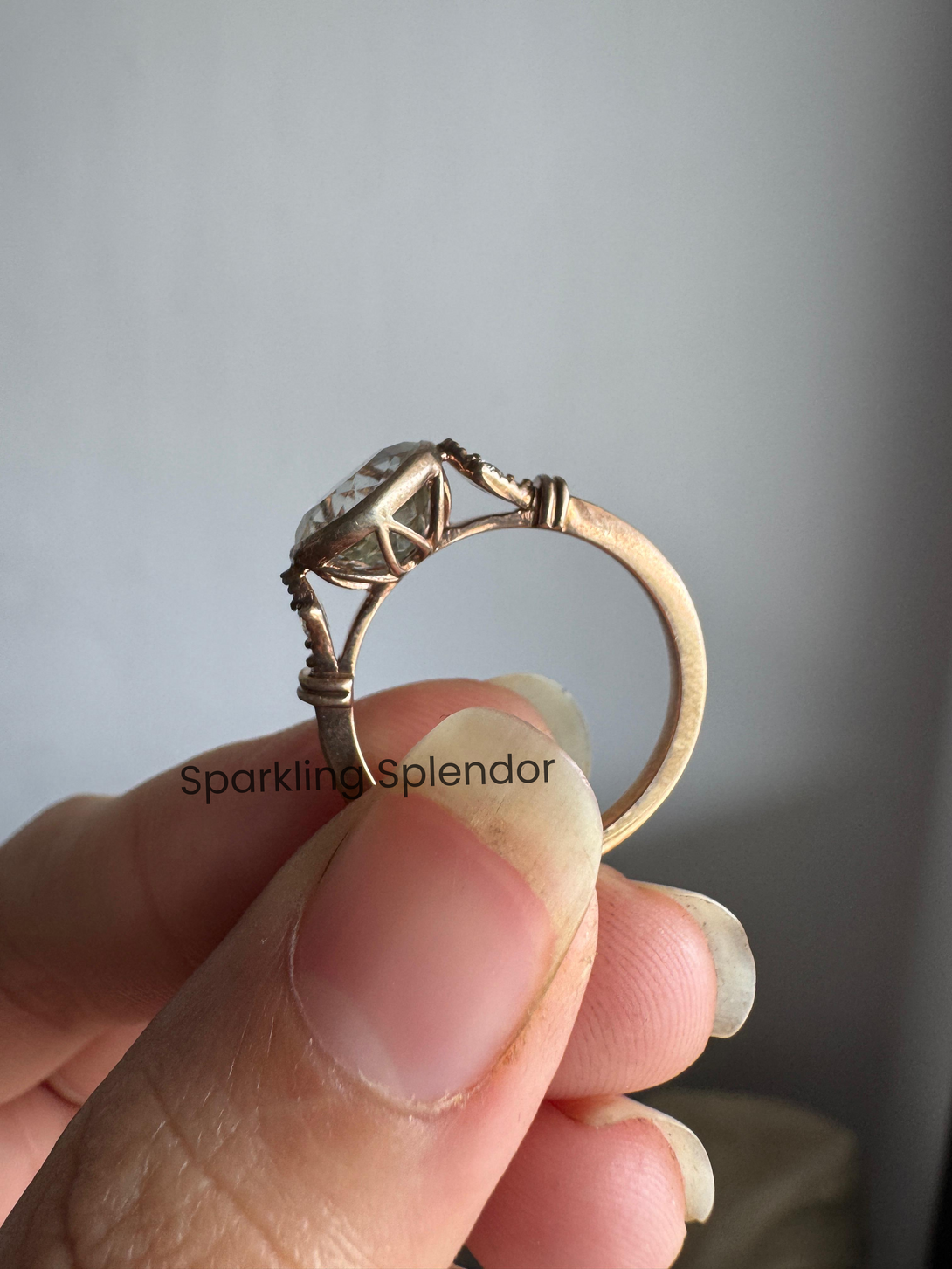 Vintage Round Rose Cut CZ Diamond Engagement Ring Antique 3 Stone Ring Her