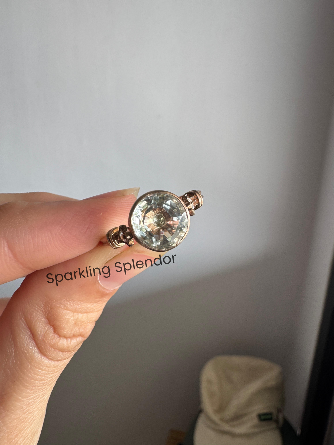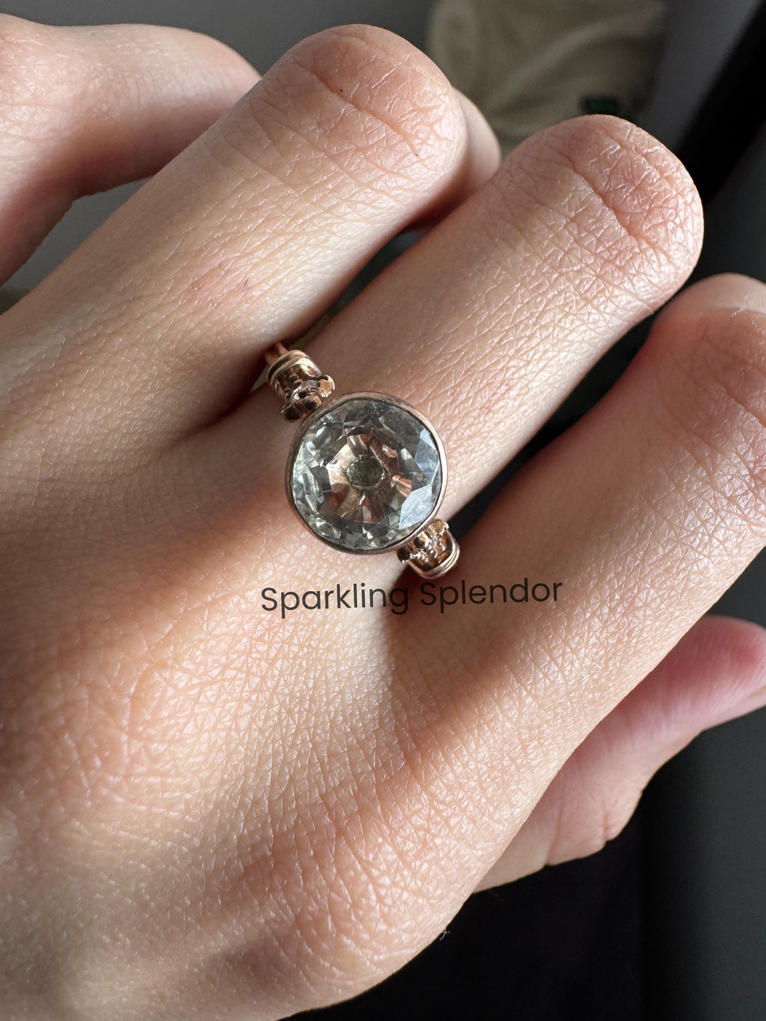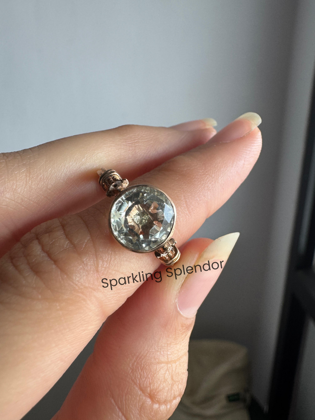 Vintage Round Rose Cut CZ Diamond Engagement Ring Antique 3 Stone Ring Her