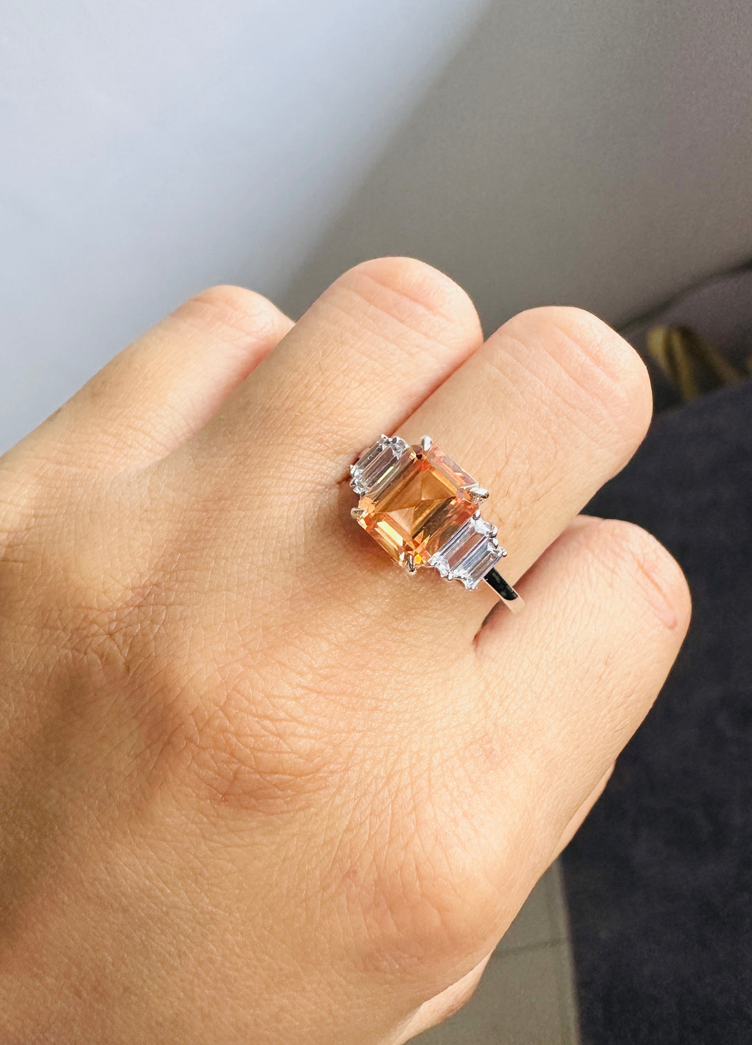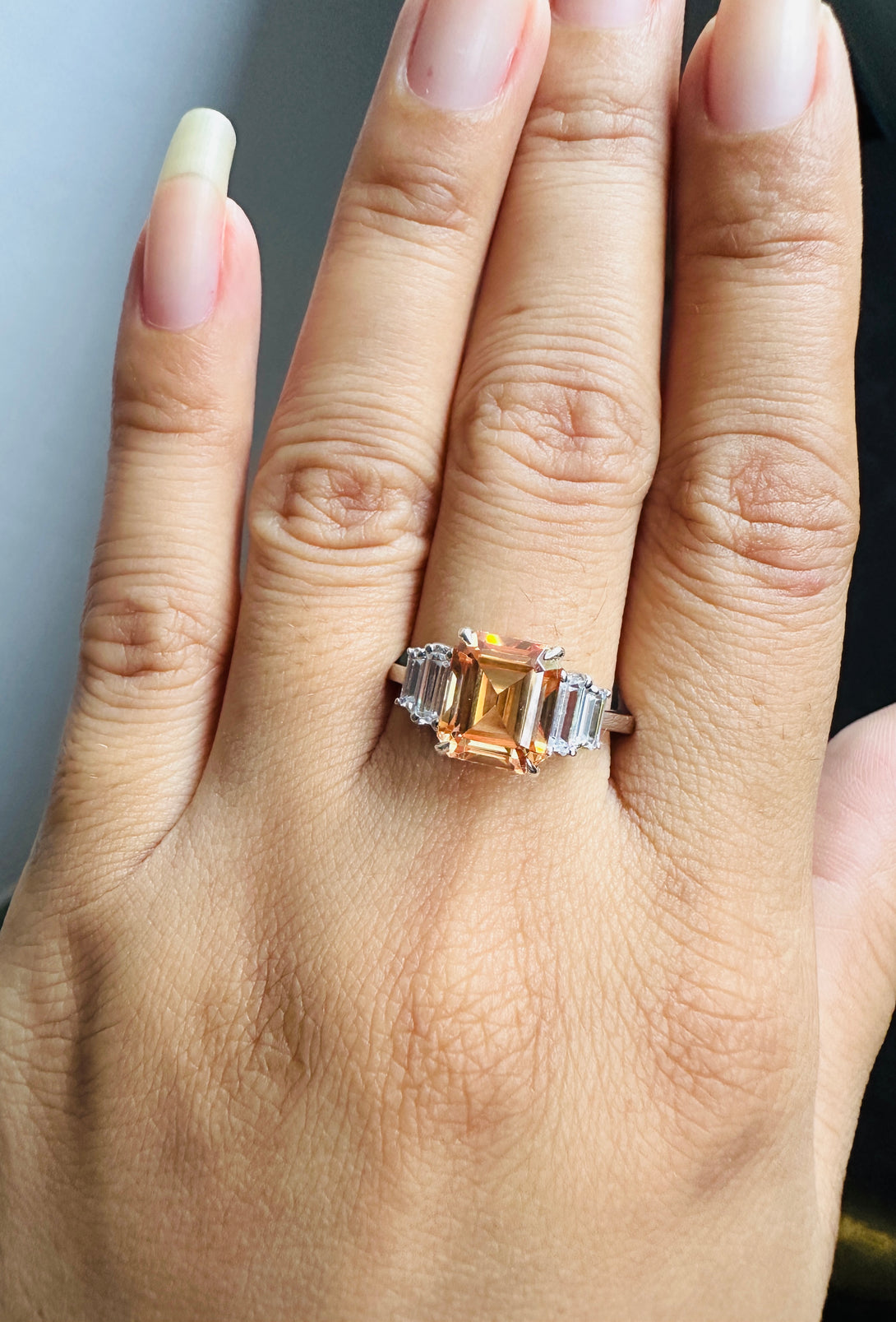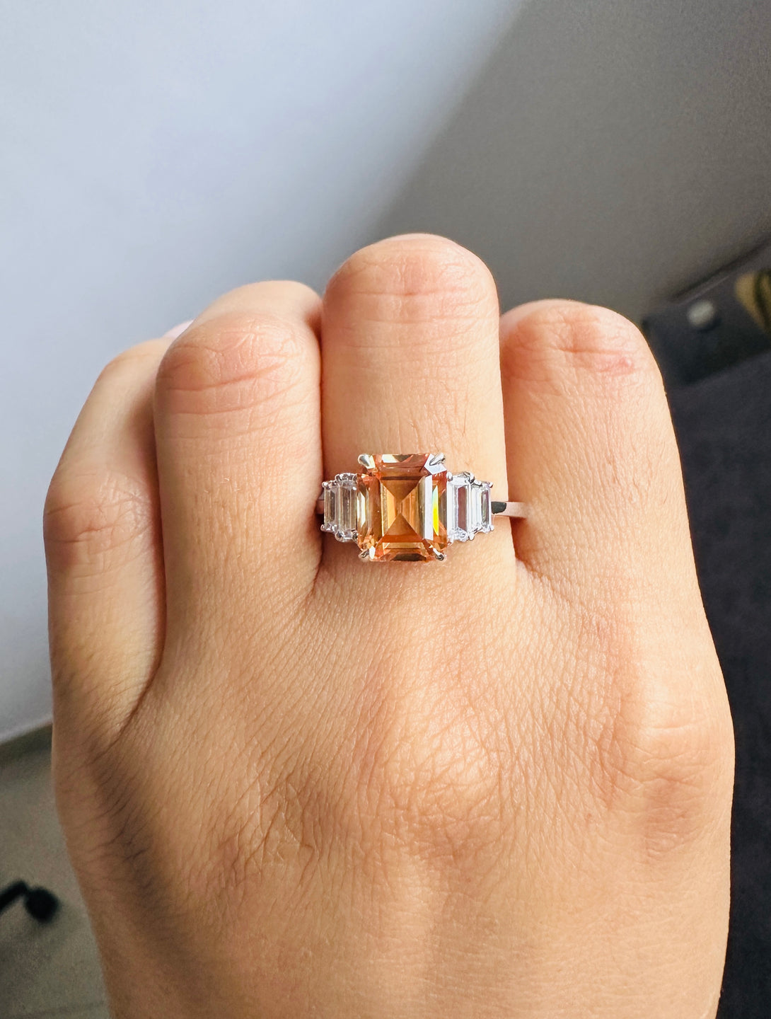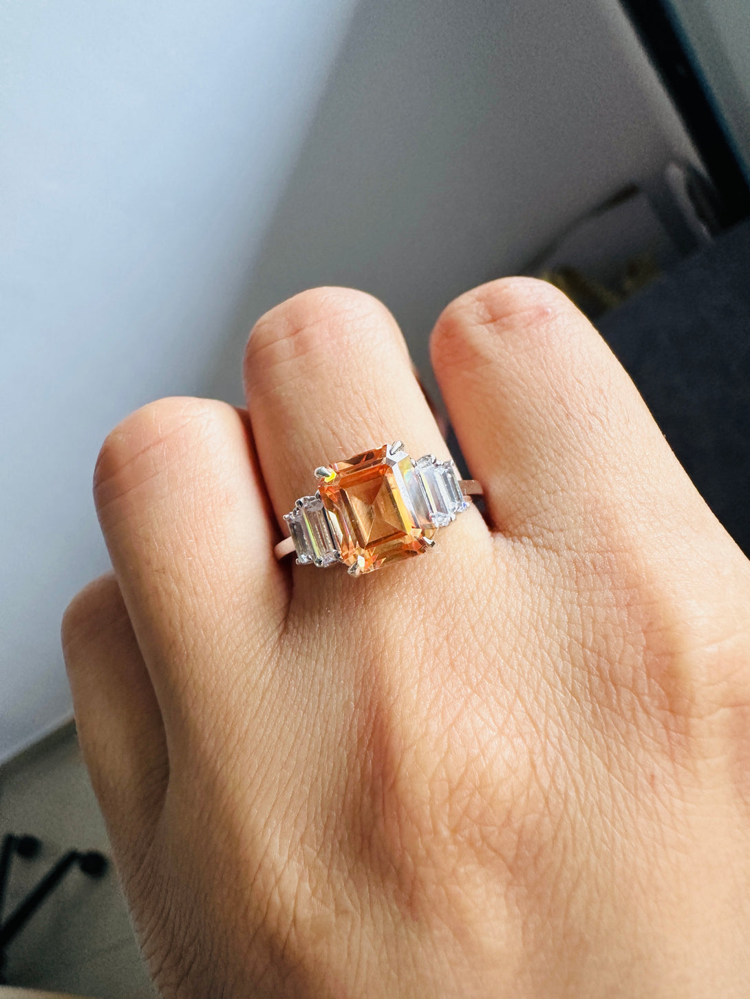Emerald Cut 5 Stone Wedding Ring Brown Moissanite Engagement Ring Her