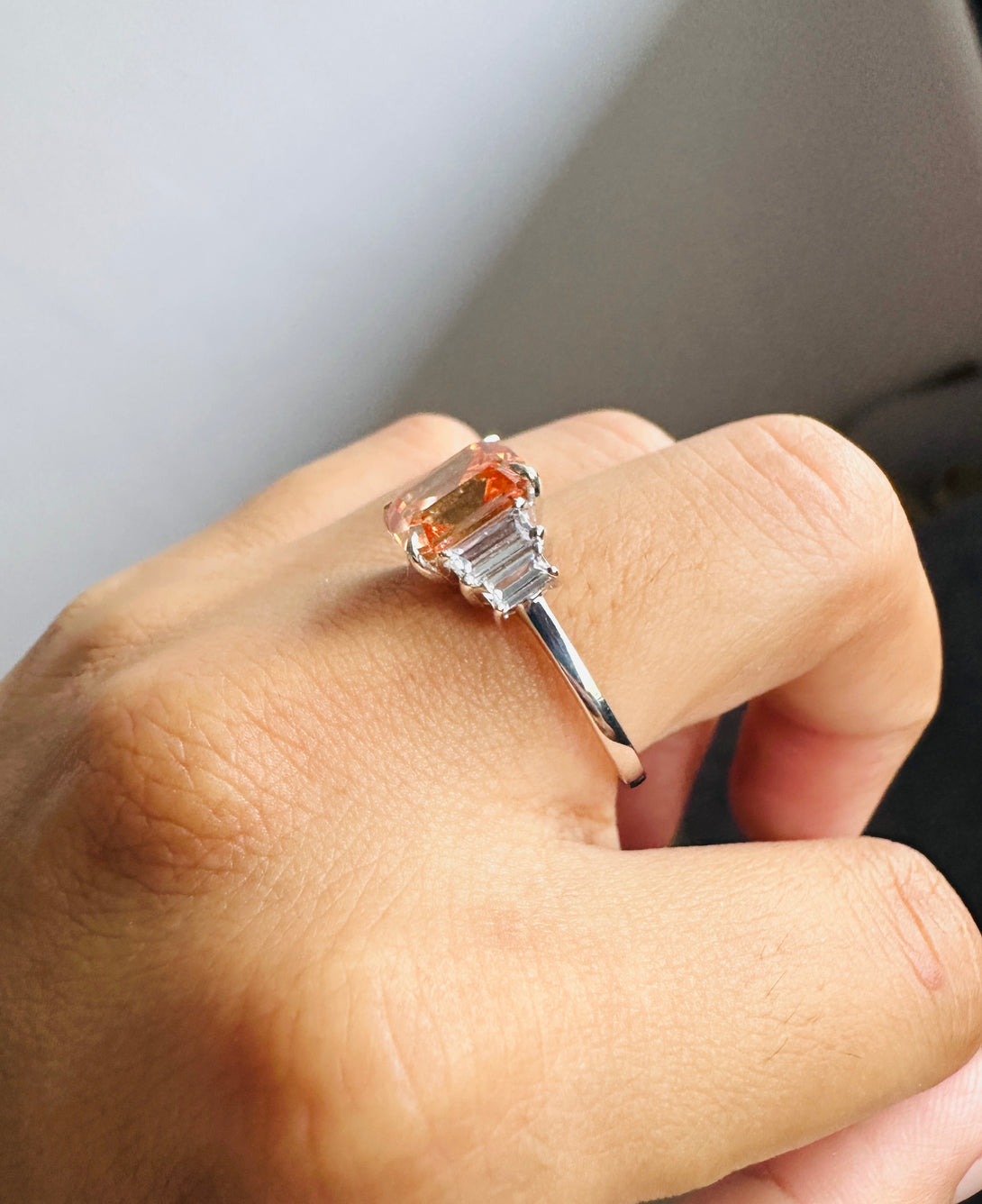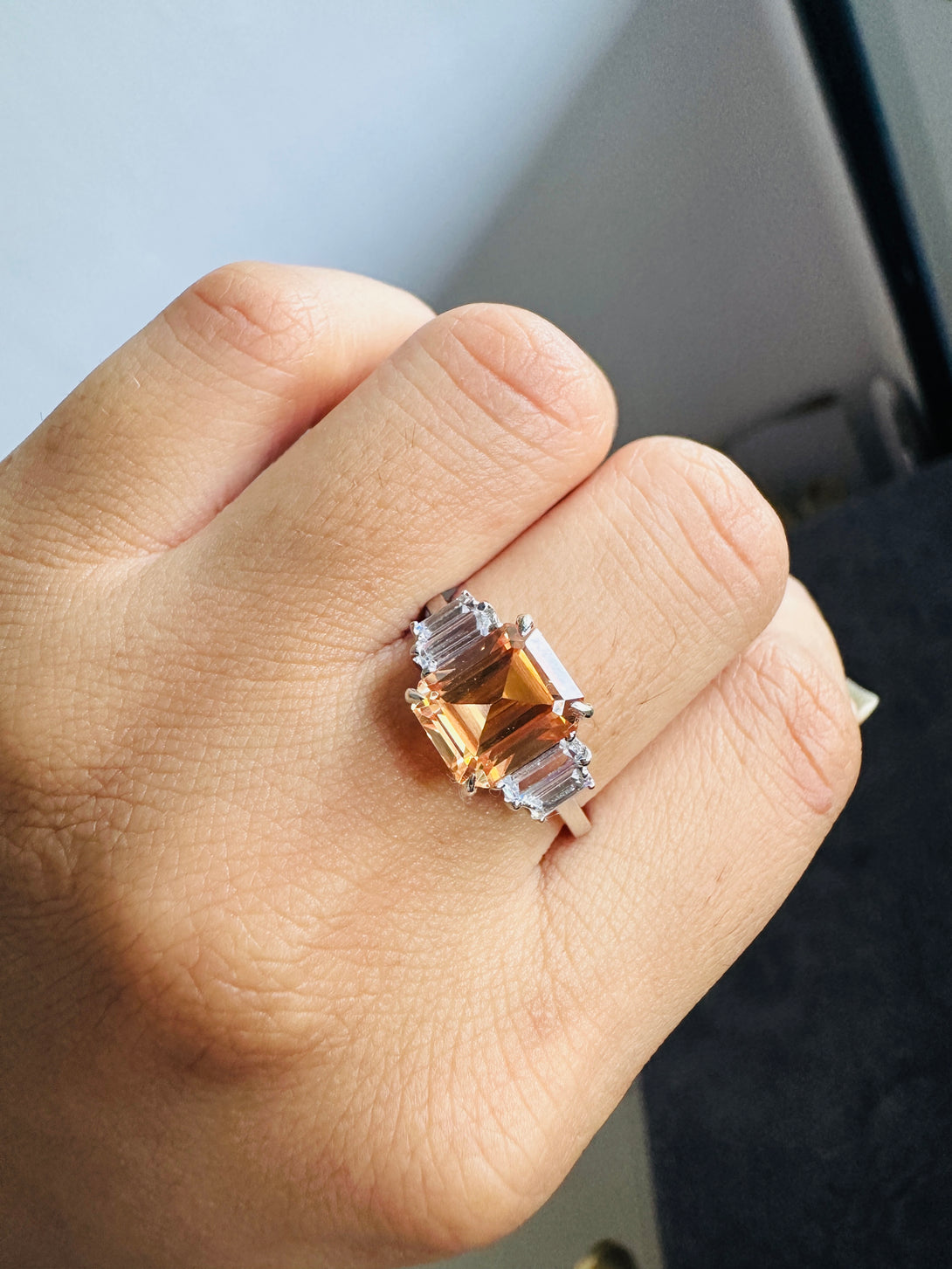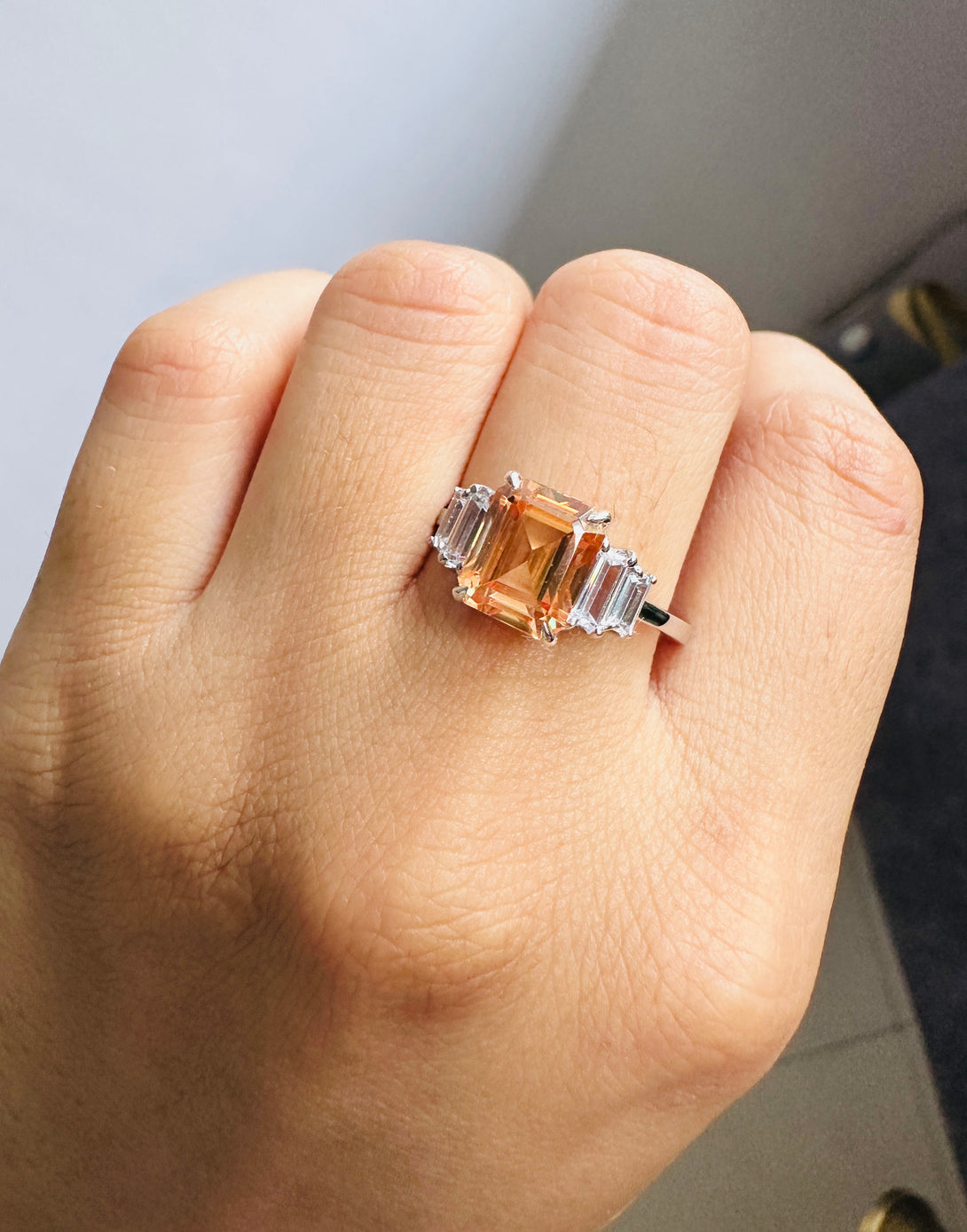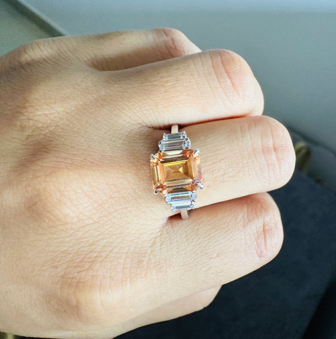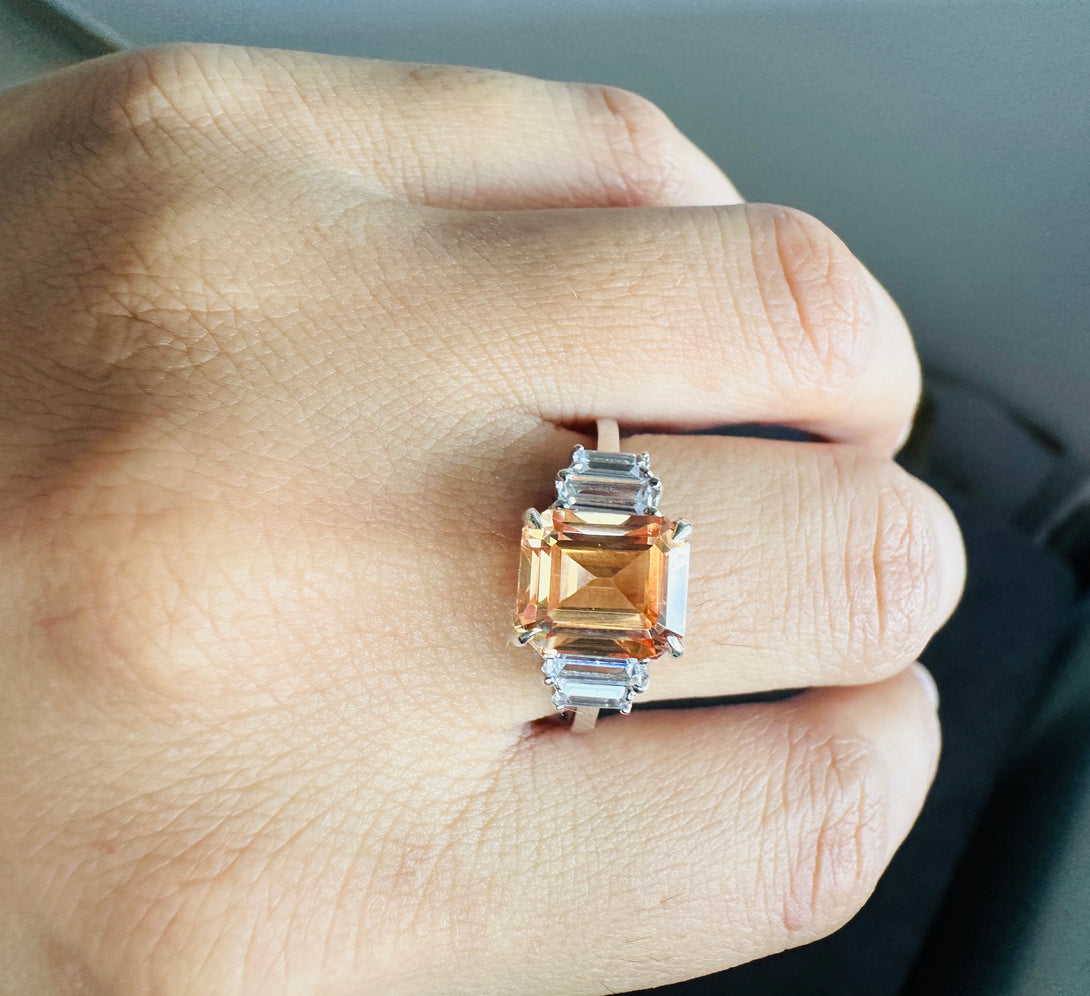 Emerald Cut 5 Stone Wedding Ring Brown Moissanite Engagement Ring Her