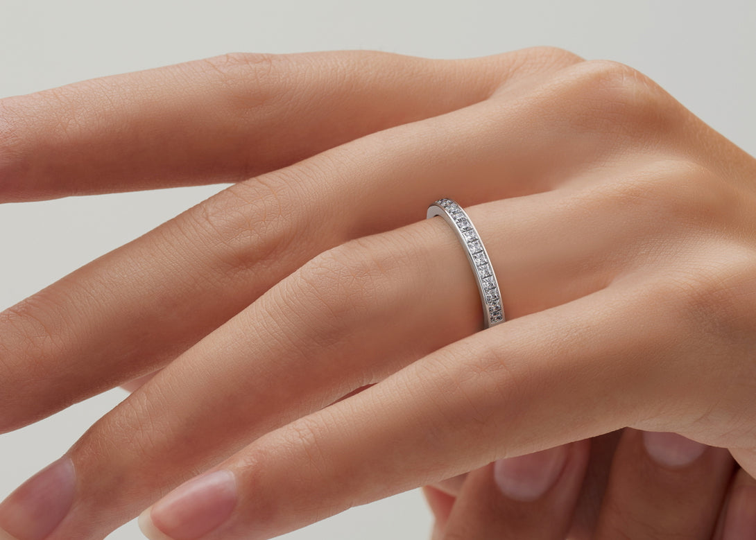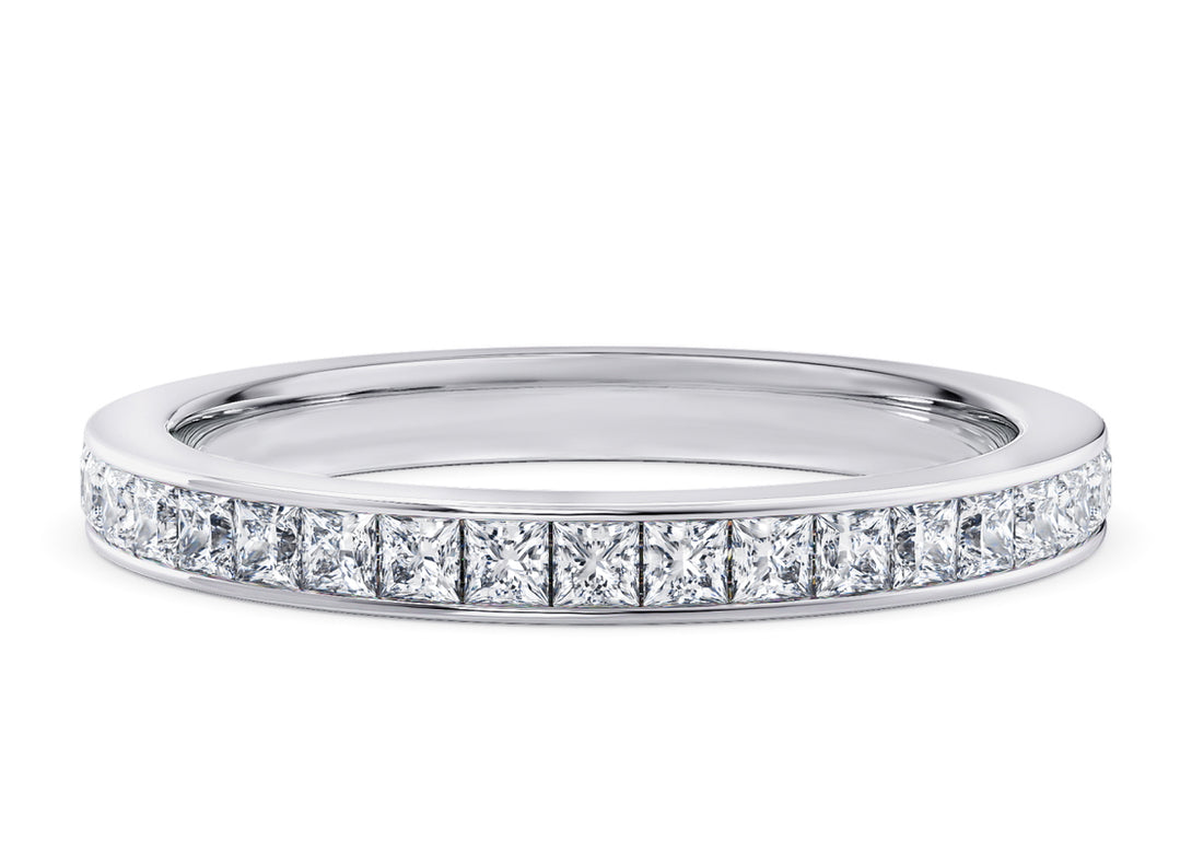Princess Cut Lab Grown Diamond Half Eternity Band Ring in 14k Solid Gold for Women