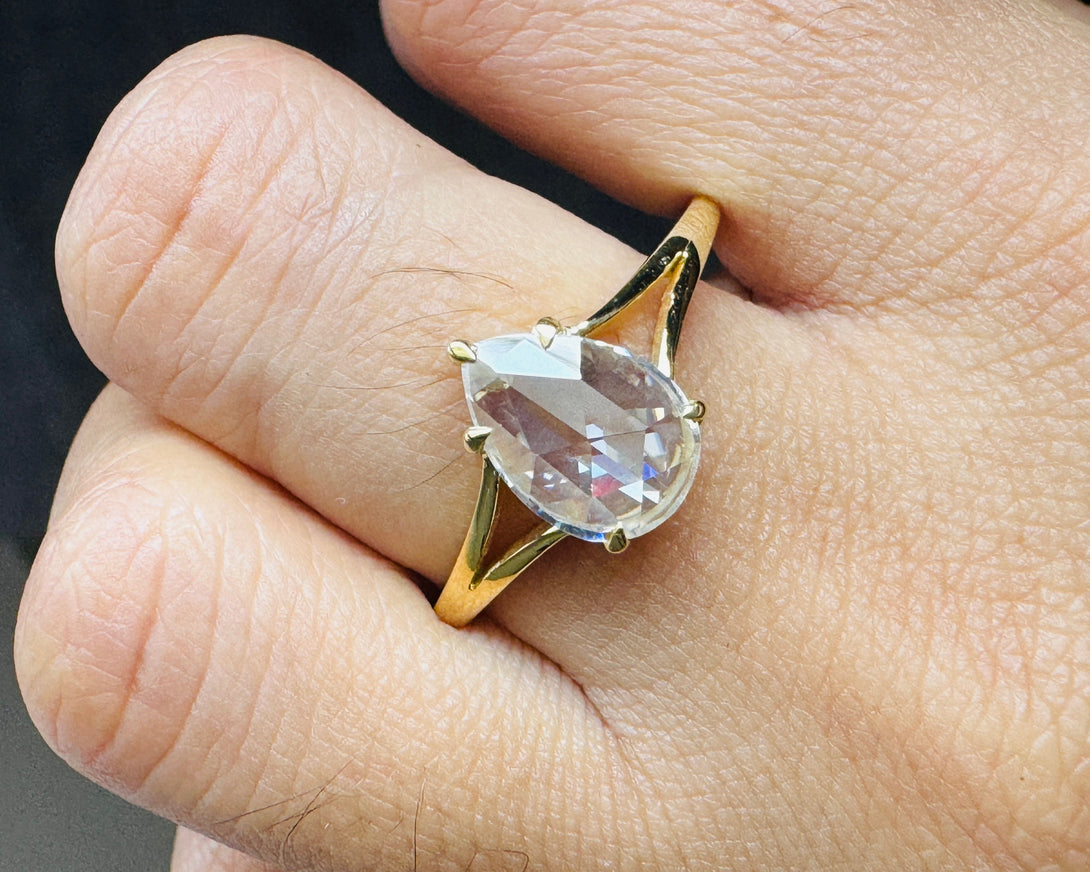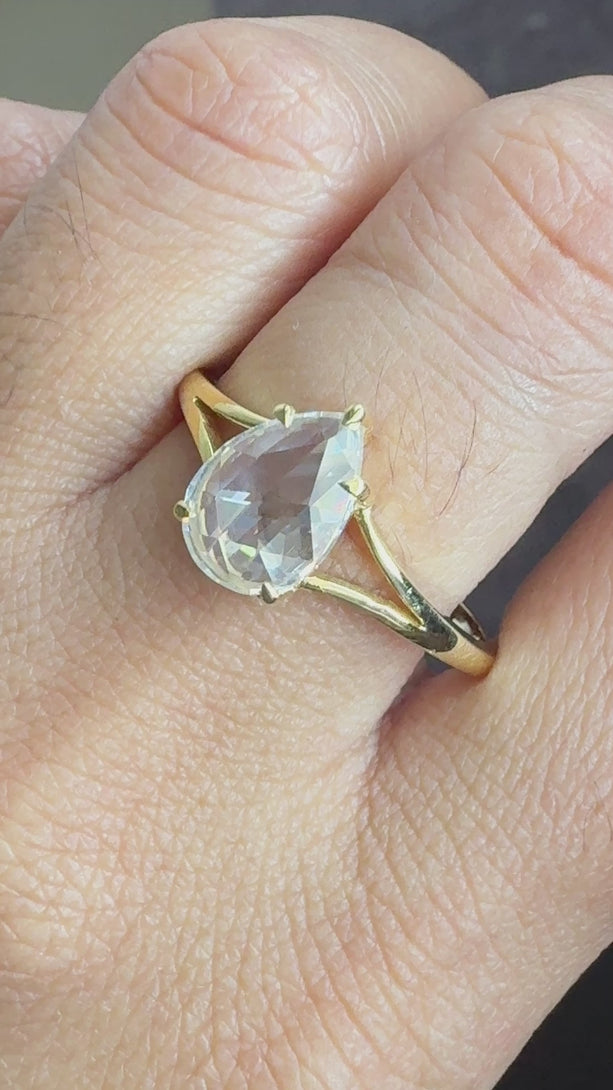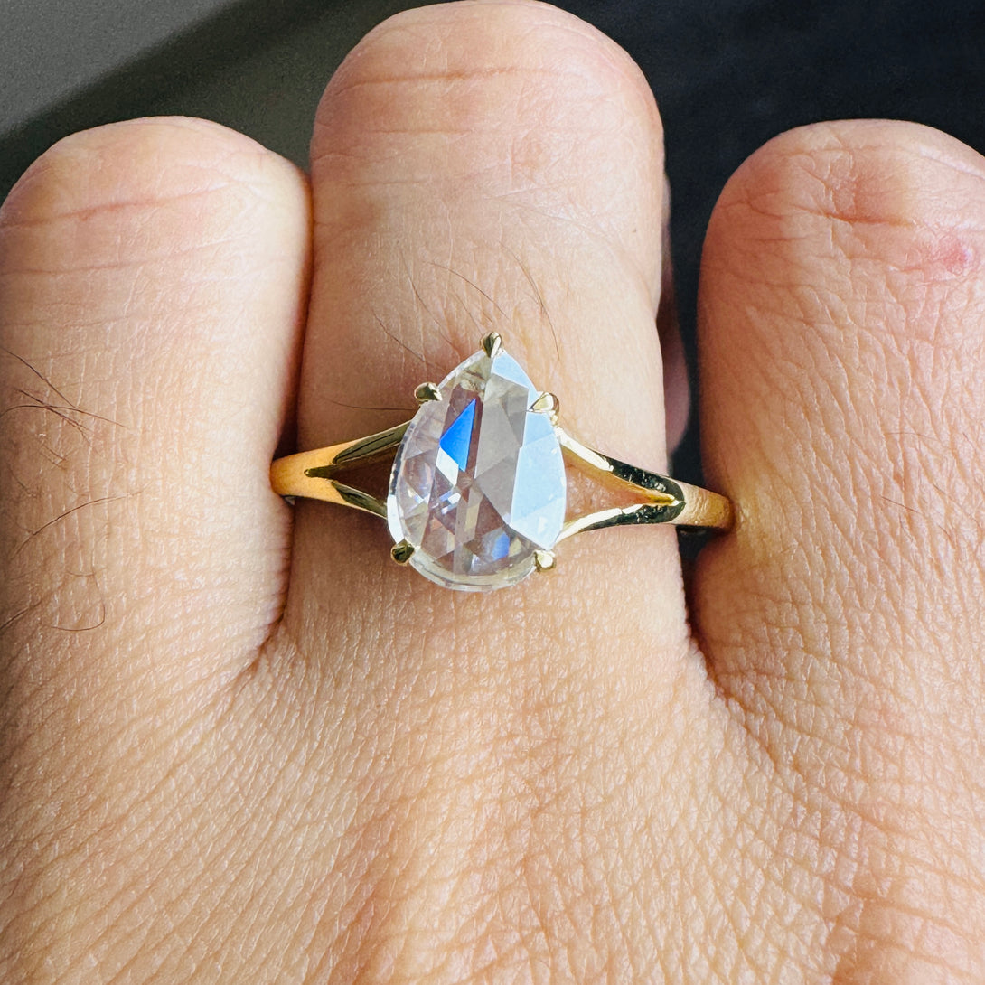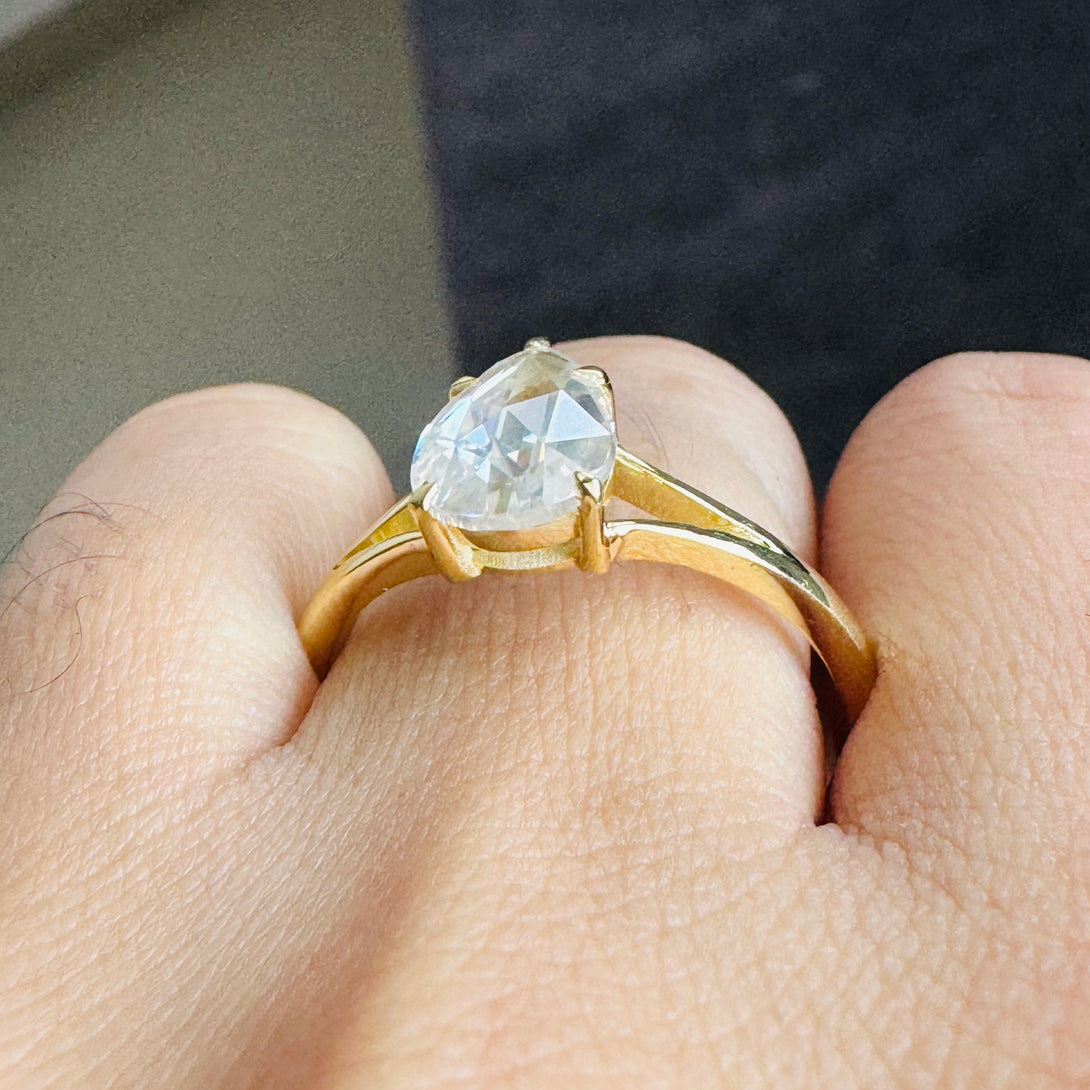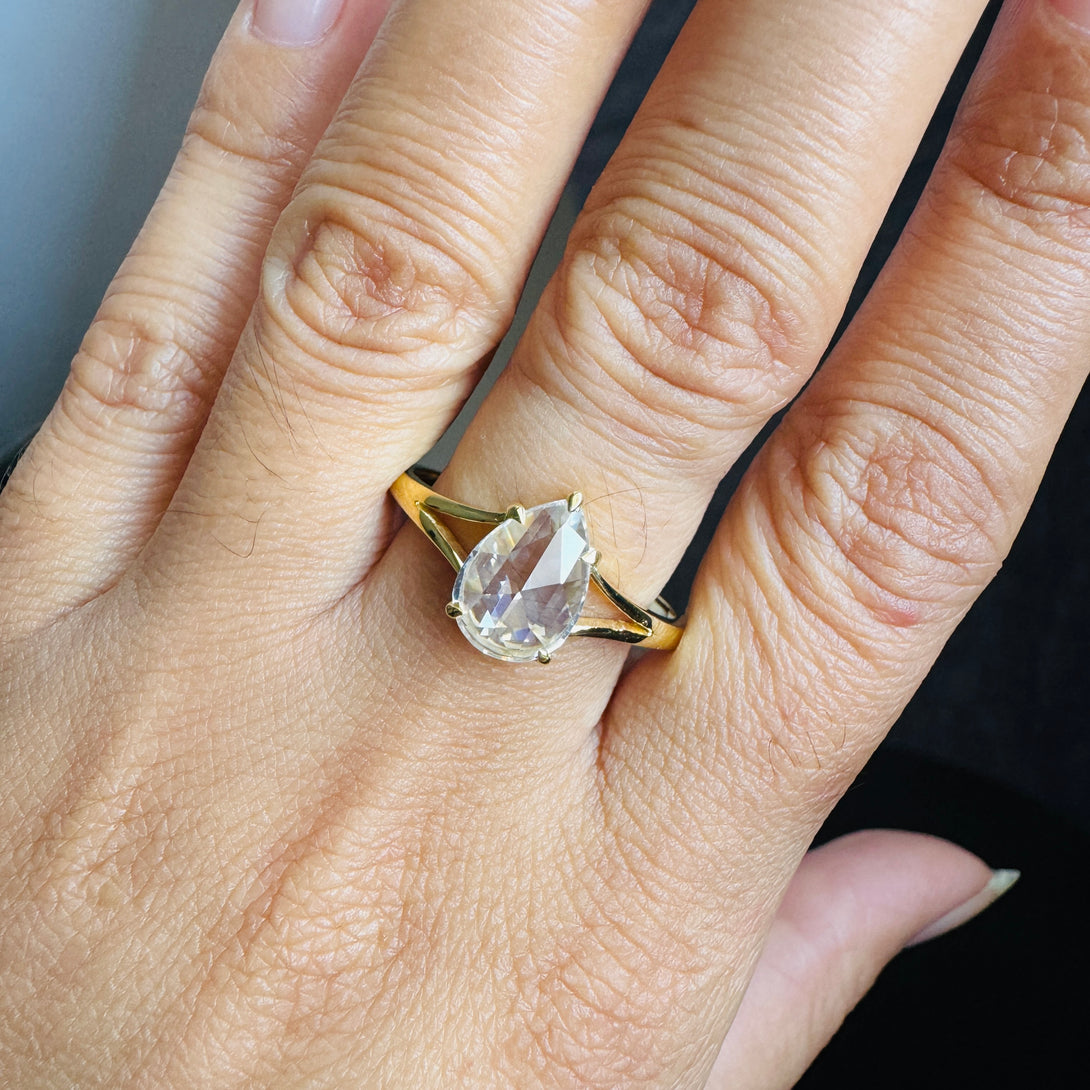 Rose Cut Solitaire Engagement Ring Pear Moissanite Split Shank Promise Ring