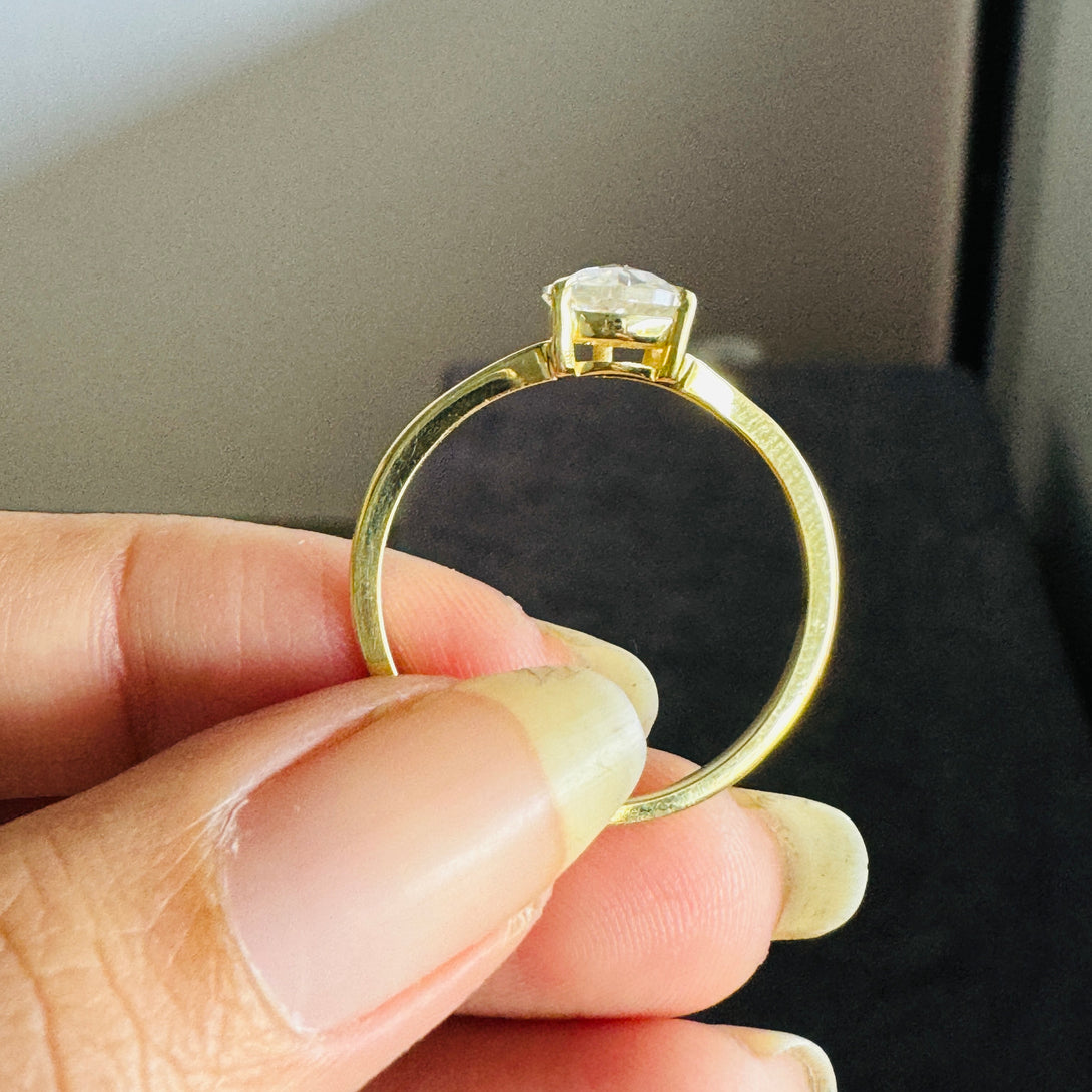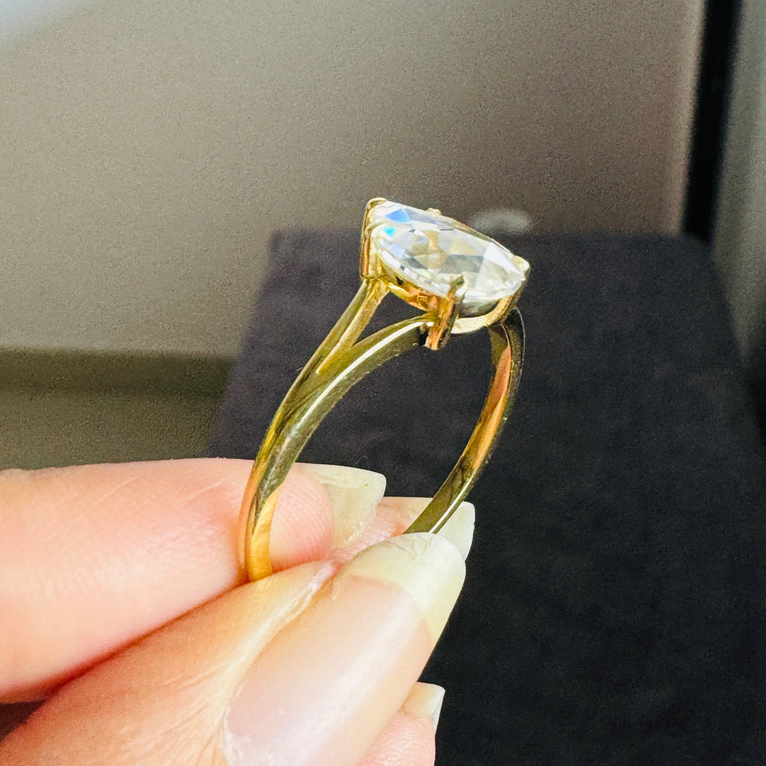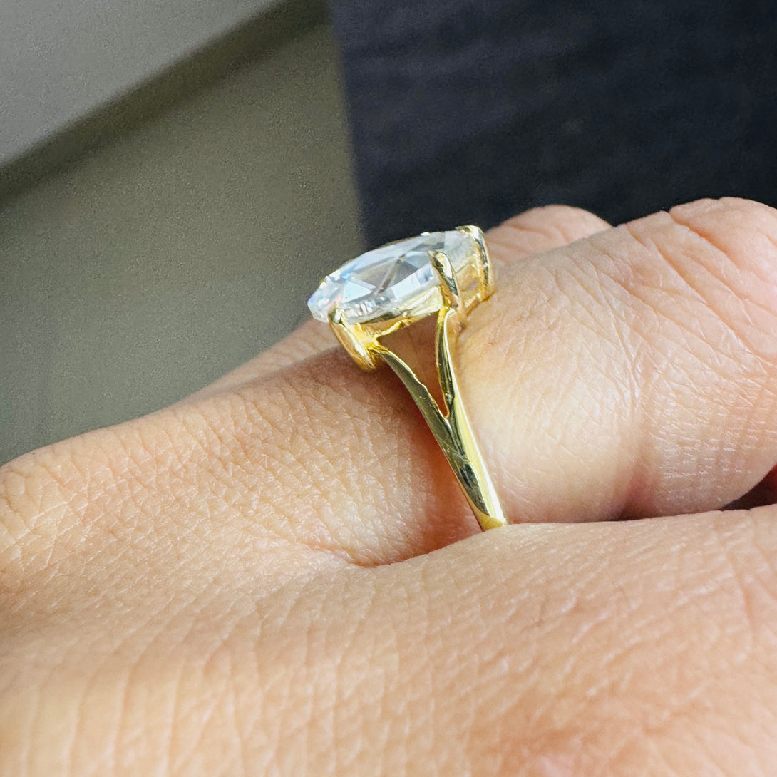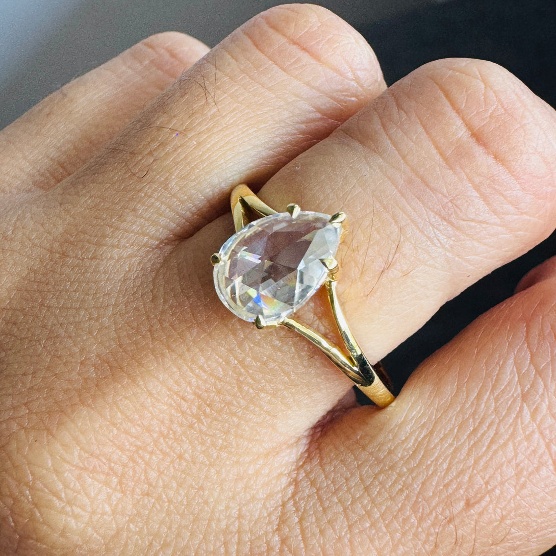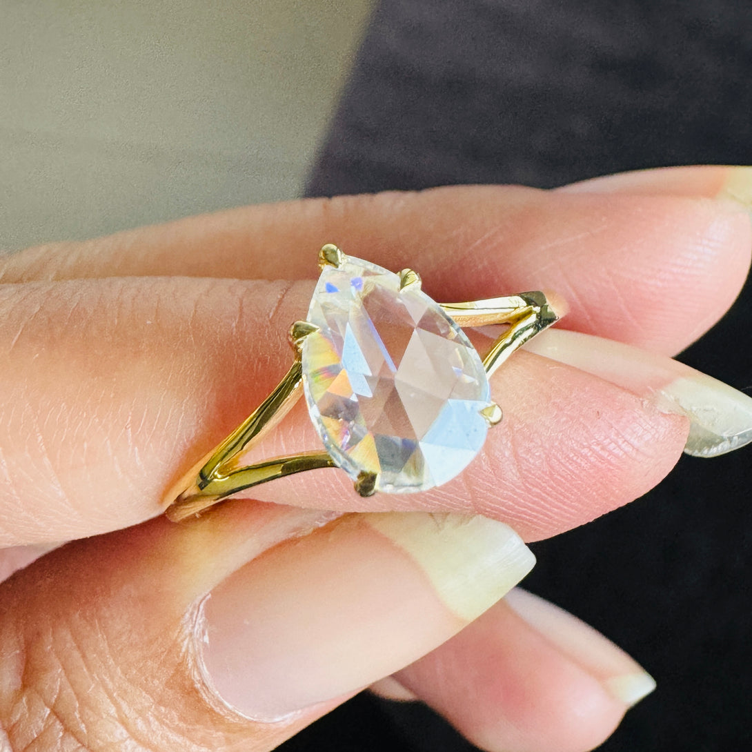 Rose Cut Solitaire Engagement Ring Pear Moissanite Split Shank Promise Ring