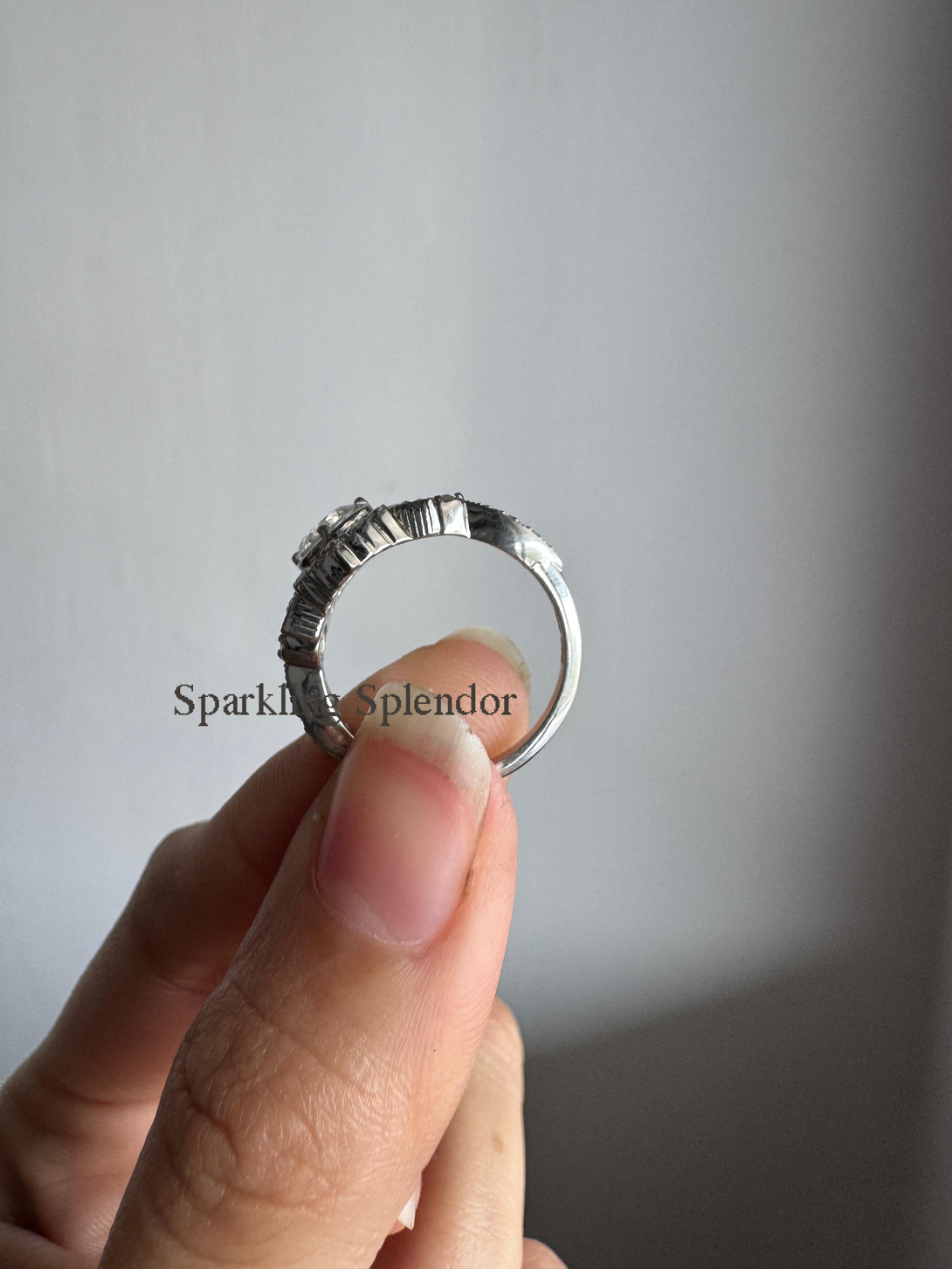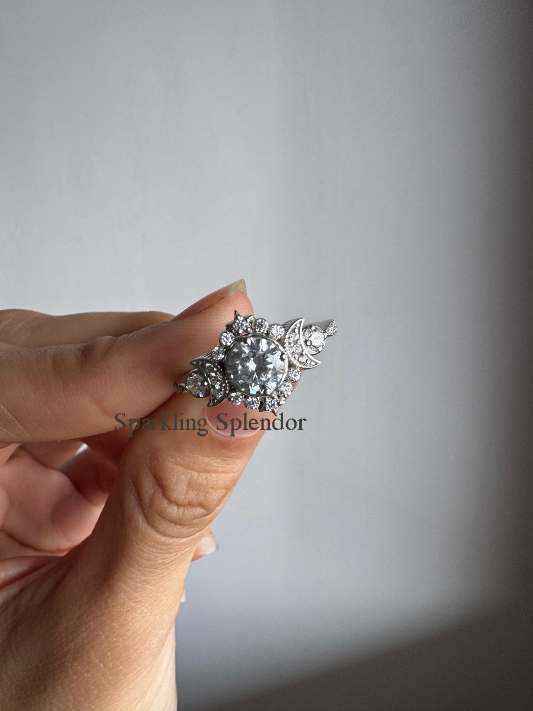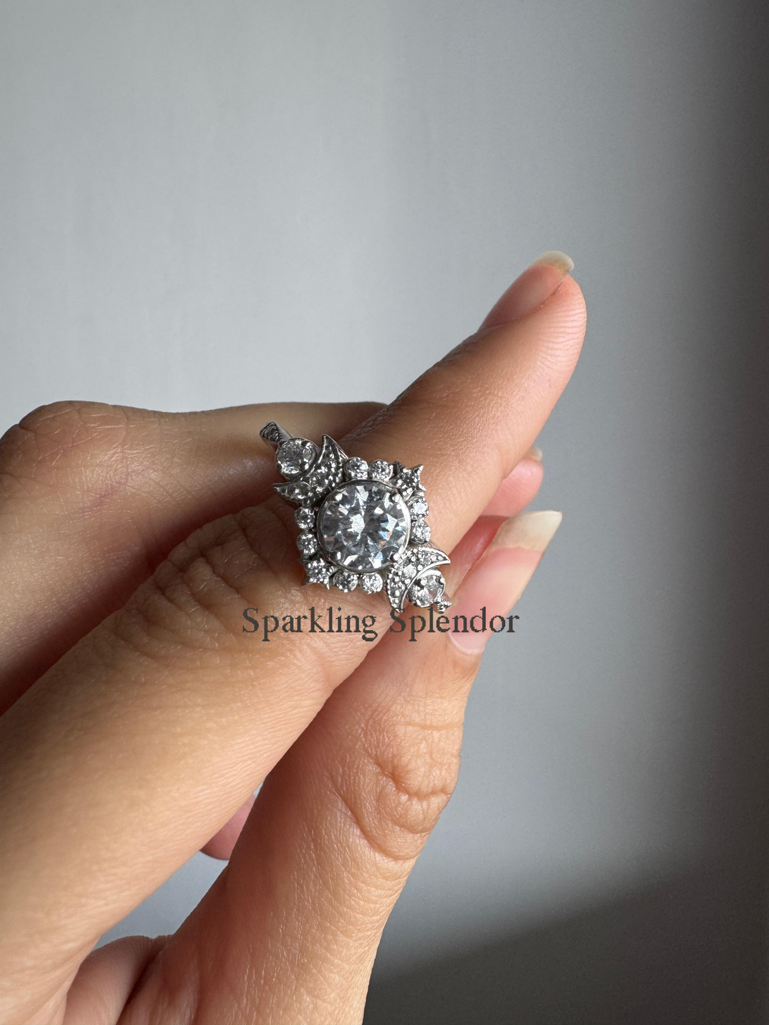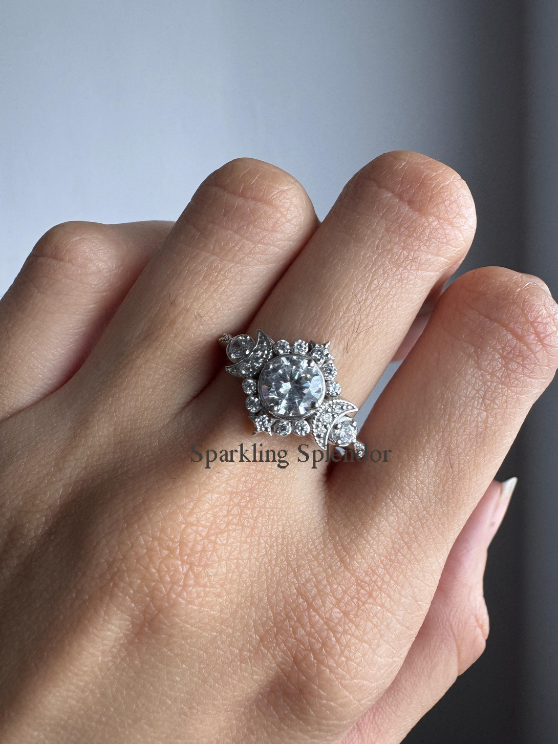 Round Cut Moissanite Engagement Ring Art Deco Vintage Inspire Wedding Her