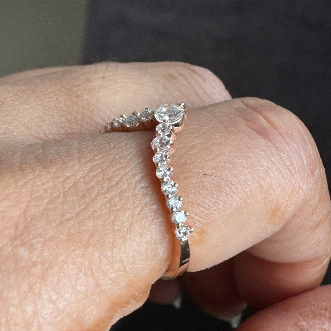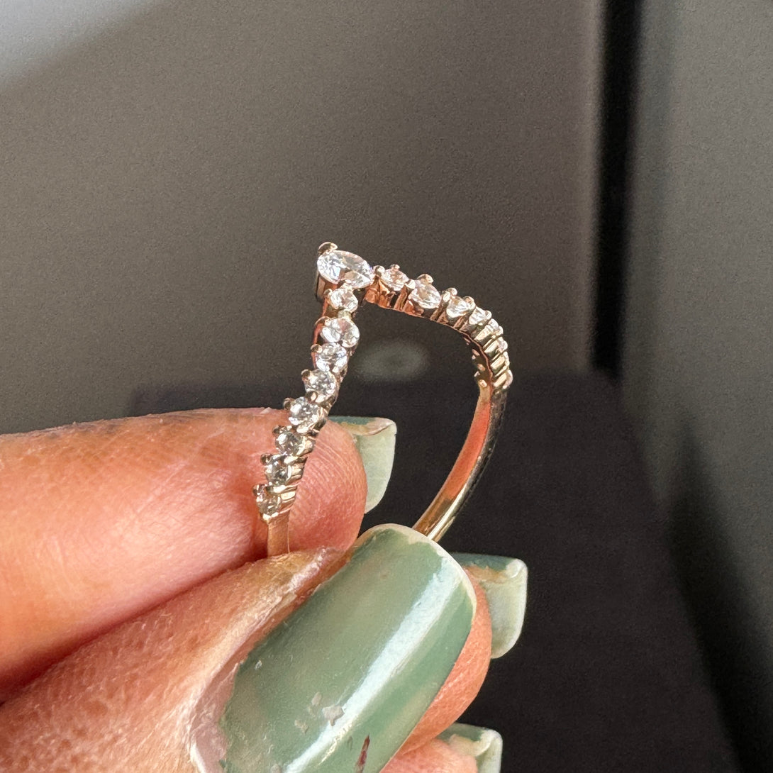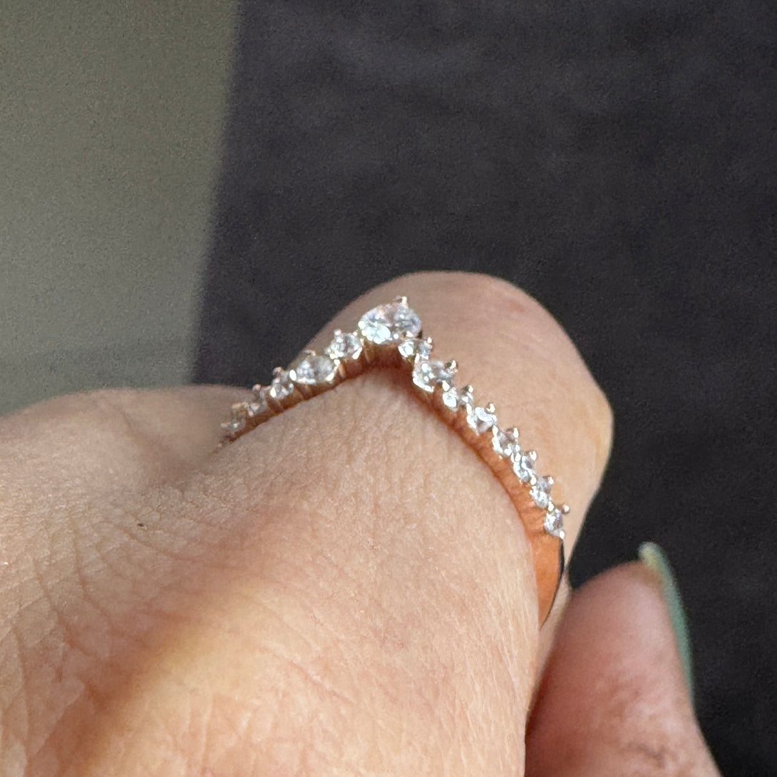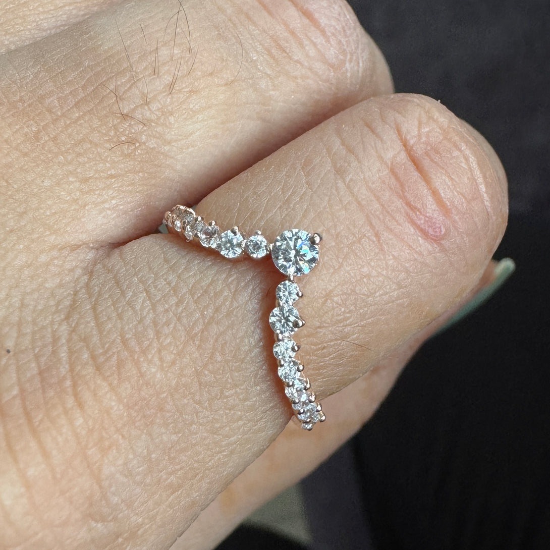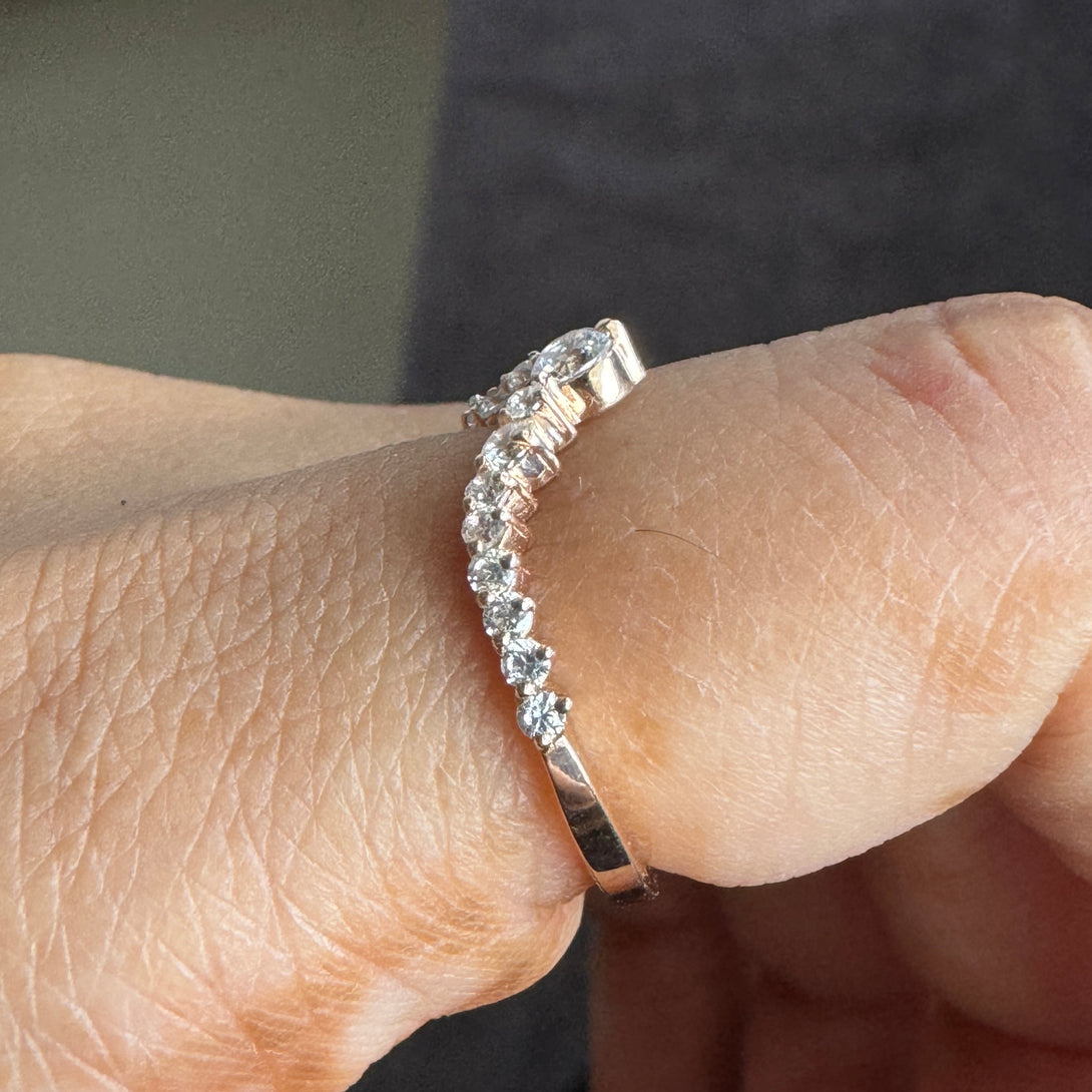 Chevron Moissanite Ring Matching Wedding Band For Women Curved Ring
