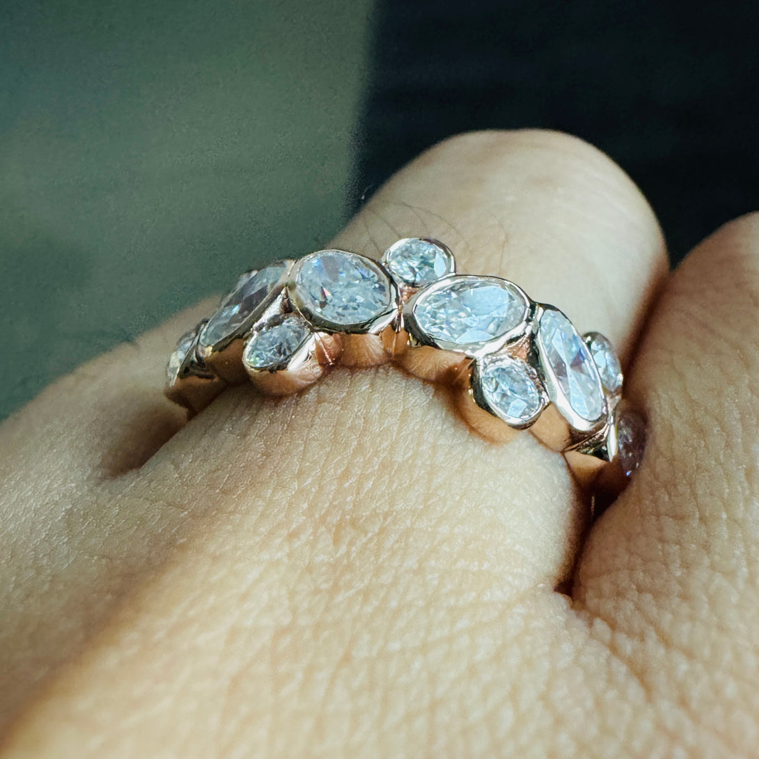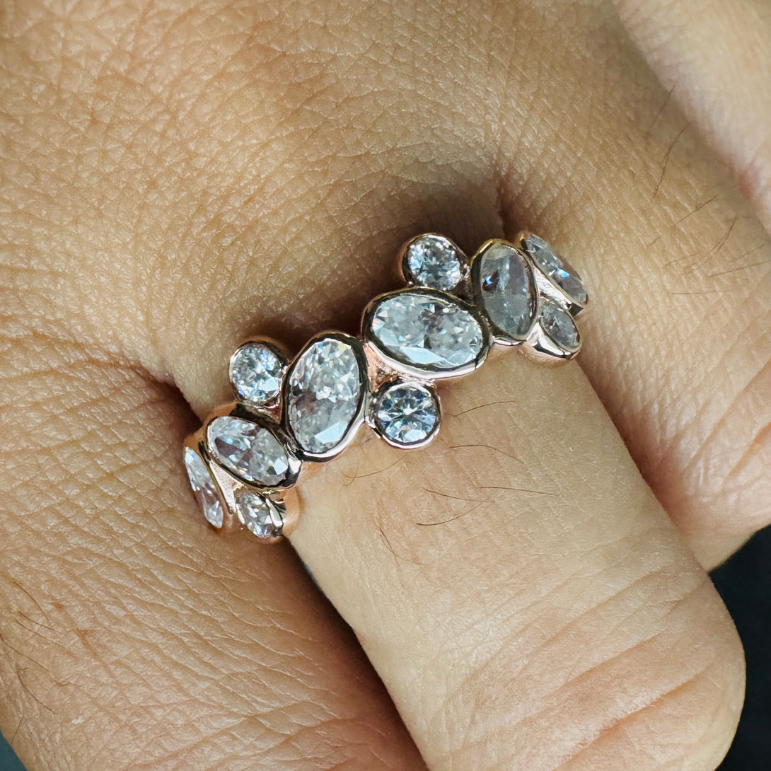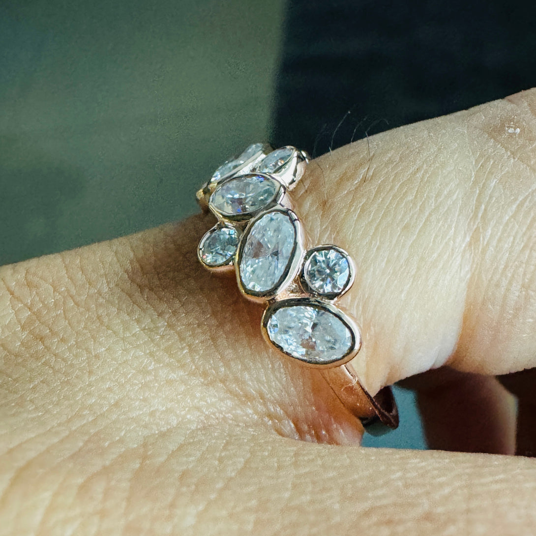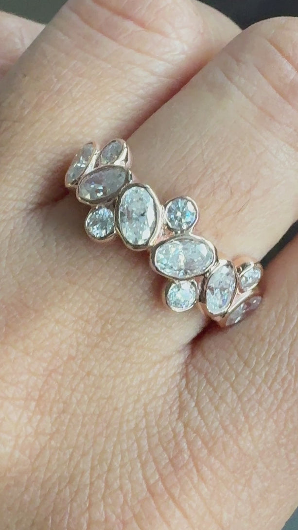 Half Eternity Oval Cut Moissanite Band Bezel Set Cluster Wedding Band in Gold