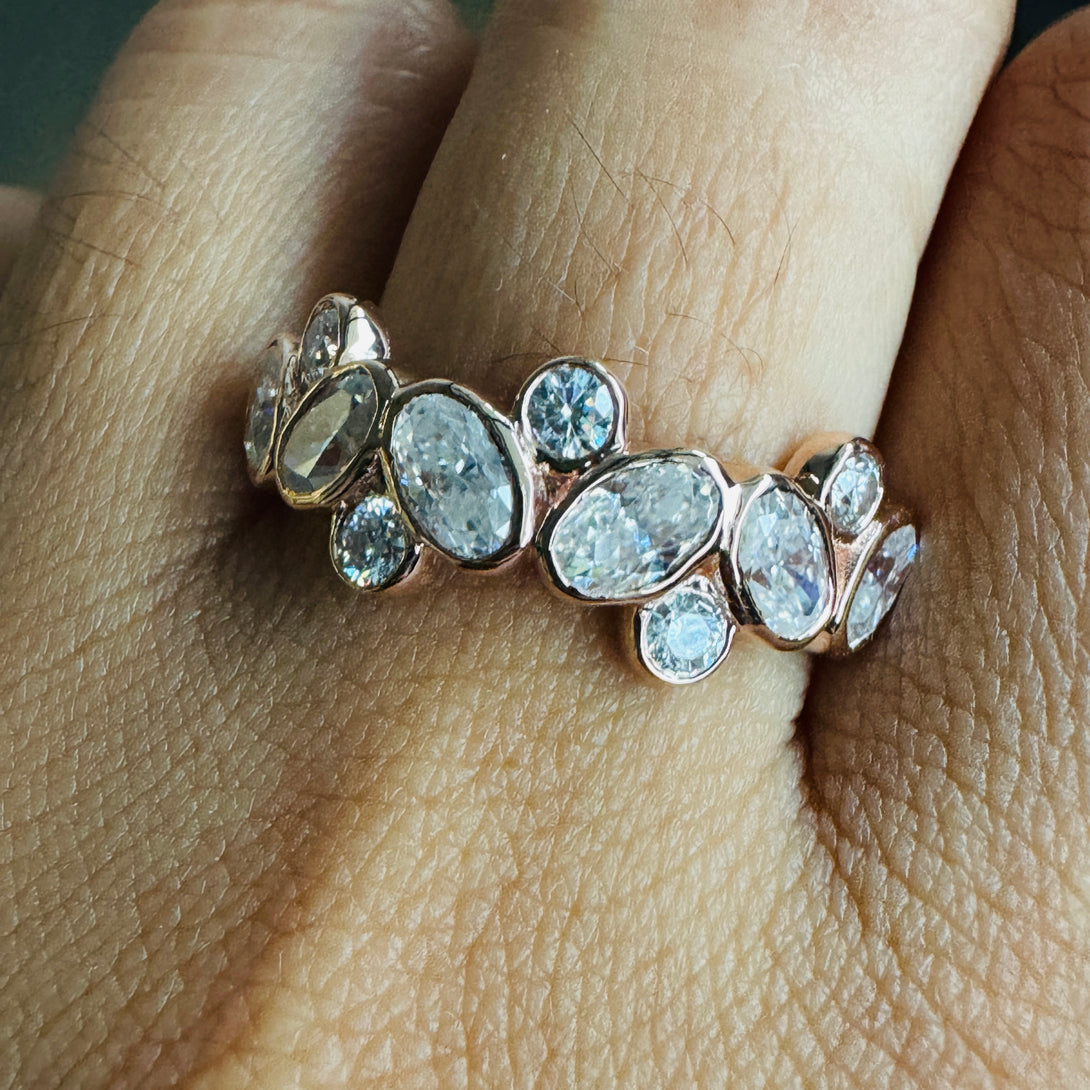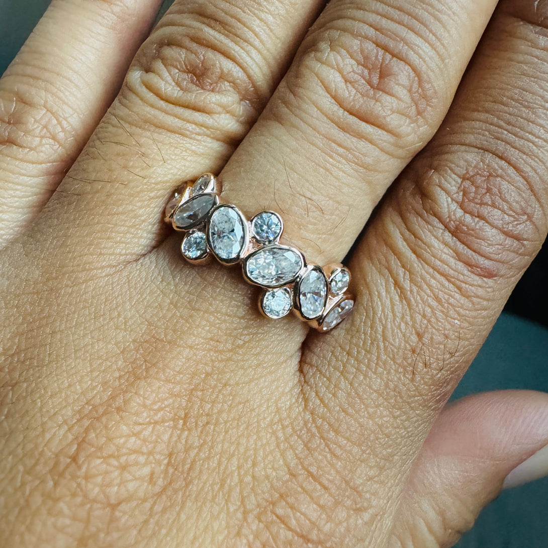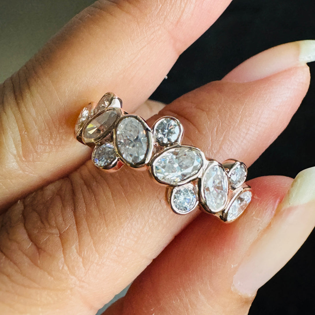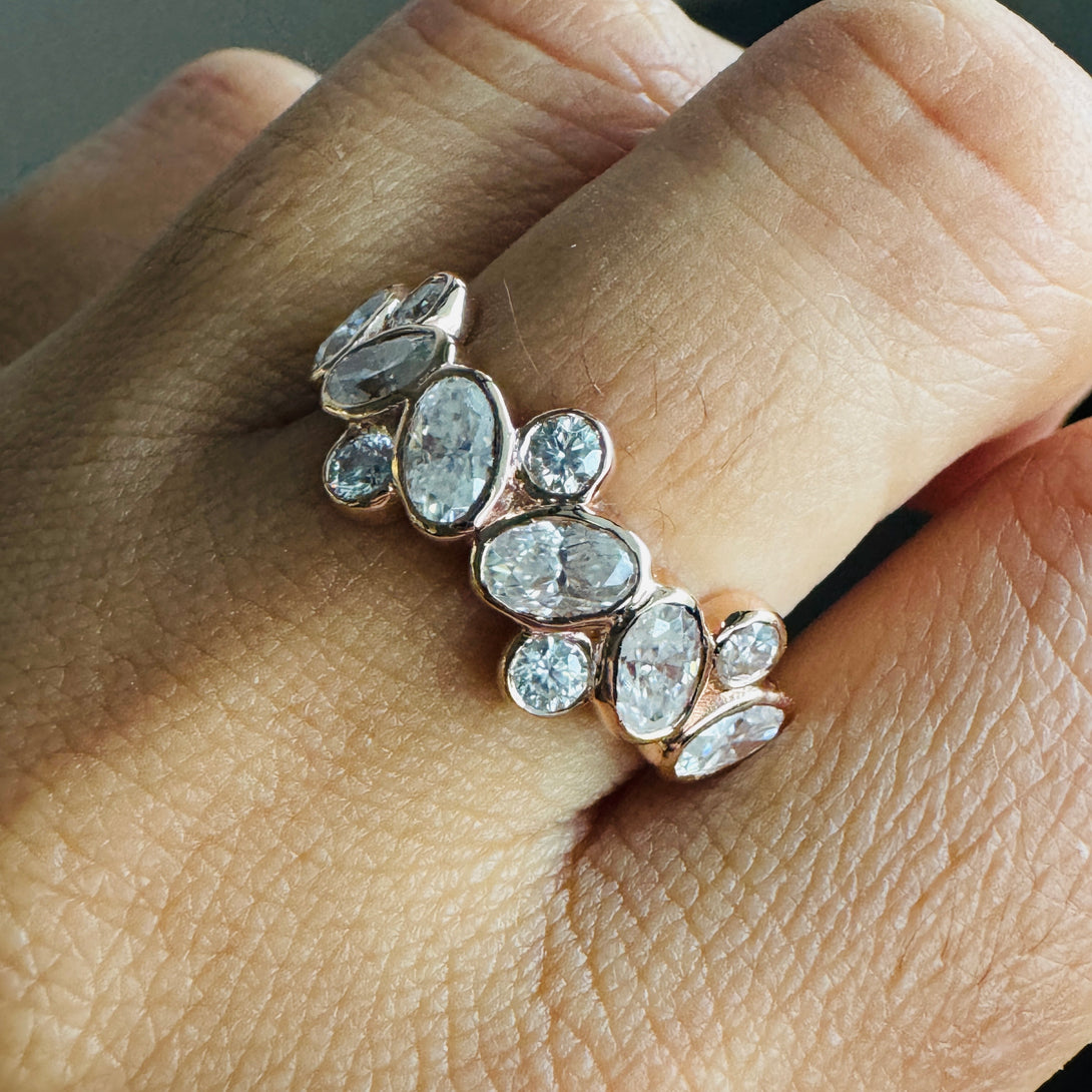 Half Eternity Oval Cut Moissanite Band Bezel Set Cluster Wedding Band in Gold