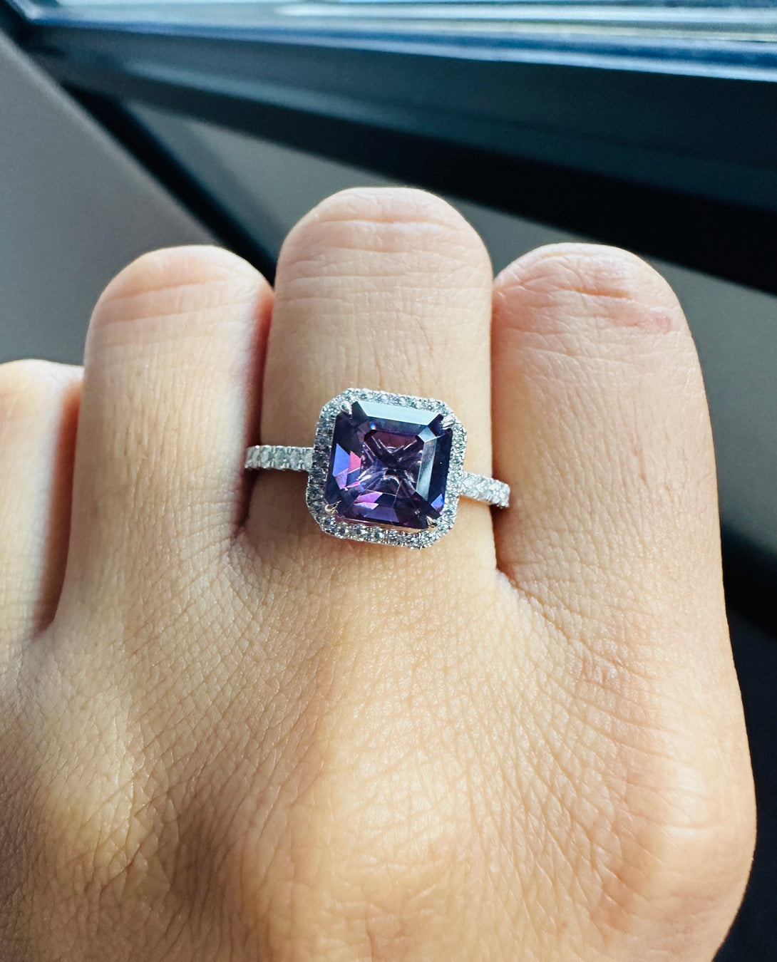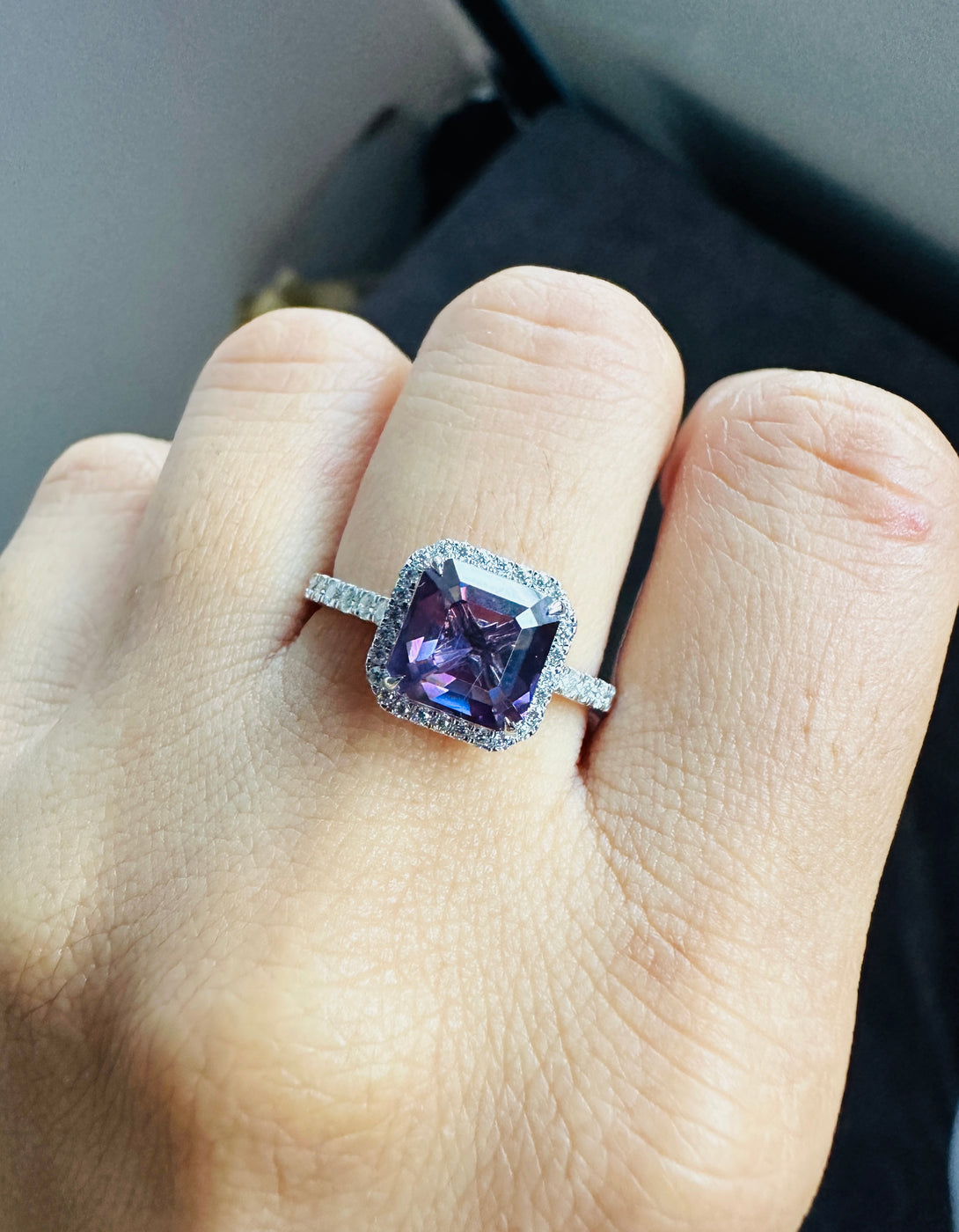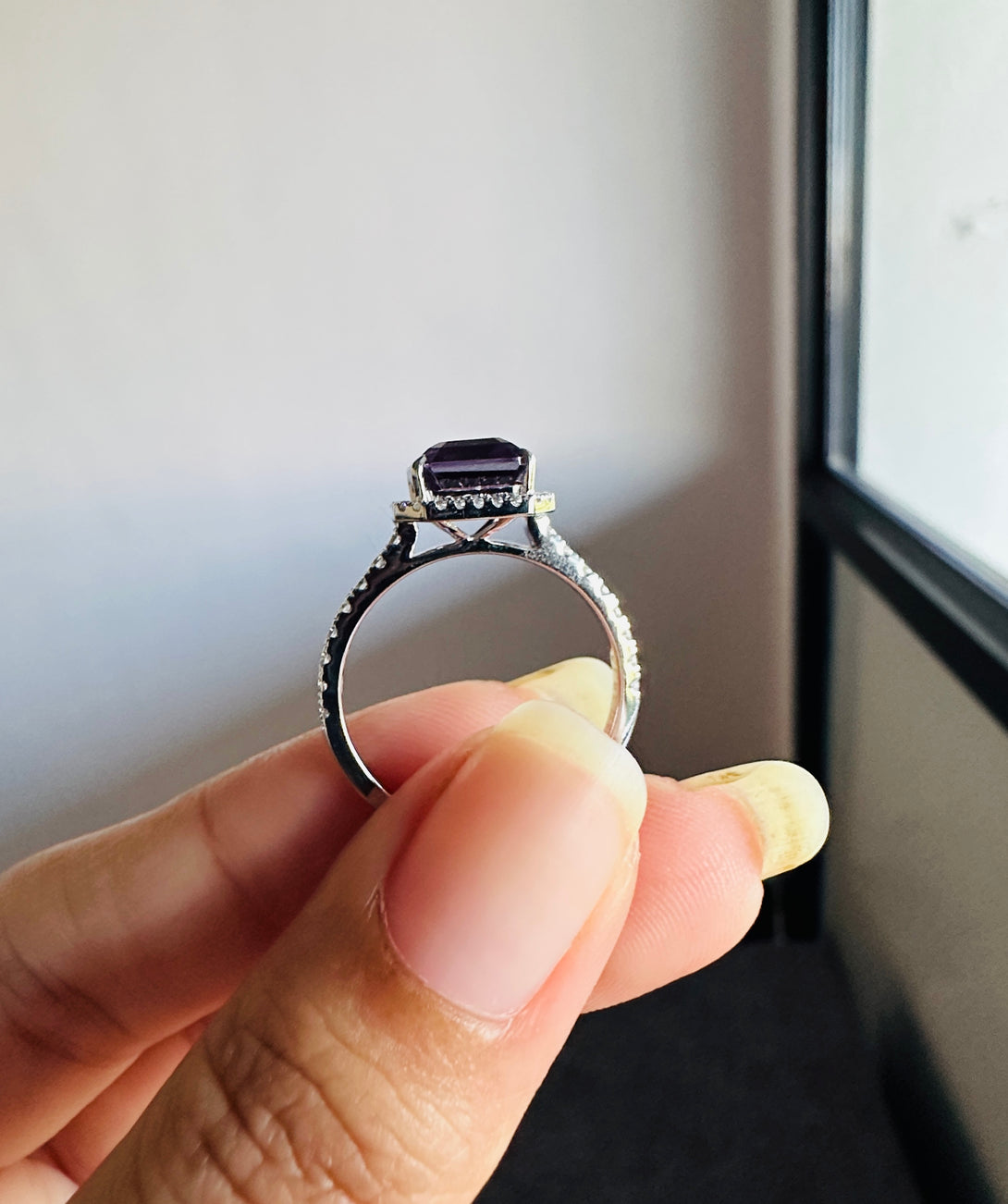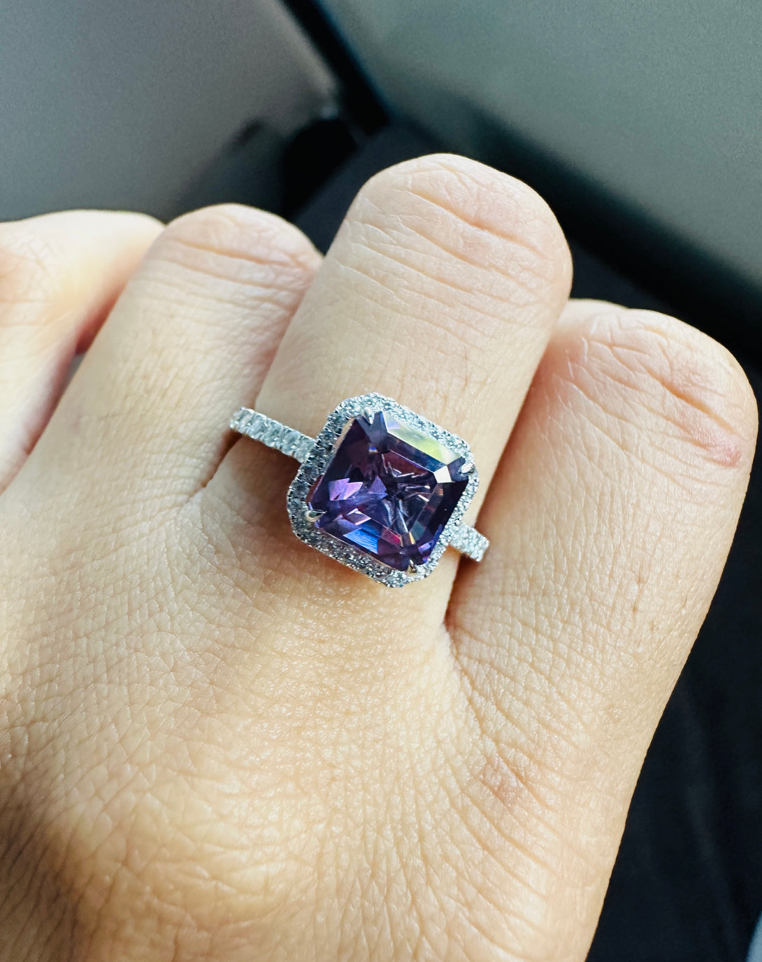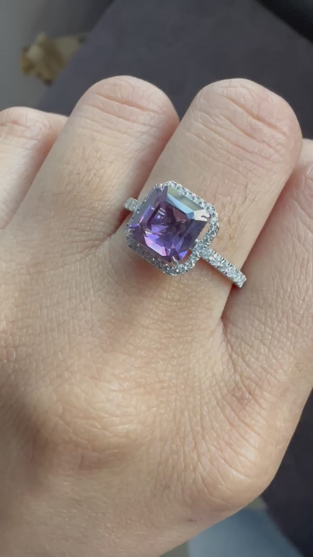 Amethyst Beautiful Engagement Ring Halo Set Asscher Cut CZ Diamond Ring