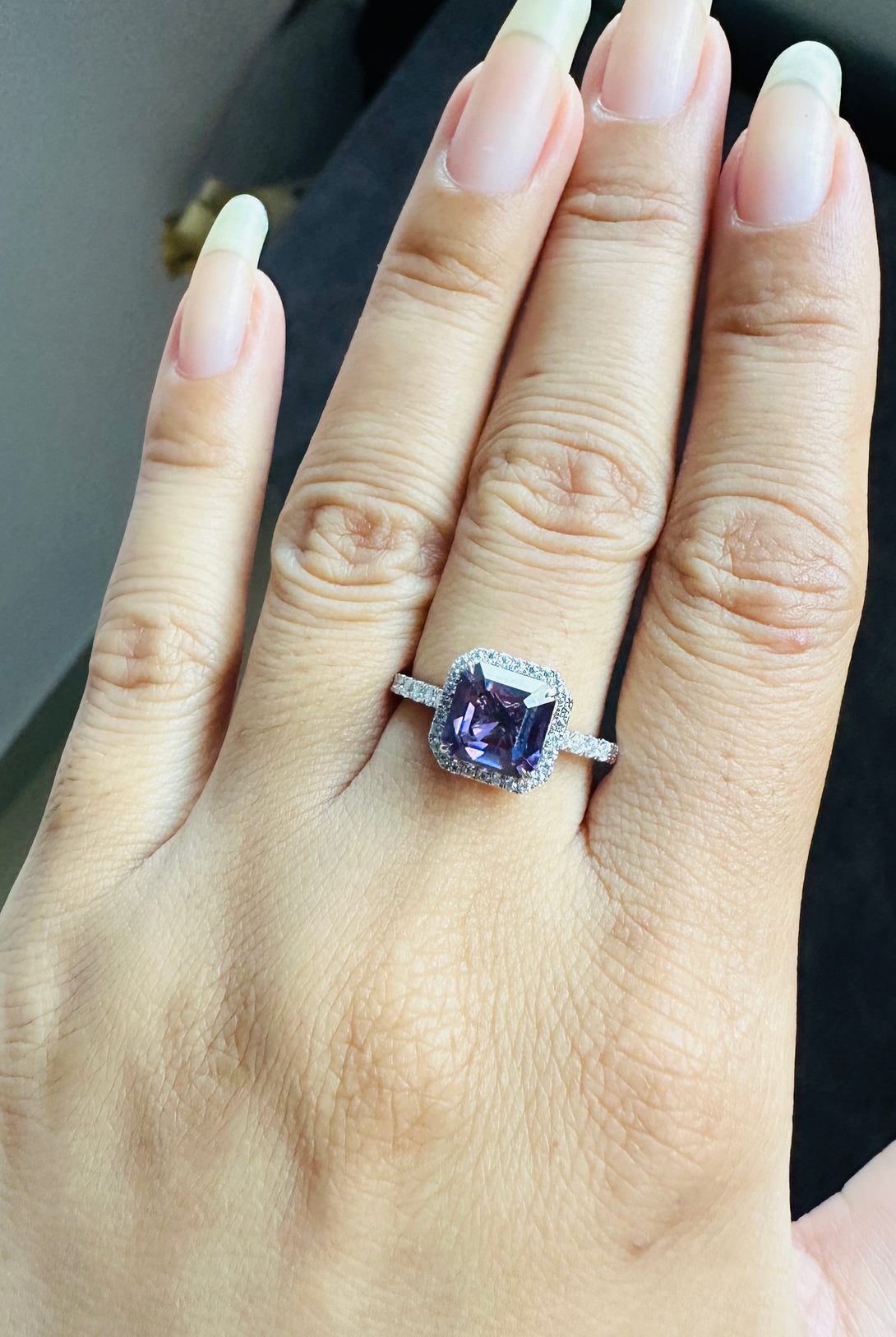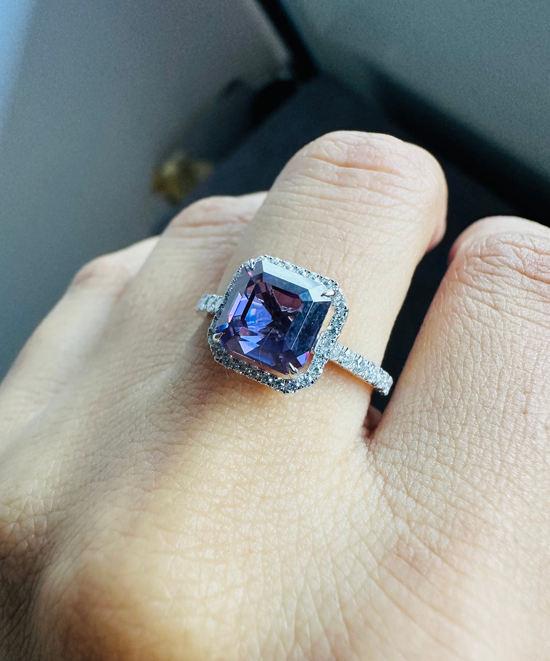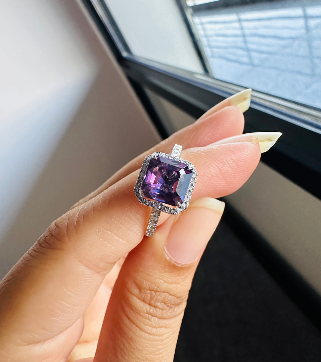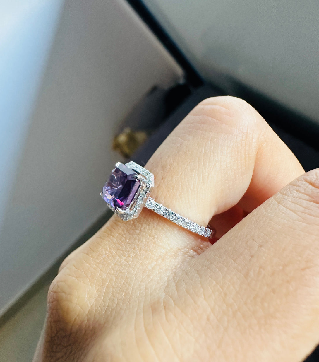 Amethyst Beautiful Engagement Ring Halo Set Asscher Cut CZ Diamond Ring